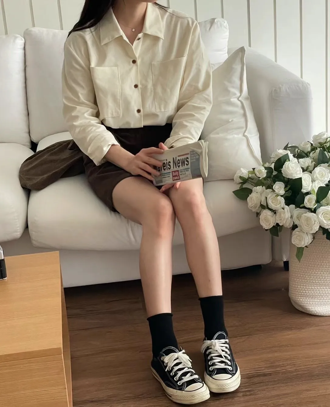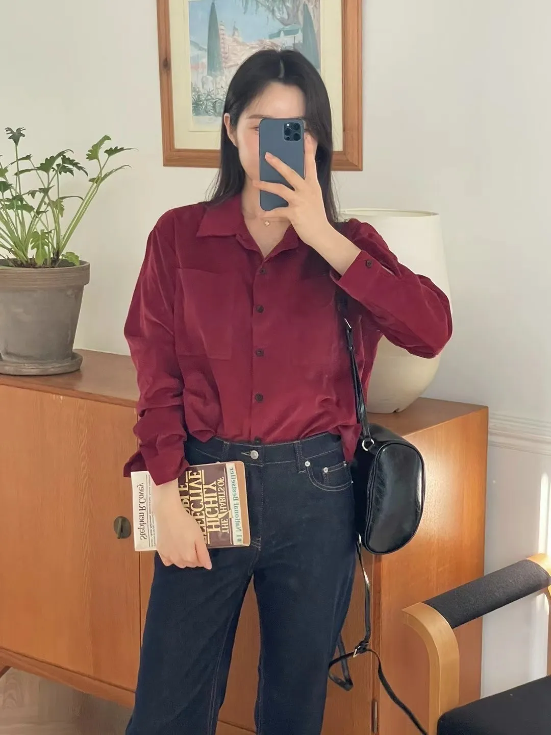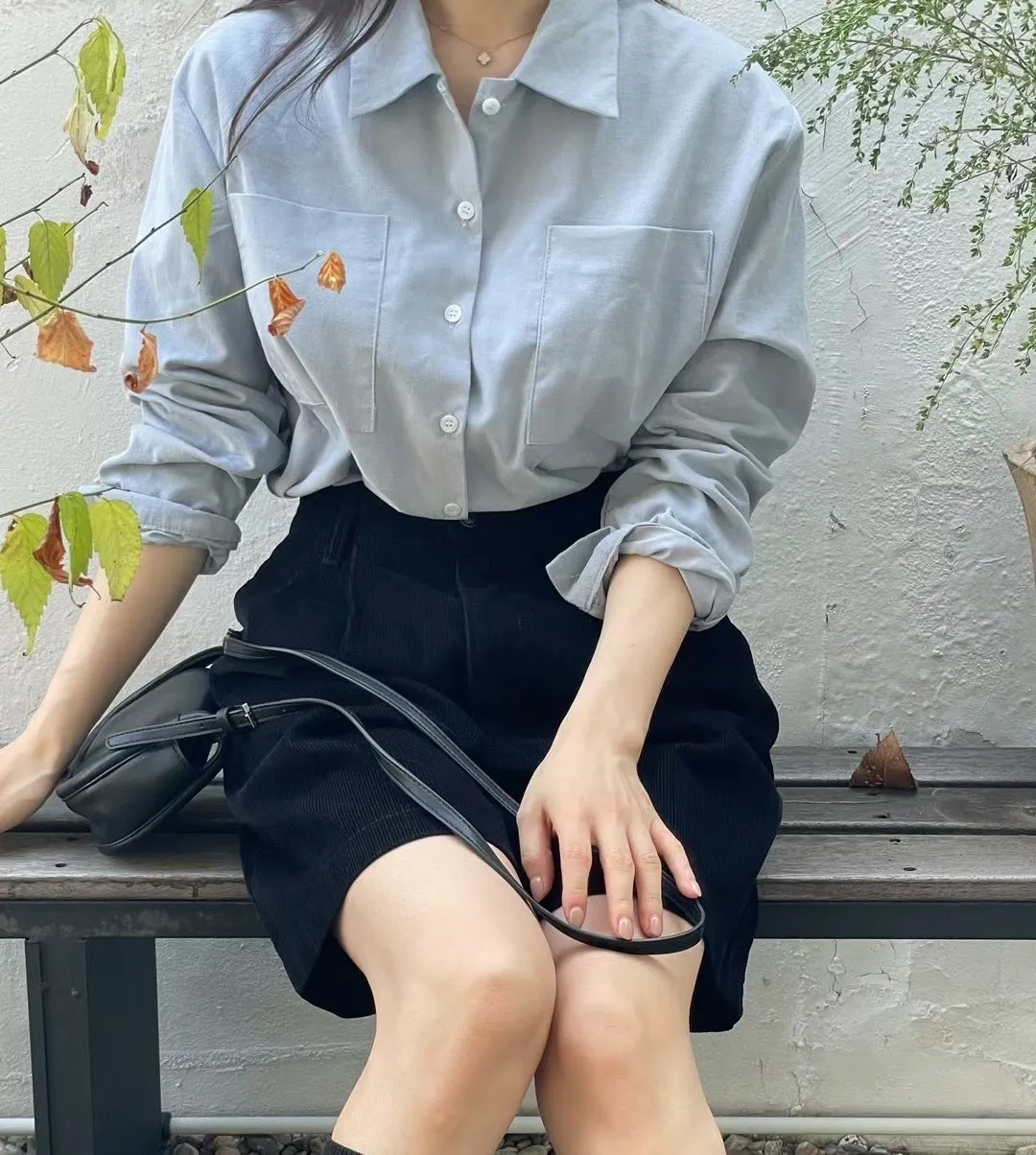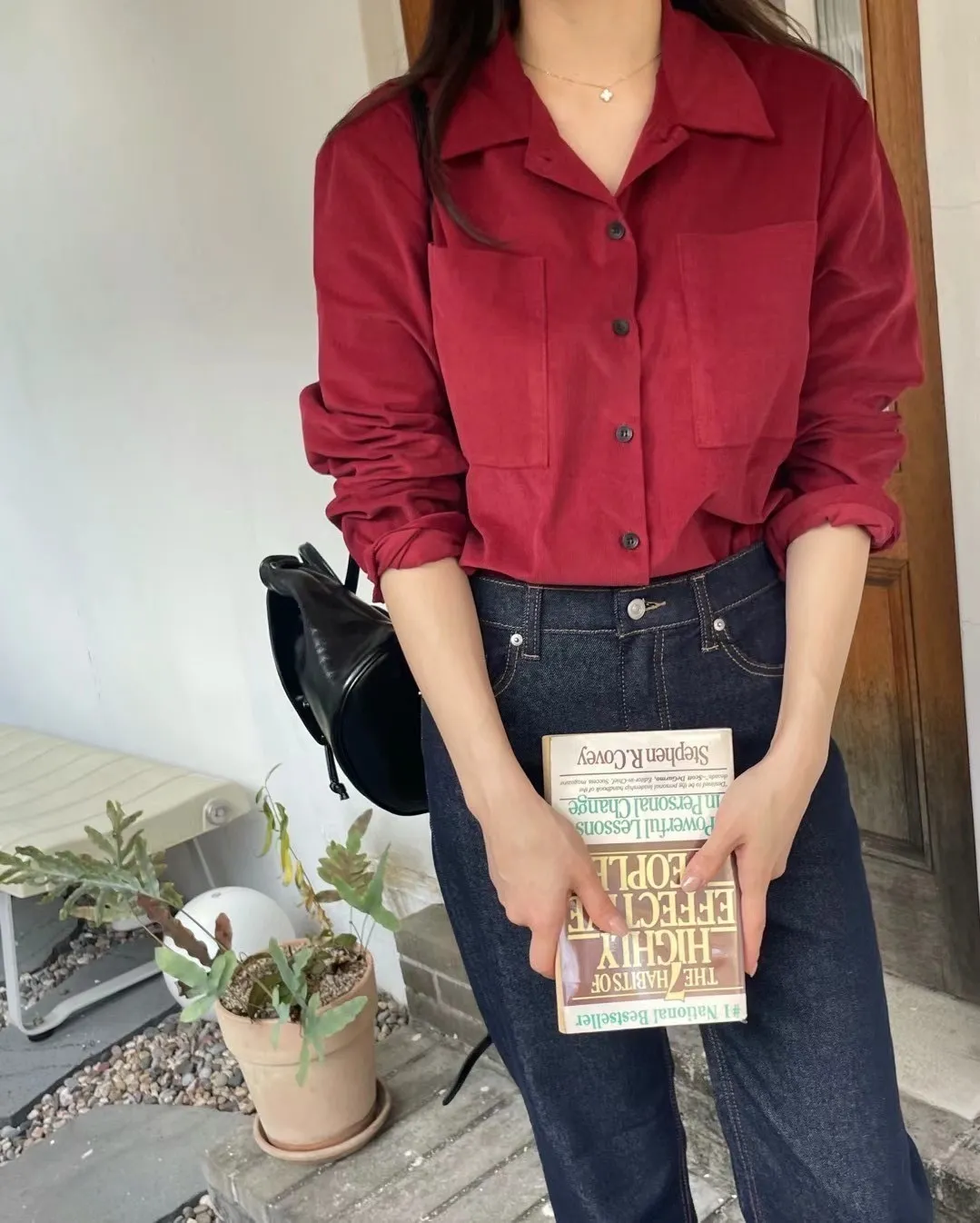 LV1021薄款細緻燈心絨雙口袋襯衫 米 藍 紅 官網價$750 永恆甜甜價$720