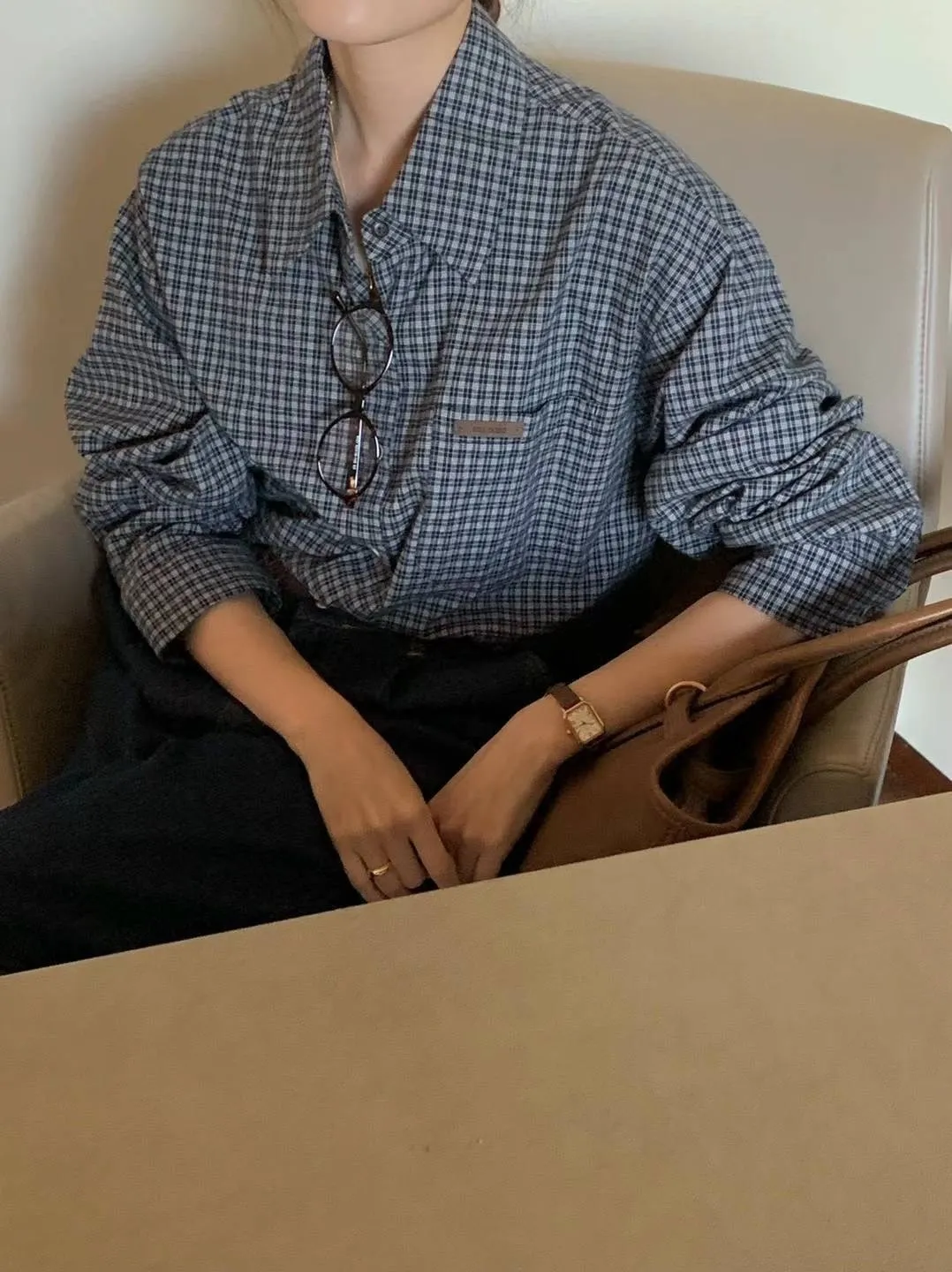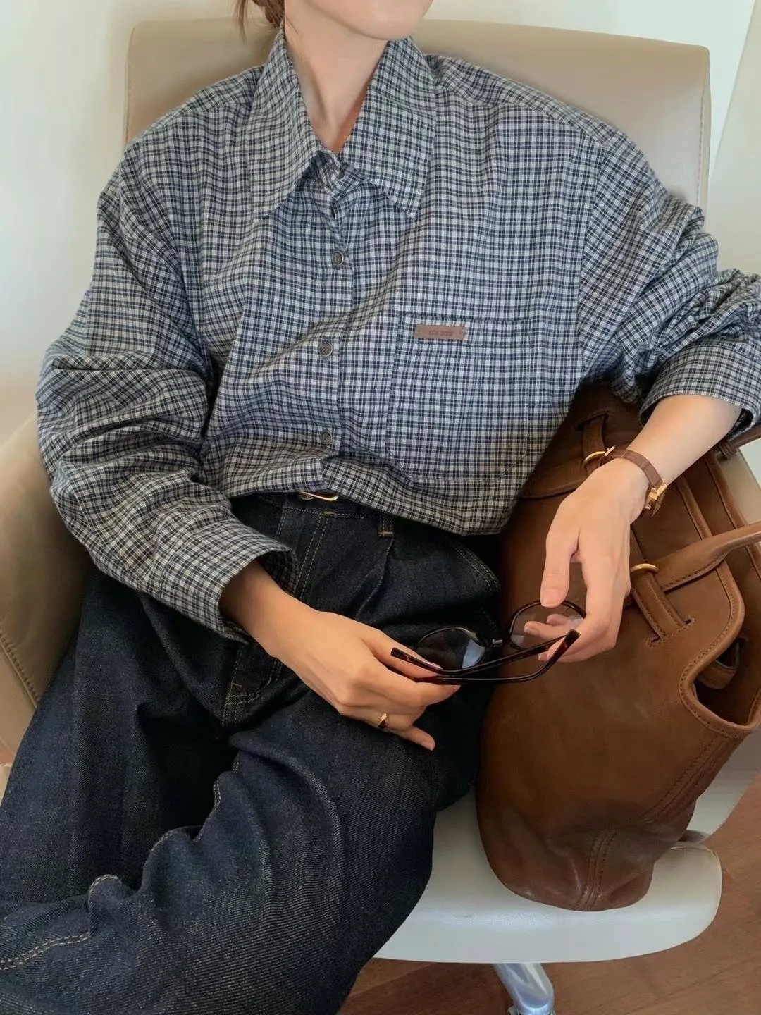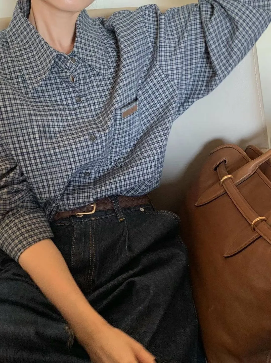 LV103細格紋皮革標襯衫 藍 黑 官網價$1099 線上價$1069