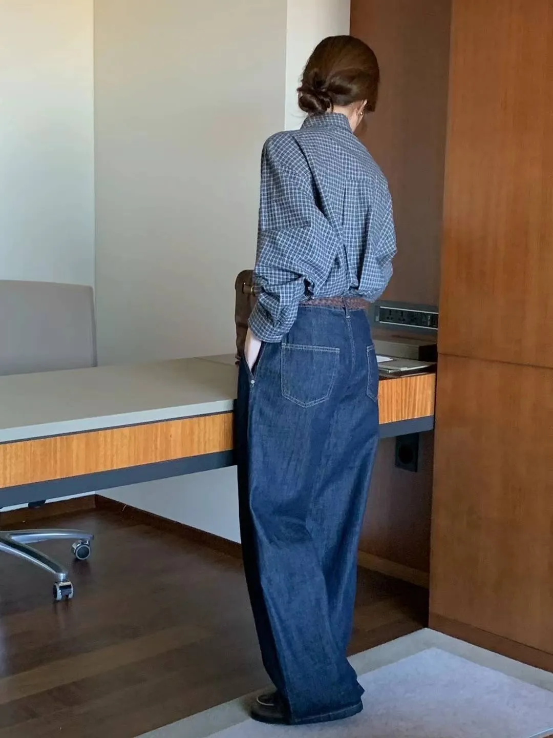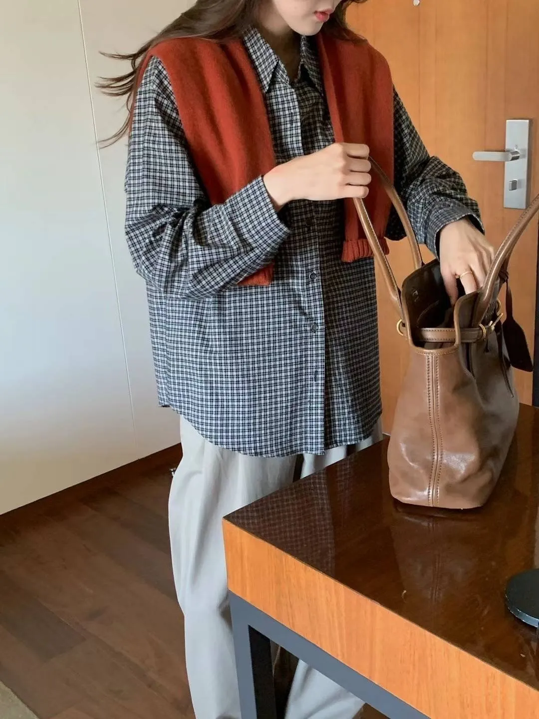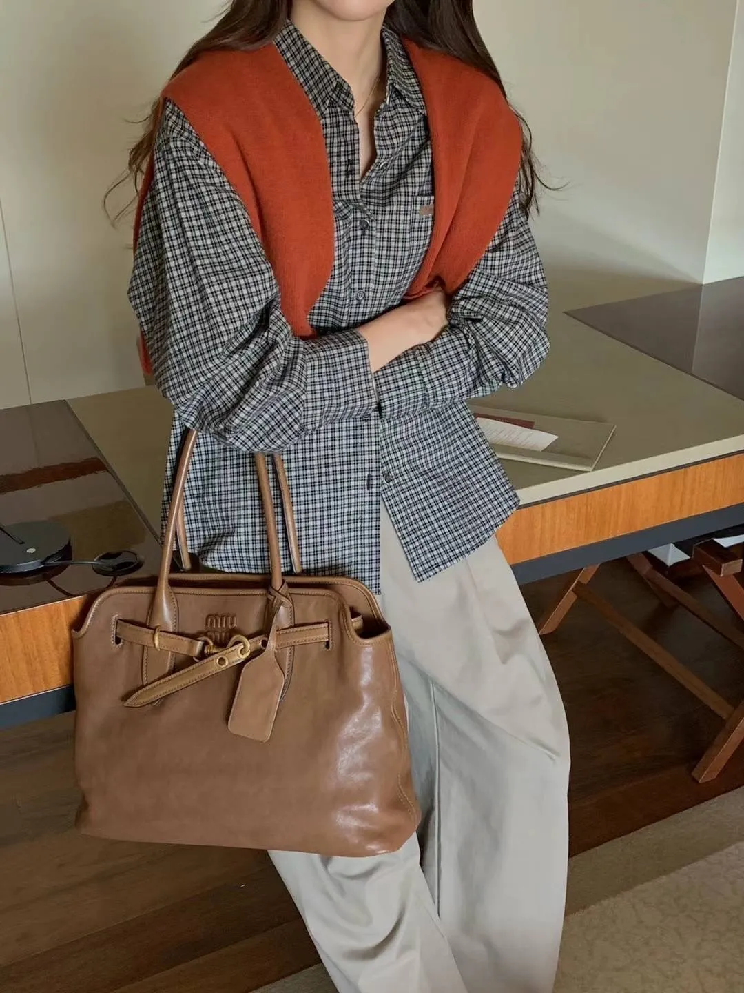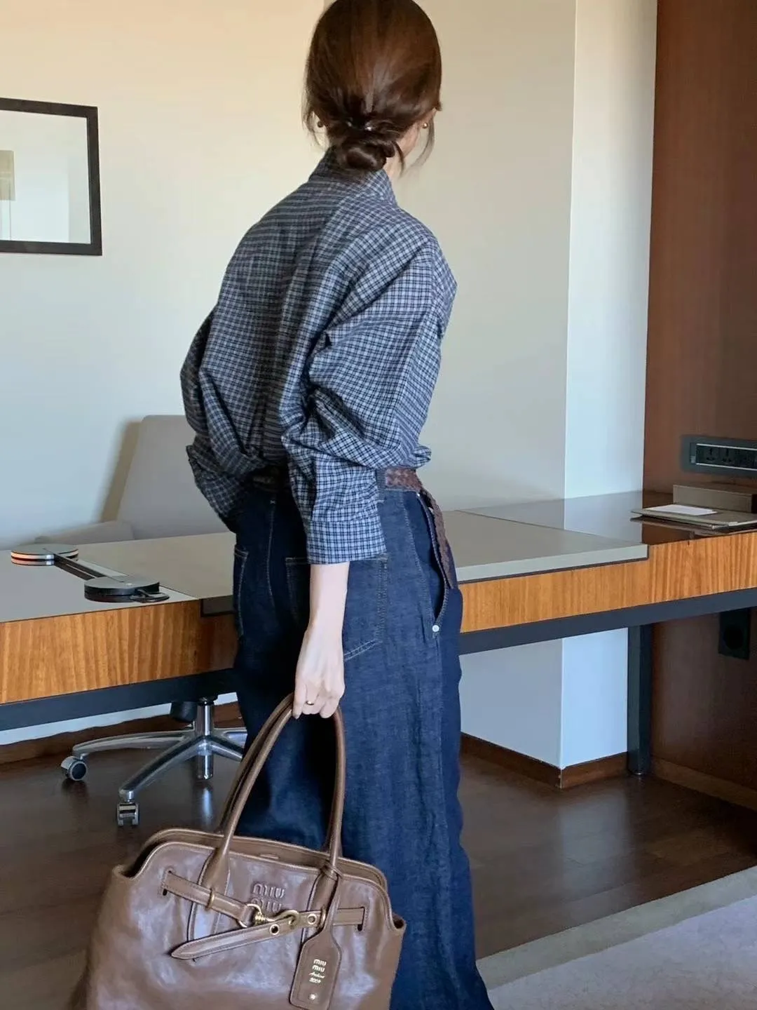 LV103細格紋皮革標襯衫 藍 黑 官網價$1099 線上價$1069