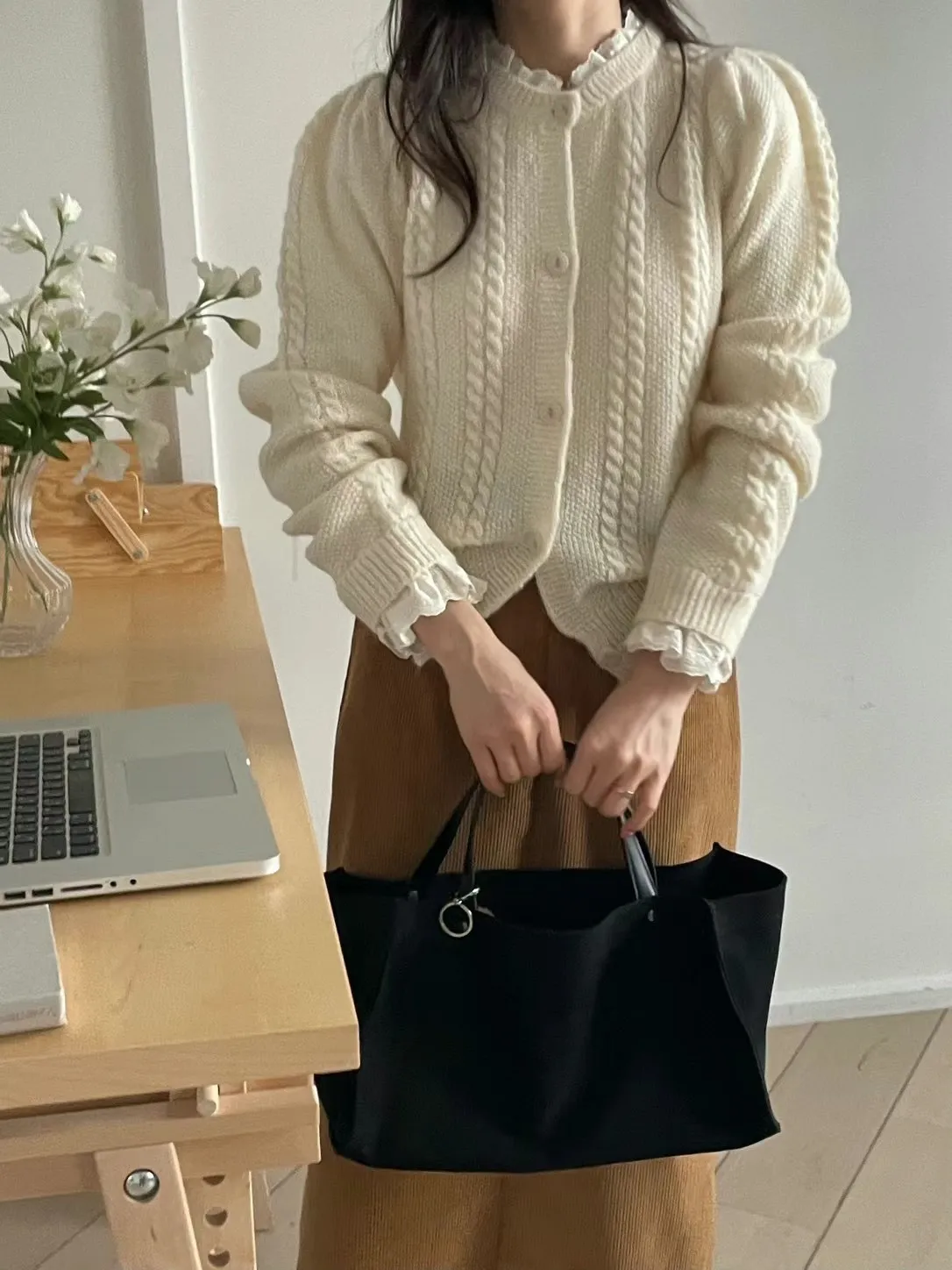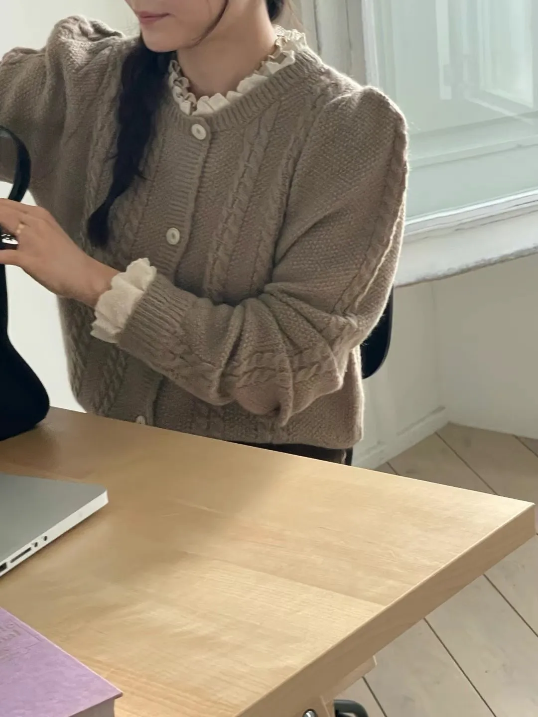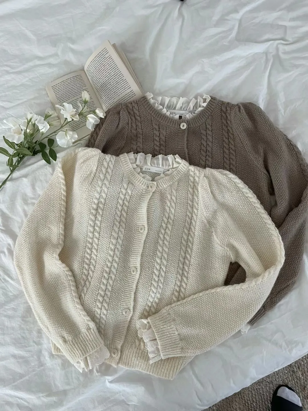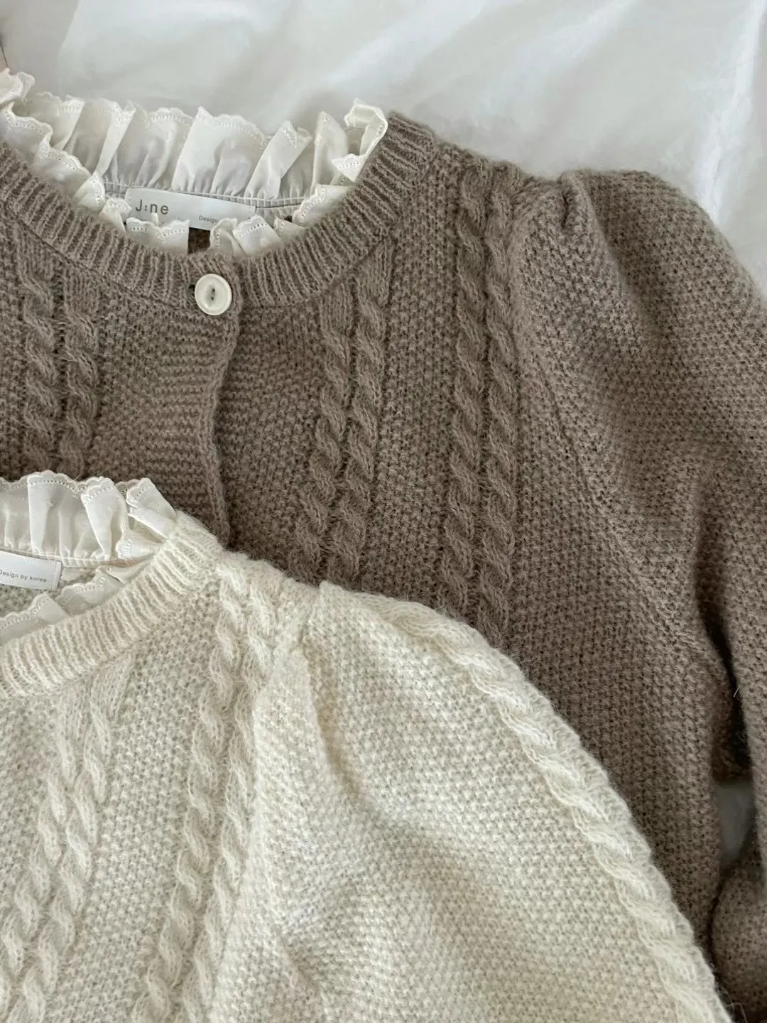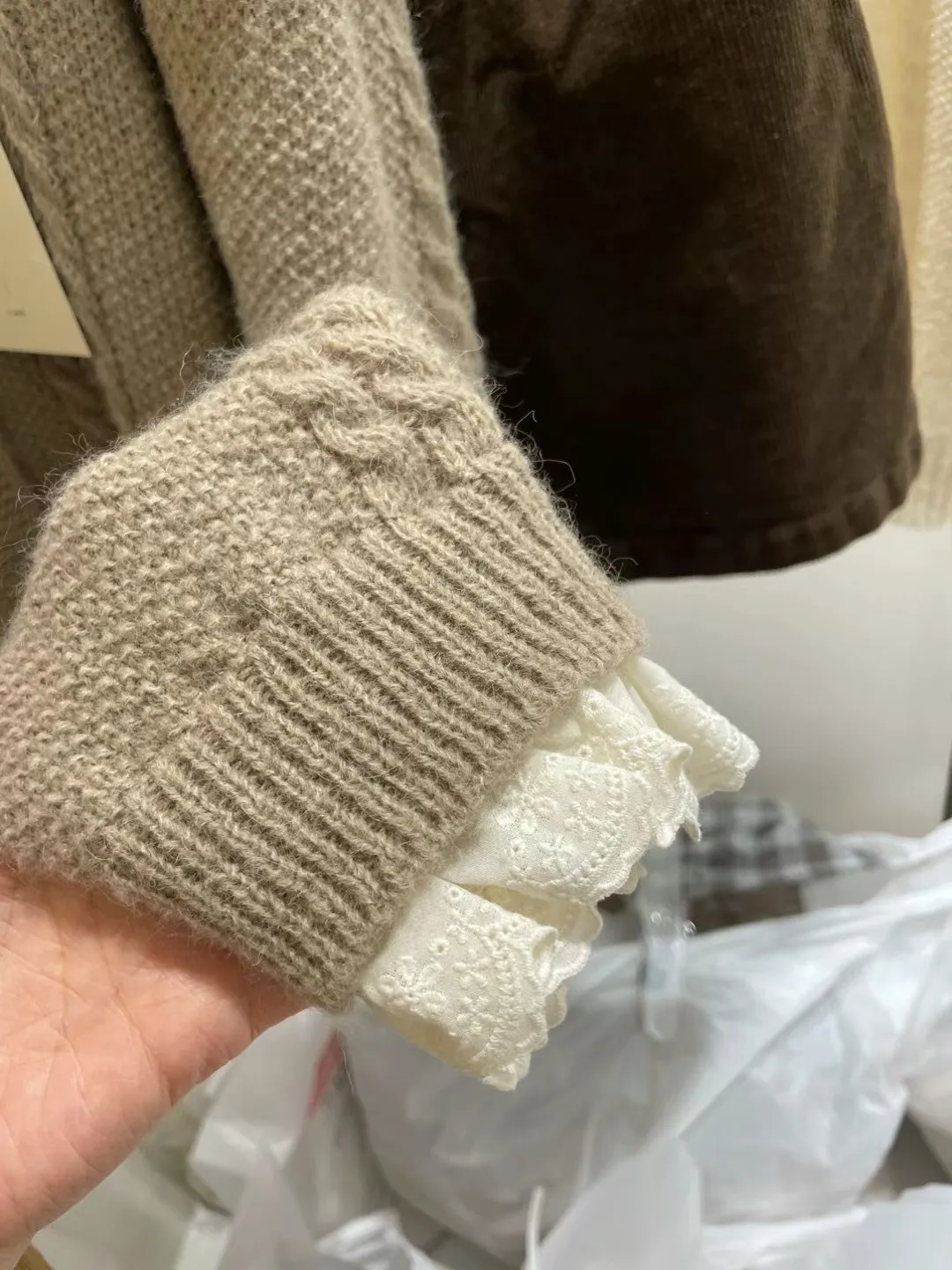 LV1030拼接蕾絲羊毛針織上衣外套 米 奶茶 官網價$1010 永恆甜甜價$980