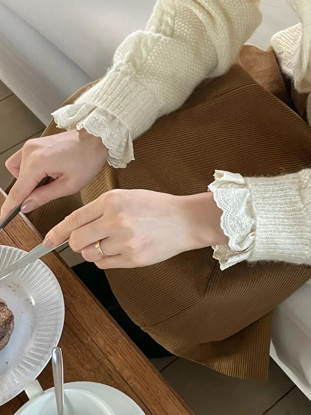 羊毛20% 領口袖口拼接蕾絲 修身版型 敏肌略過 穿到L號