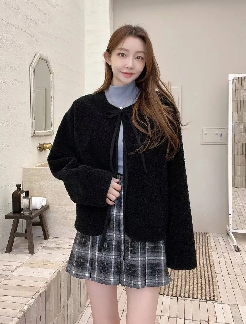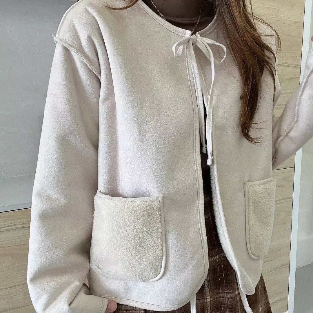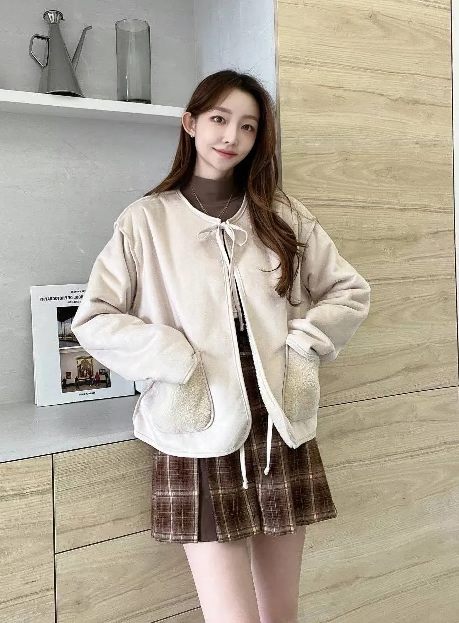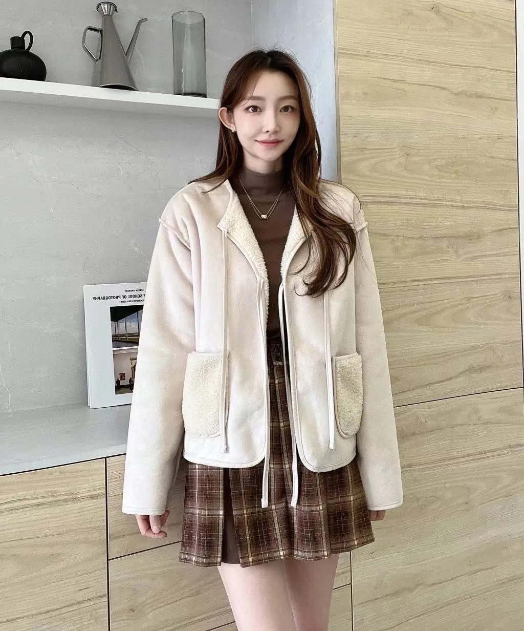 聚酯 空間感佳 可兩面穿 一面QQ毛 一面仿麂皮感 下擺圓弧收邊設計 L號可