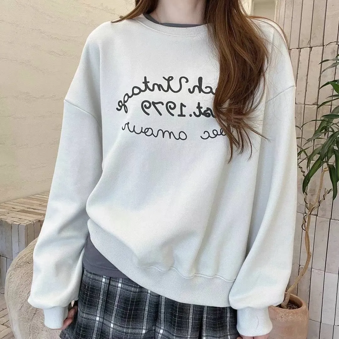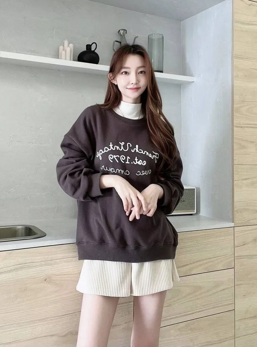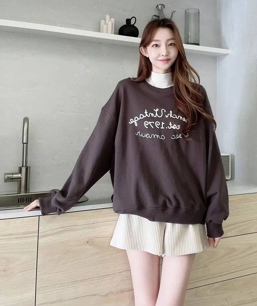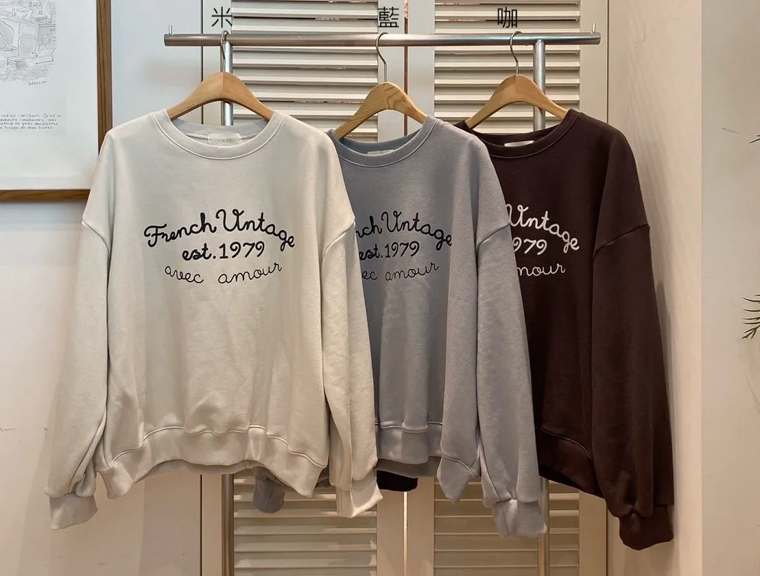 棉+聚酯 米色有混色感 落肩版 布料柔軟親膚 袖口下擺鬆緊縮口