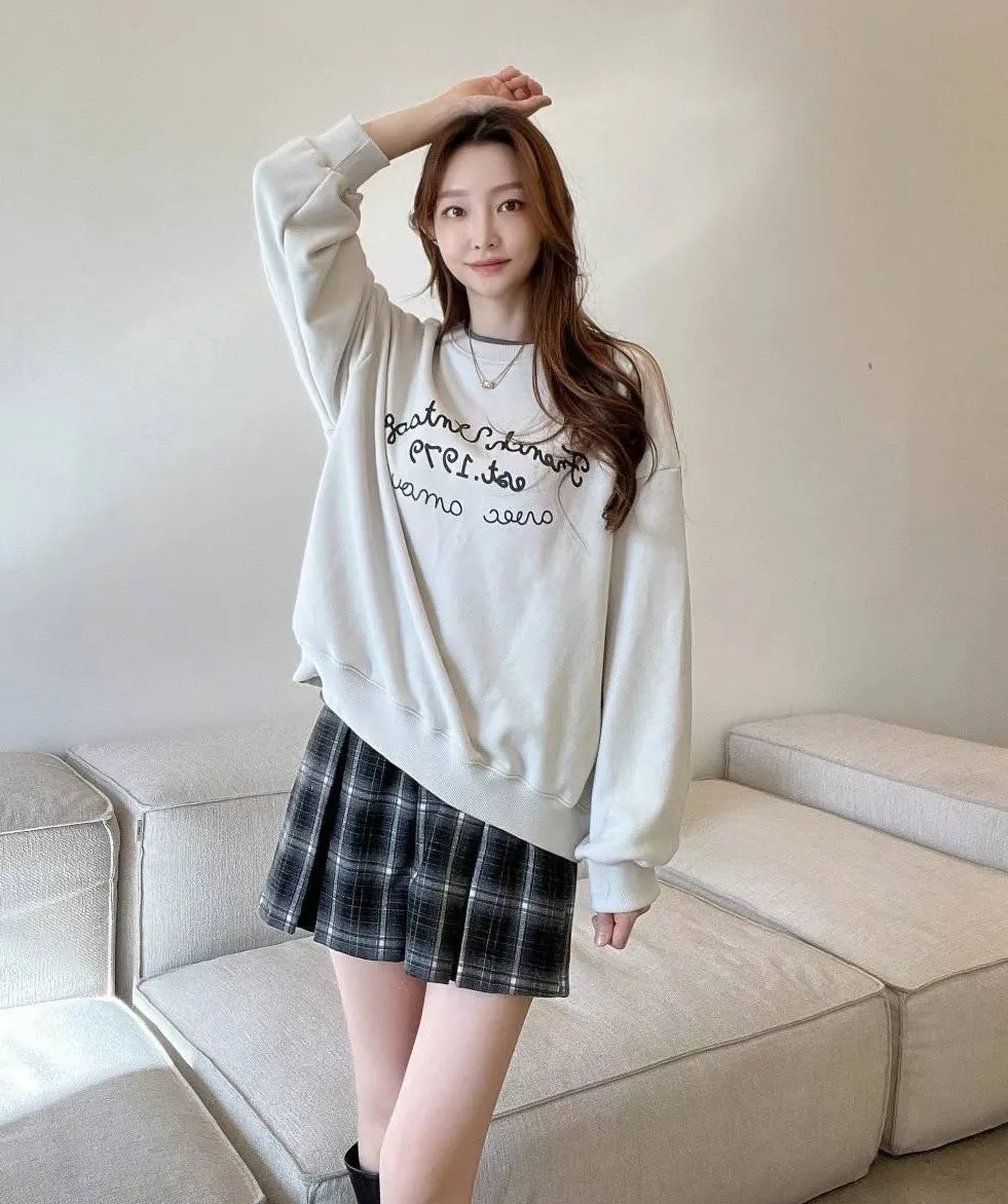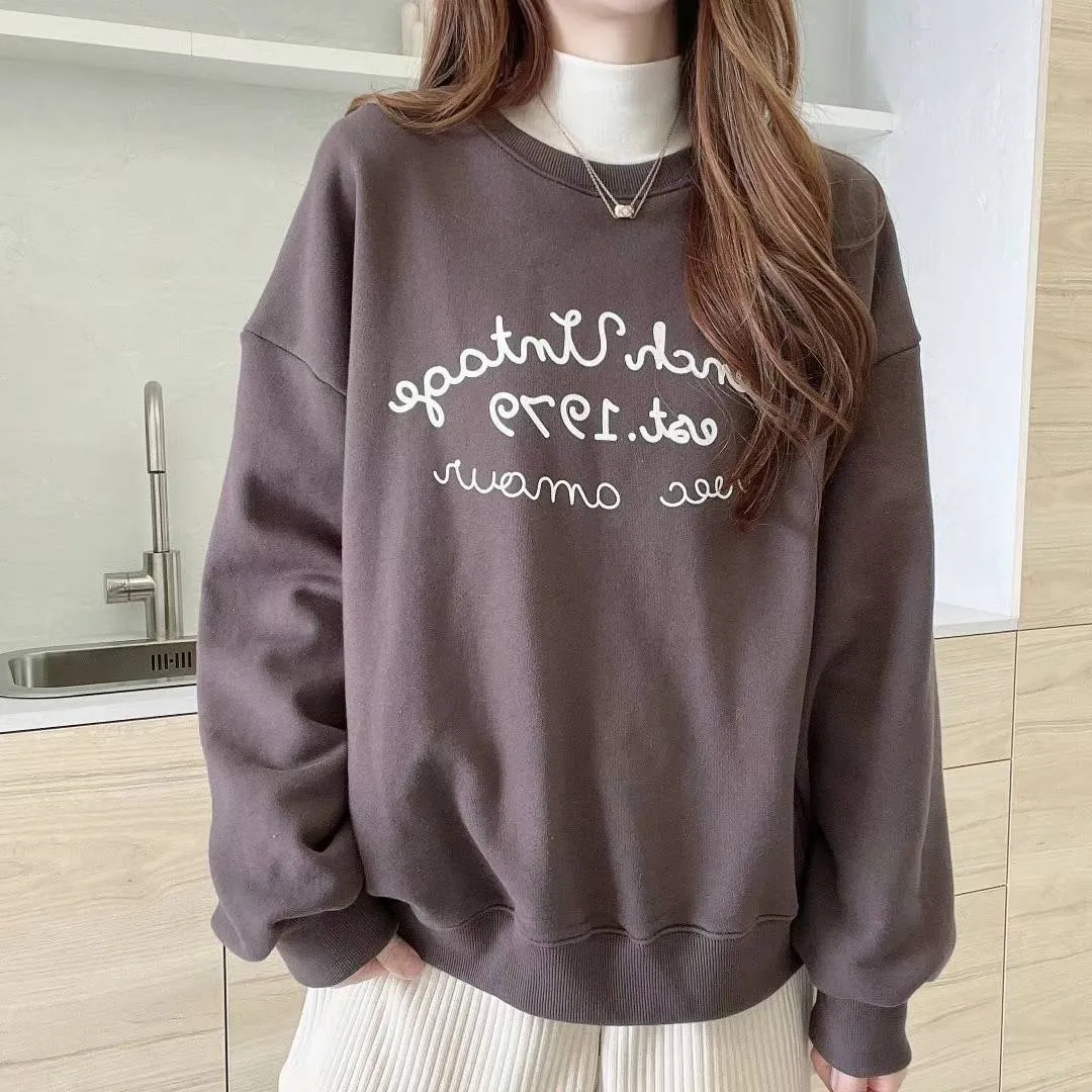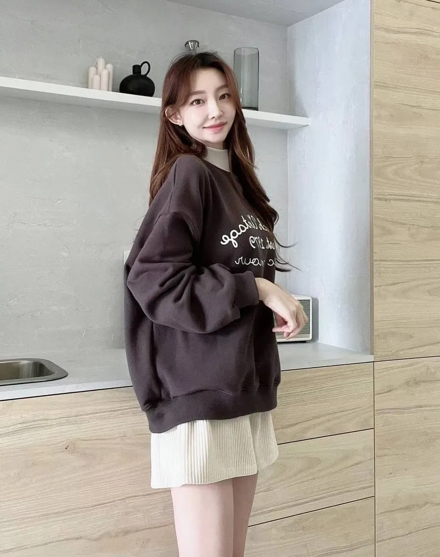 棉+聚酯 米色有混色感 落肩版 布料柔軟親膚 袖口下擺鬆緊縮口