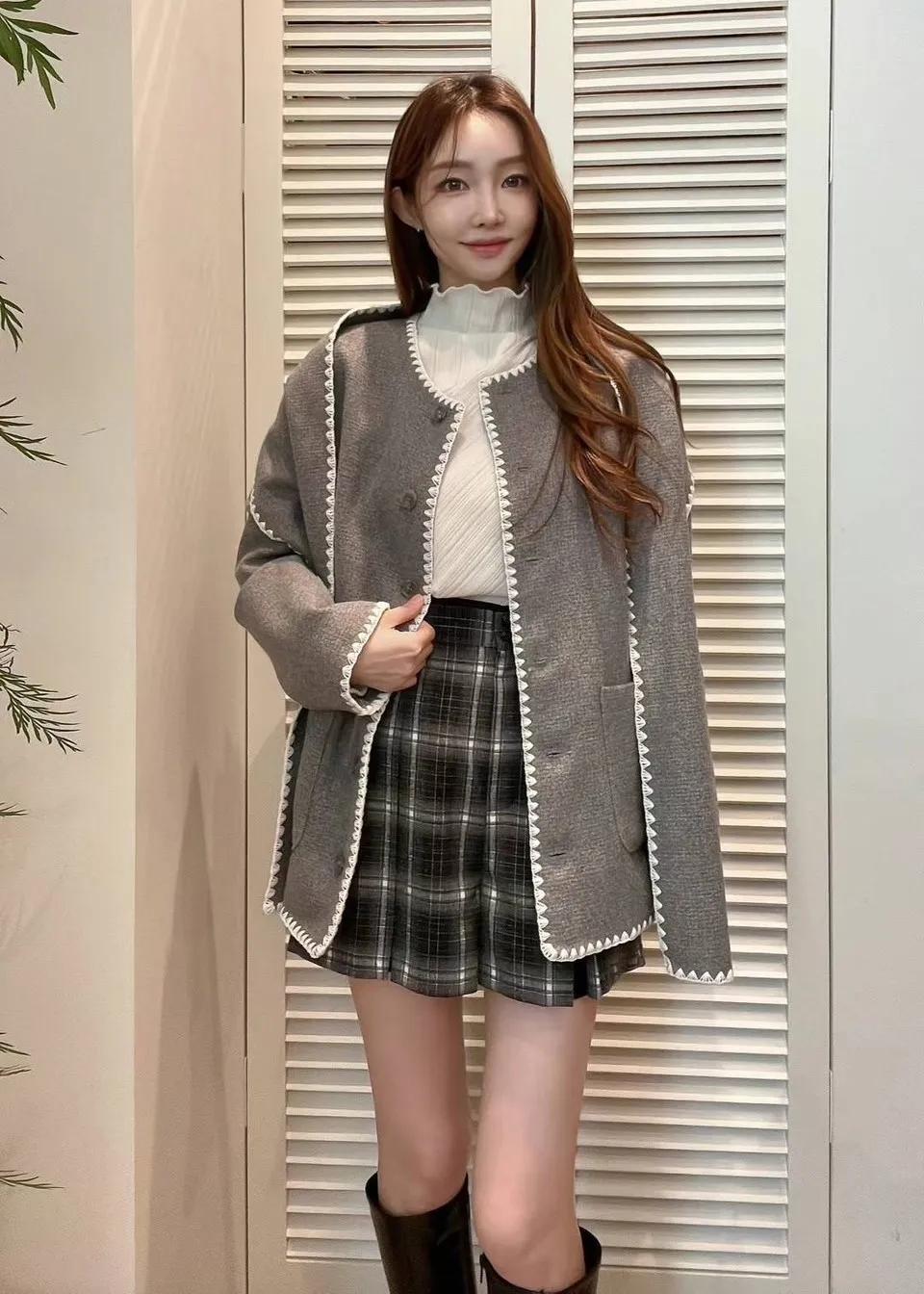 羊毛20%+聚酯+人造絲+壓克力圓領排扣 薄款不厚重 L號可