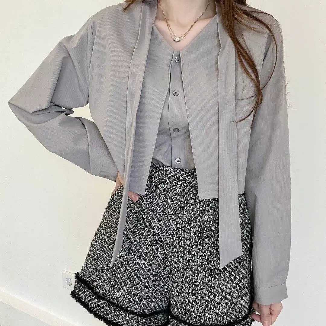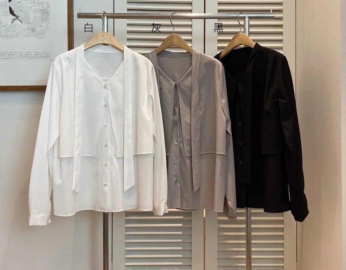 LV1045斗篷感V領襯衫上衣 黑 白 灰 官網價$1129 線上價$1099
