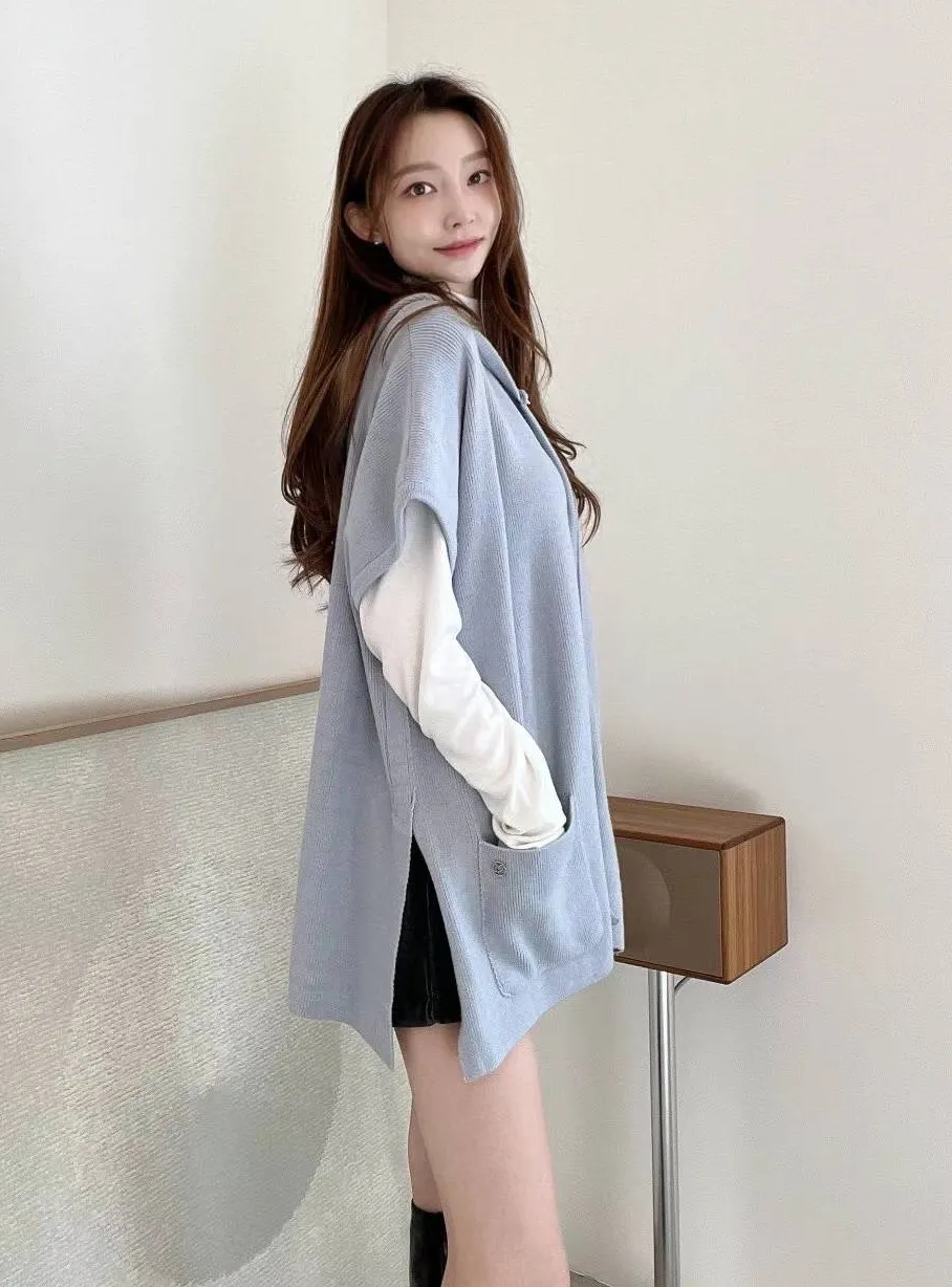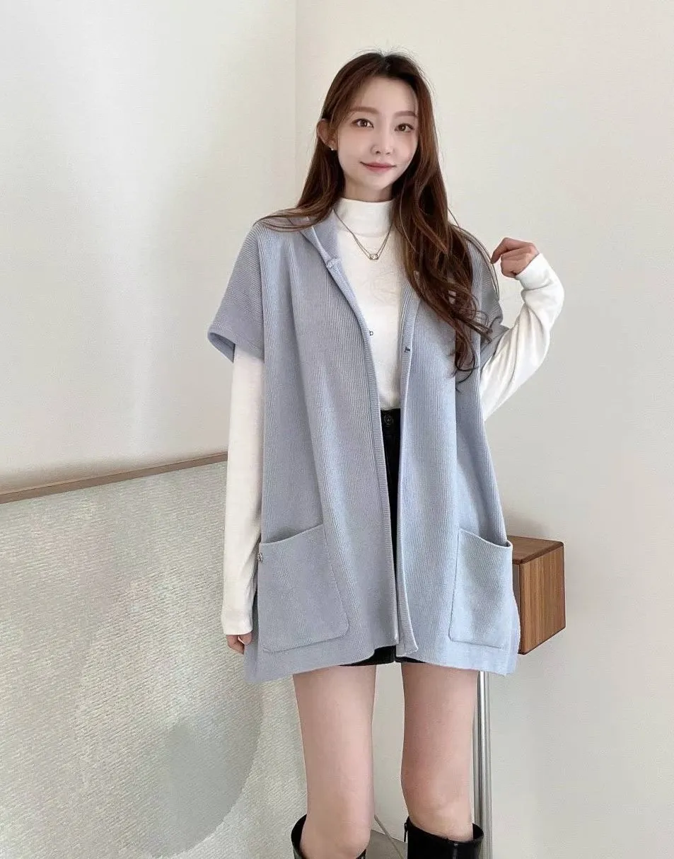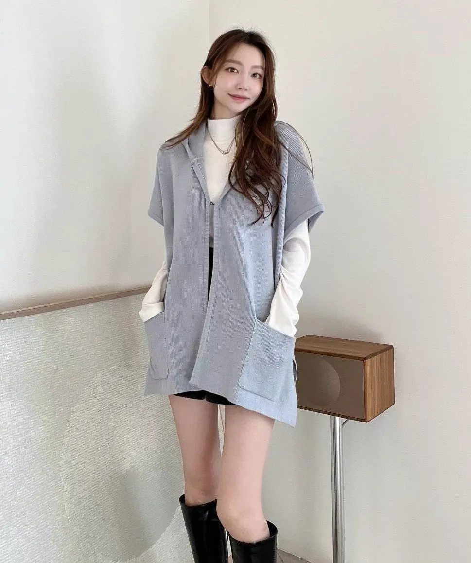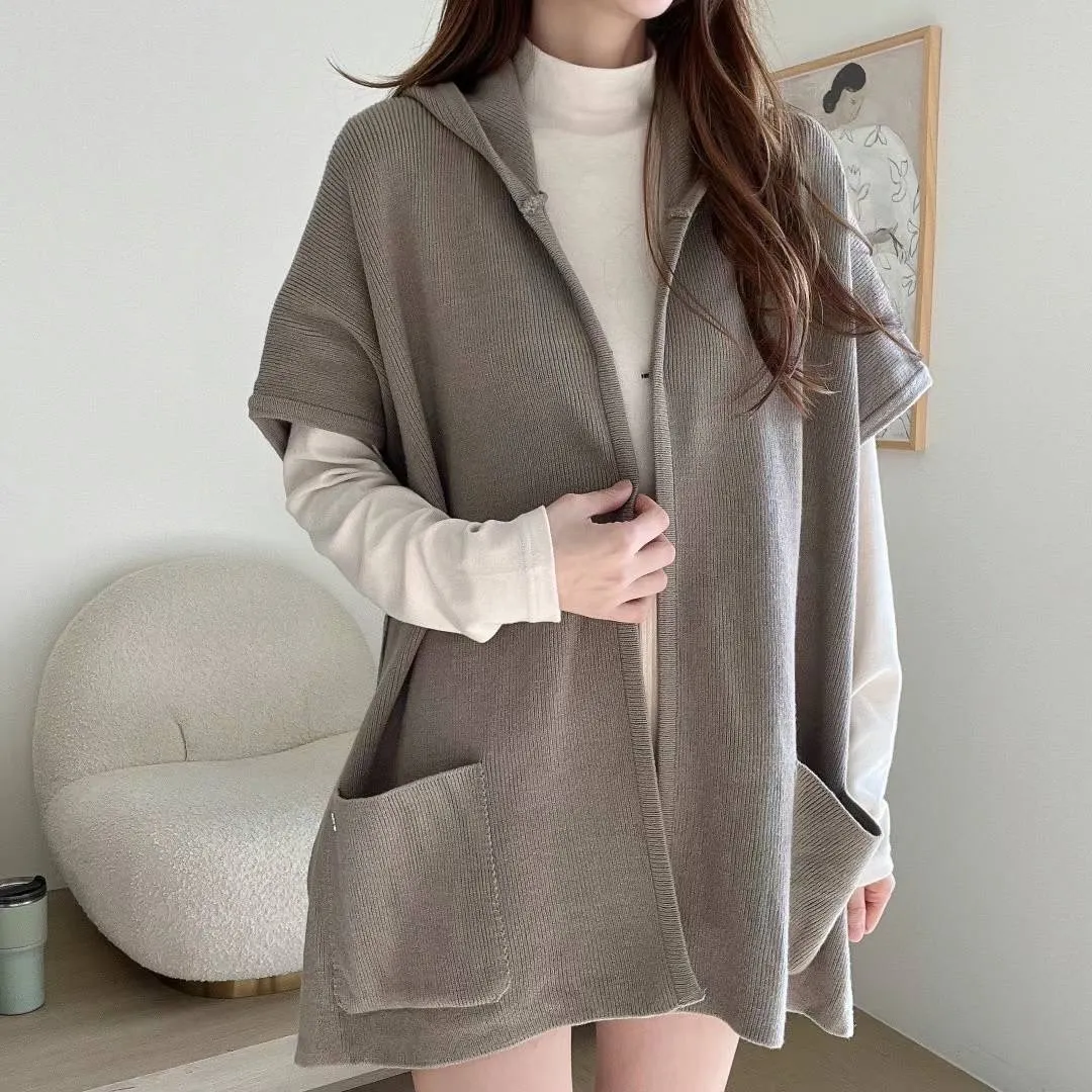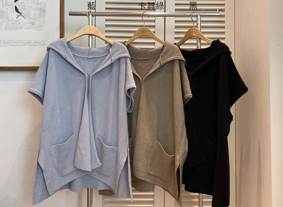 LV1048連帽針織斗篷罩衫 黑 藍 卡其綠 官網價$1399 線上價$1369