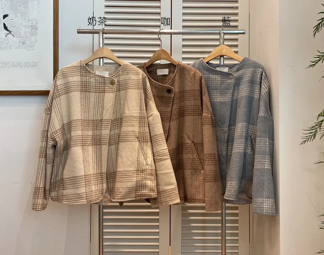 LV1049落肩單釦手工外套 奶茶 咖 藍 官網價$1820 線上價$1790