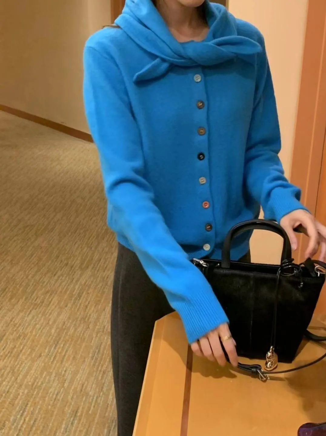 美麗諾羊毛100% 高級織法 拚色彩釦 附脖圍