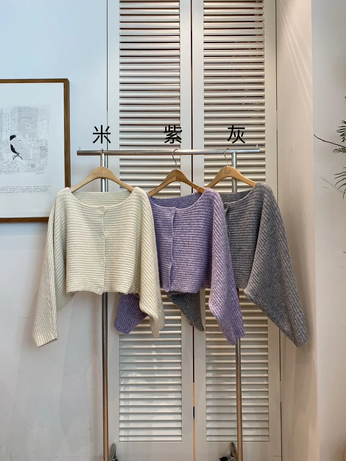 LV1052針織短版排釦斗篷毛衣 米 灰 紫 官網價$1299 線上價$1269