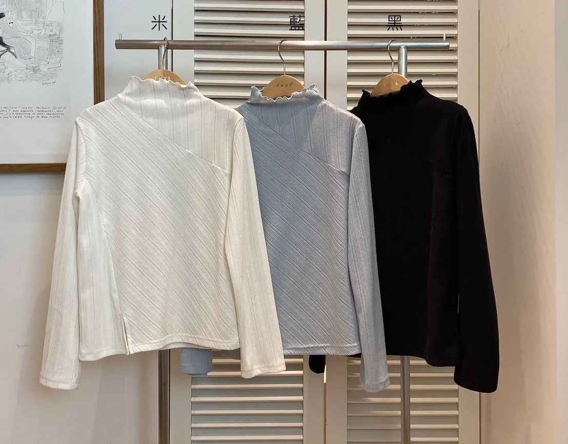 LV1057木耳滾邊斜切線條打底衣 黑 米 藍 官網價$799 線上價$769