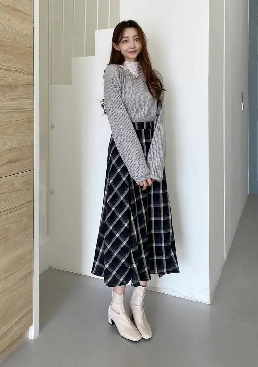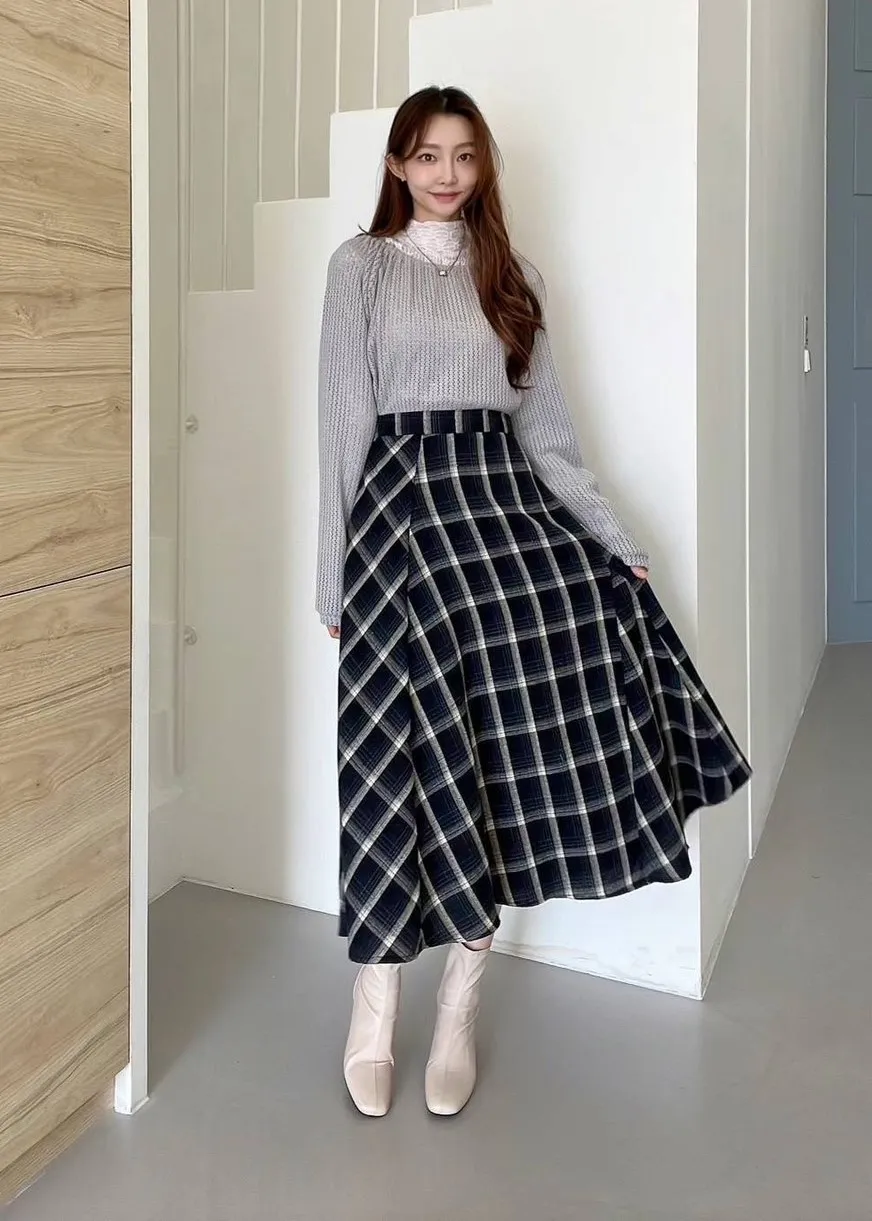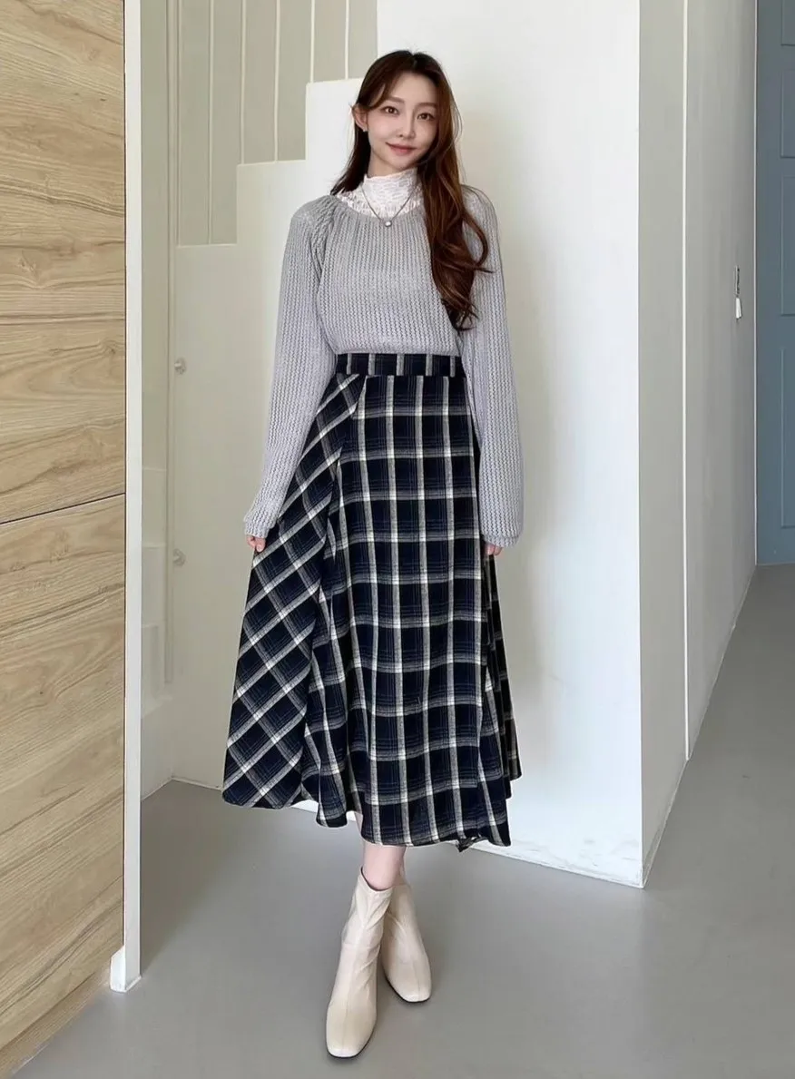 LV1060不規則傘擺格紋裙 深藍 綠 咖 官網價$1250 線上價$1230