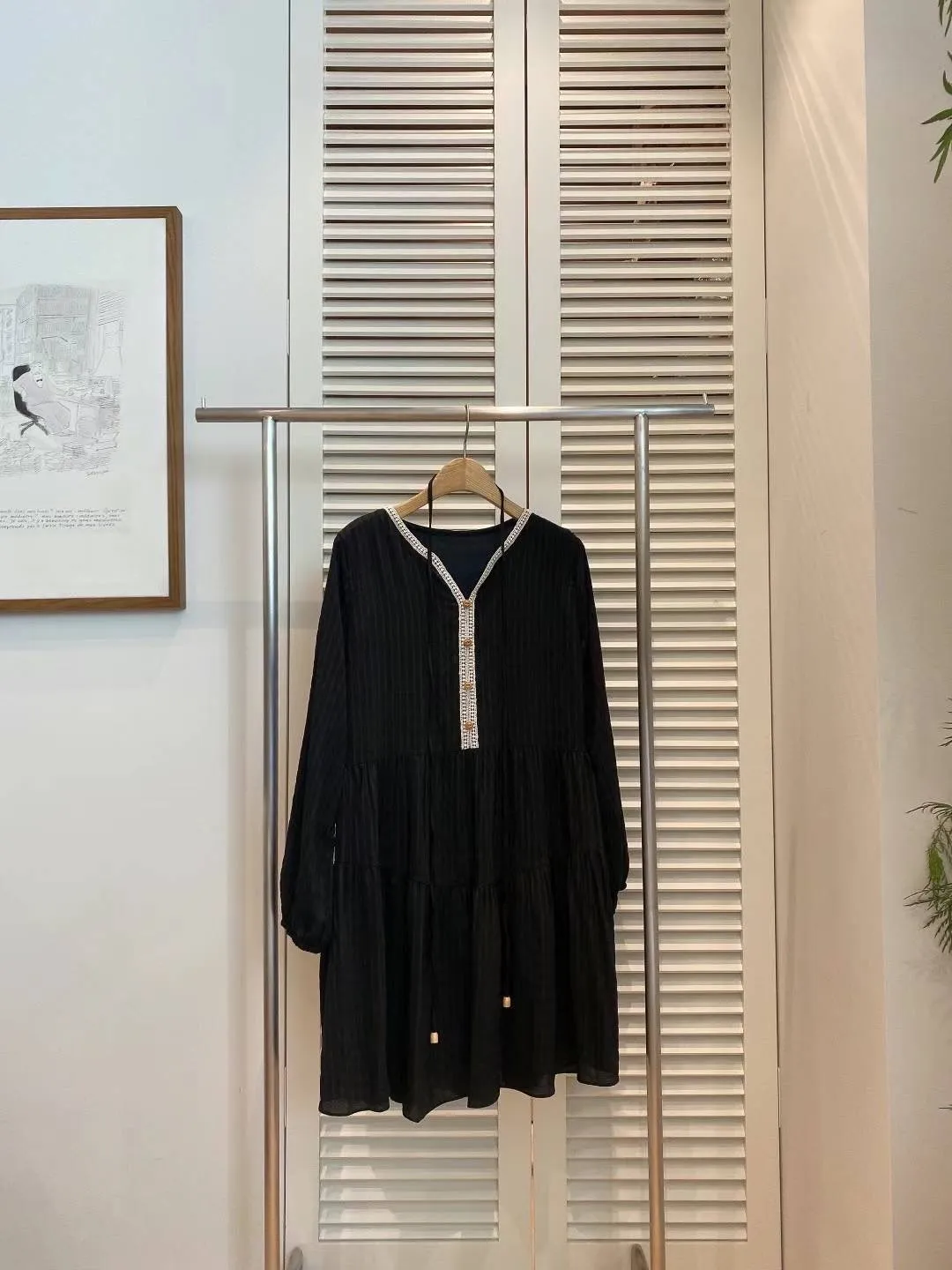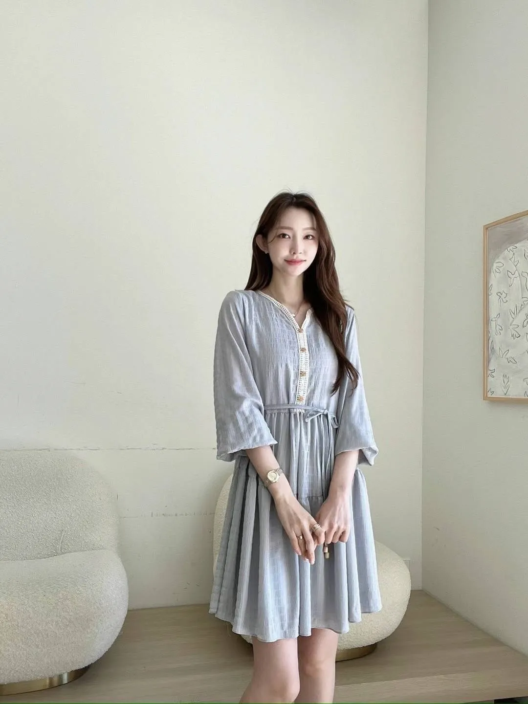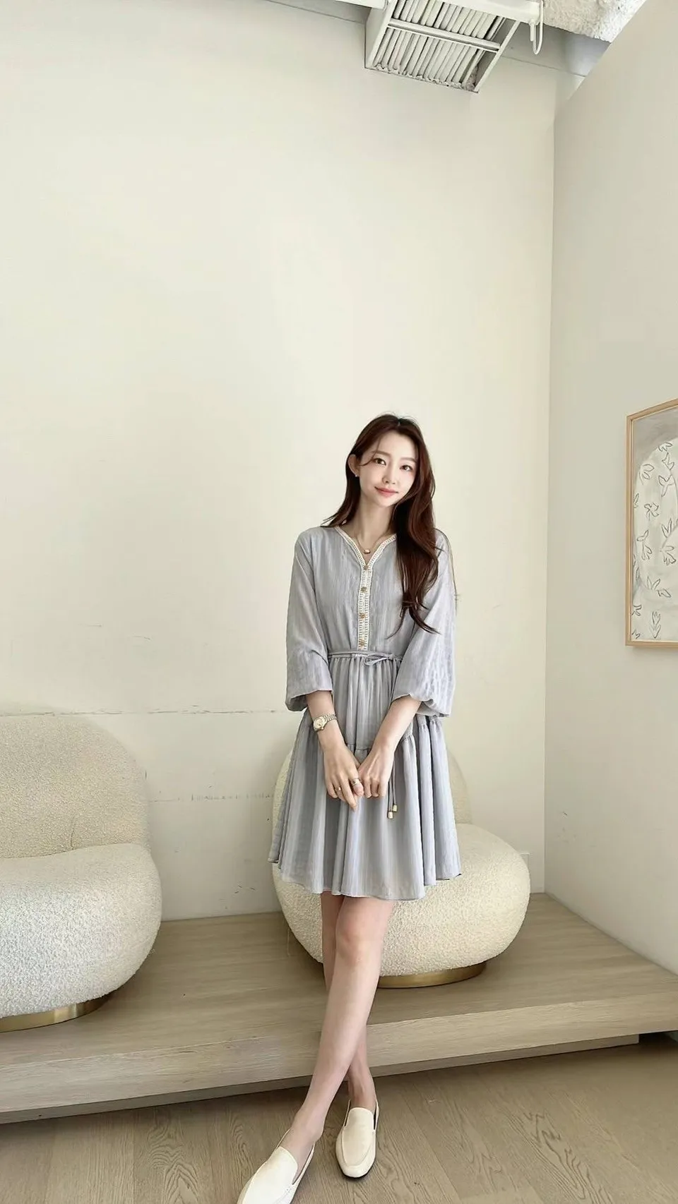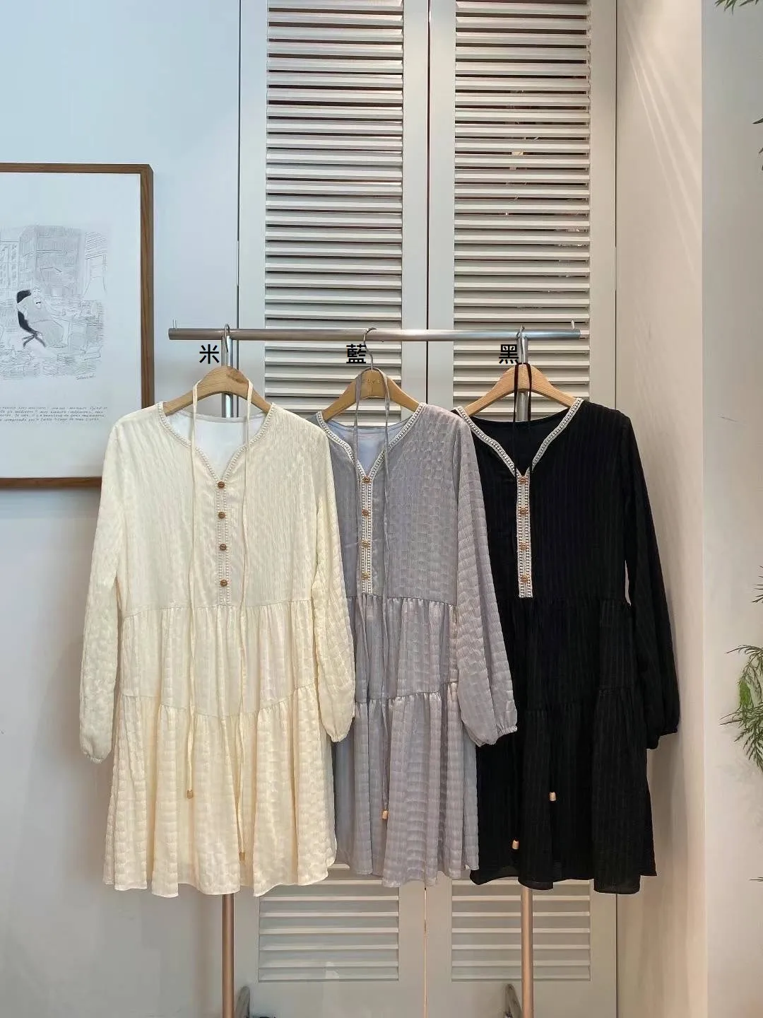LV1063限量回購款極薄法式優雅洋裝(附綁帶)(原PC678) 米 藍 黑 官網價$1480 線上價$1450