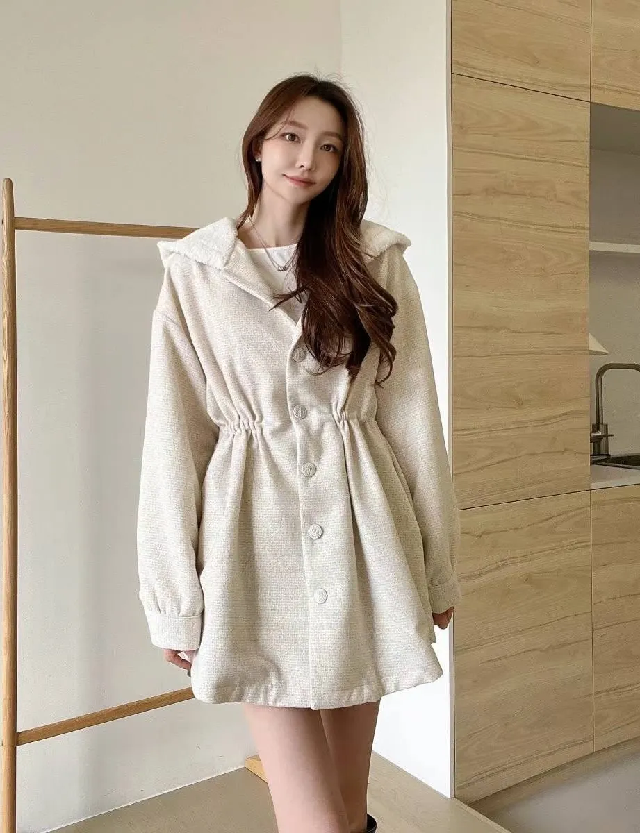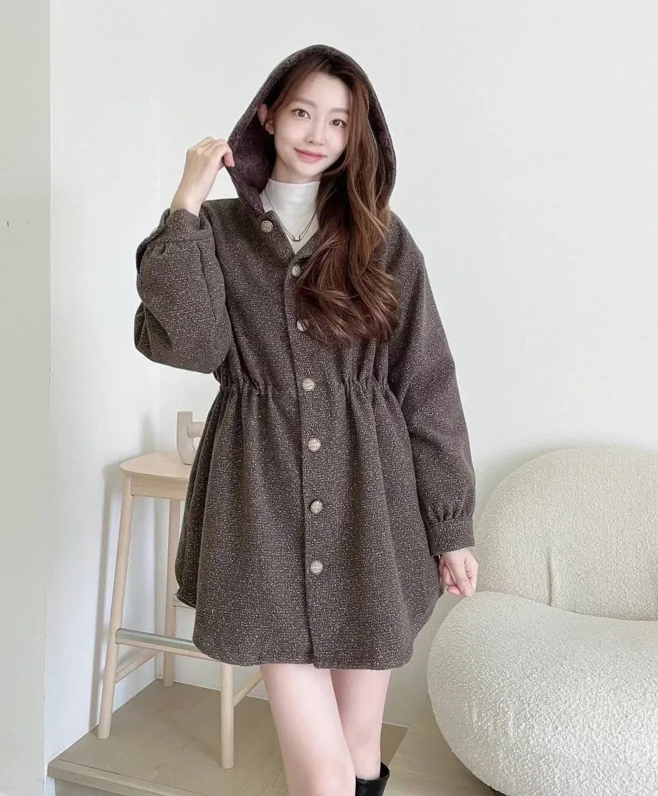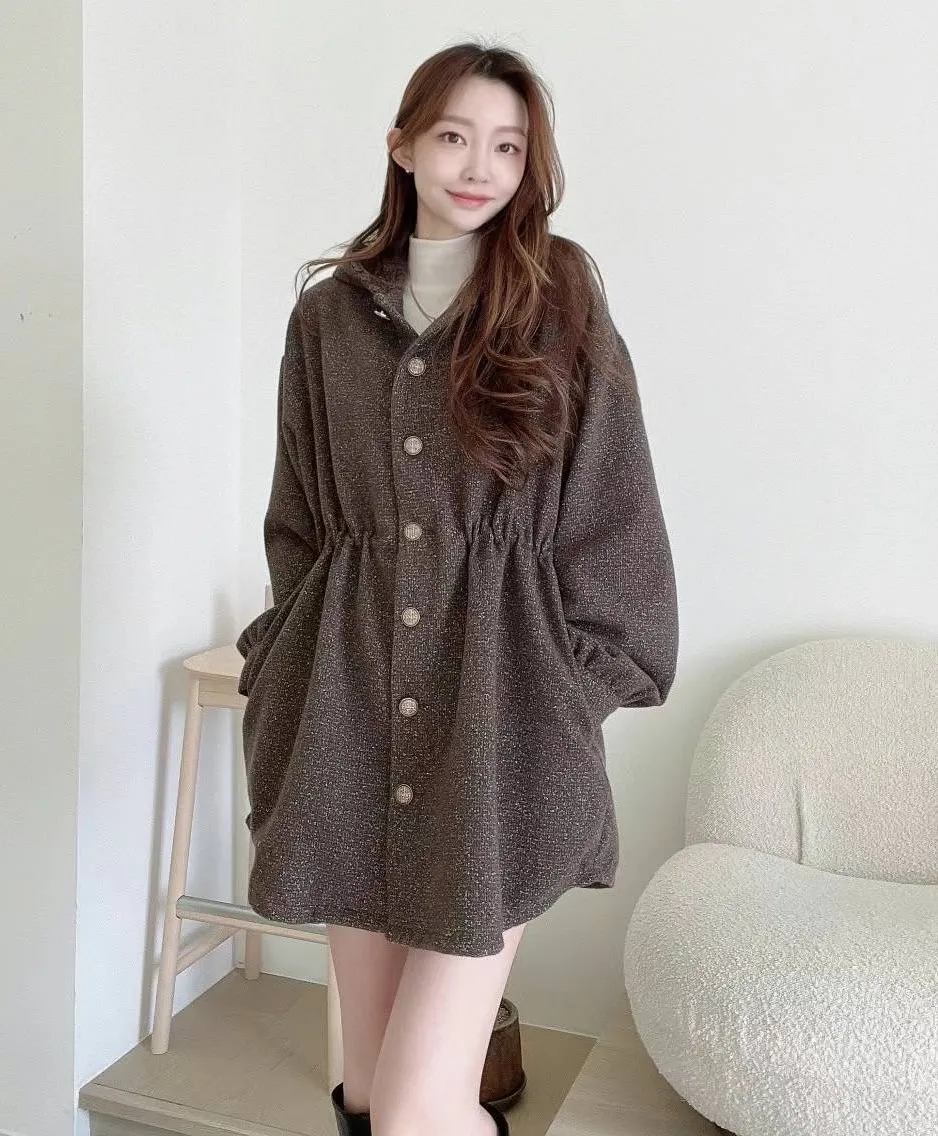 LV1064小香感腰抽繩連帽外套 黑 咖 米 官網價$2380 線上價$2350