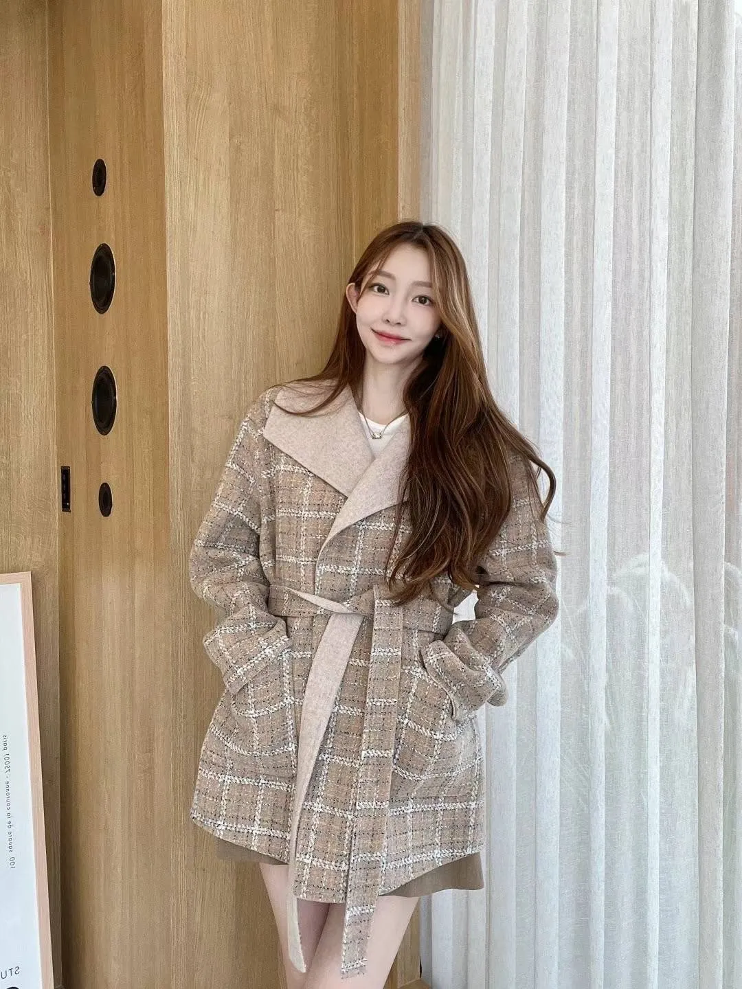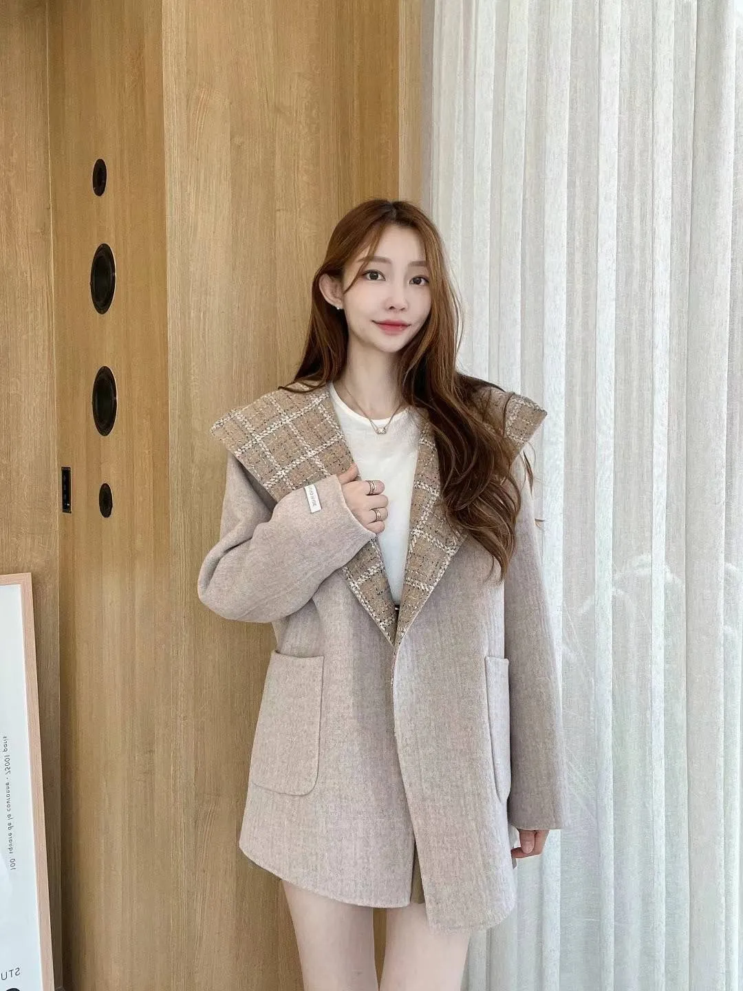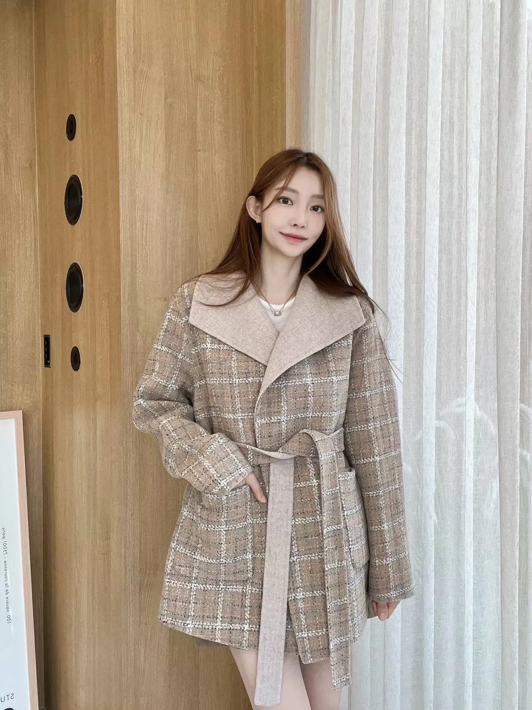 LV1069特價奶茶色雙面大翻領大衣外套(附綁帶) 原價$4780 特價$2750