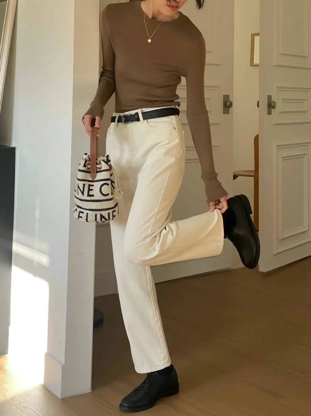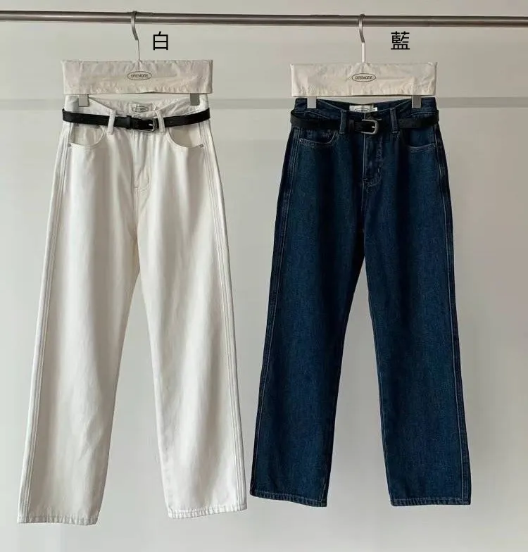 LV108直筒順身九分褲(送皮帶) 白 藍 S M L 官網價$1190 線上價$1160
