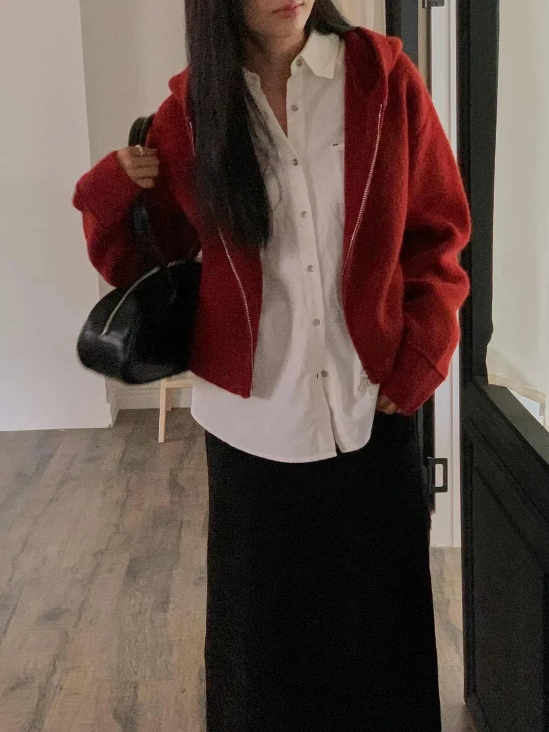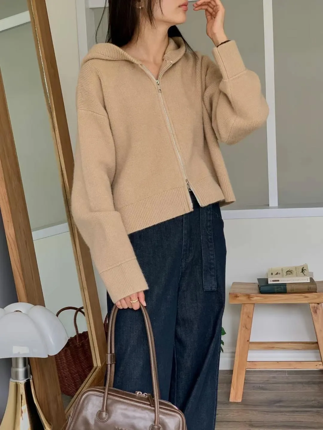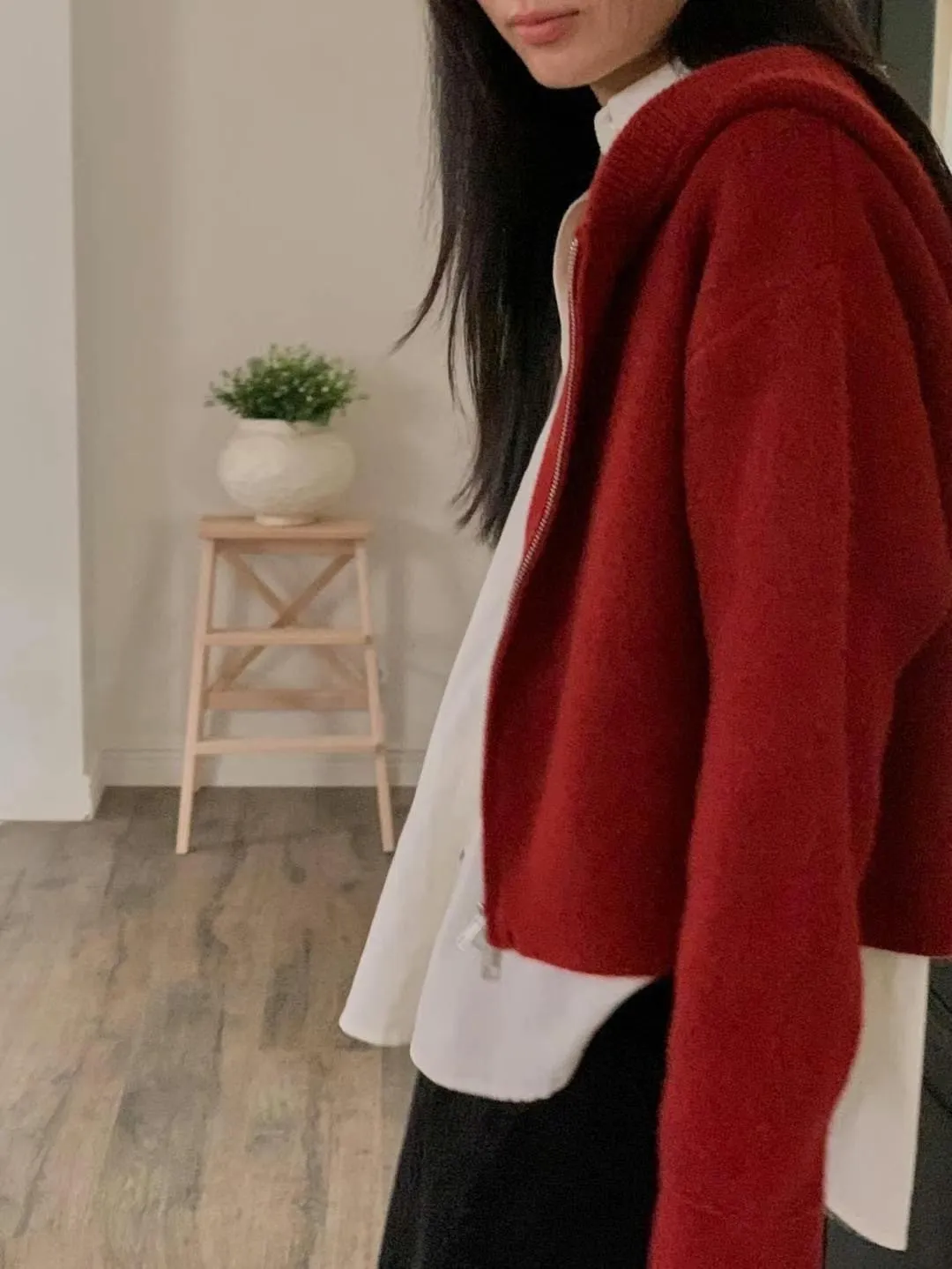 羊毛18%+棉 雙頭拉鍊穿脫 連帽設計 順身微短版 灰色斷貨