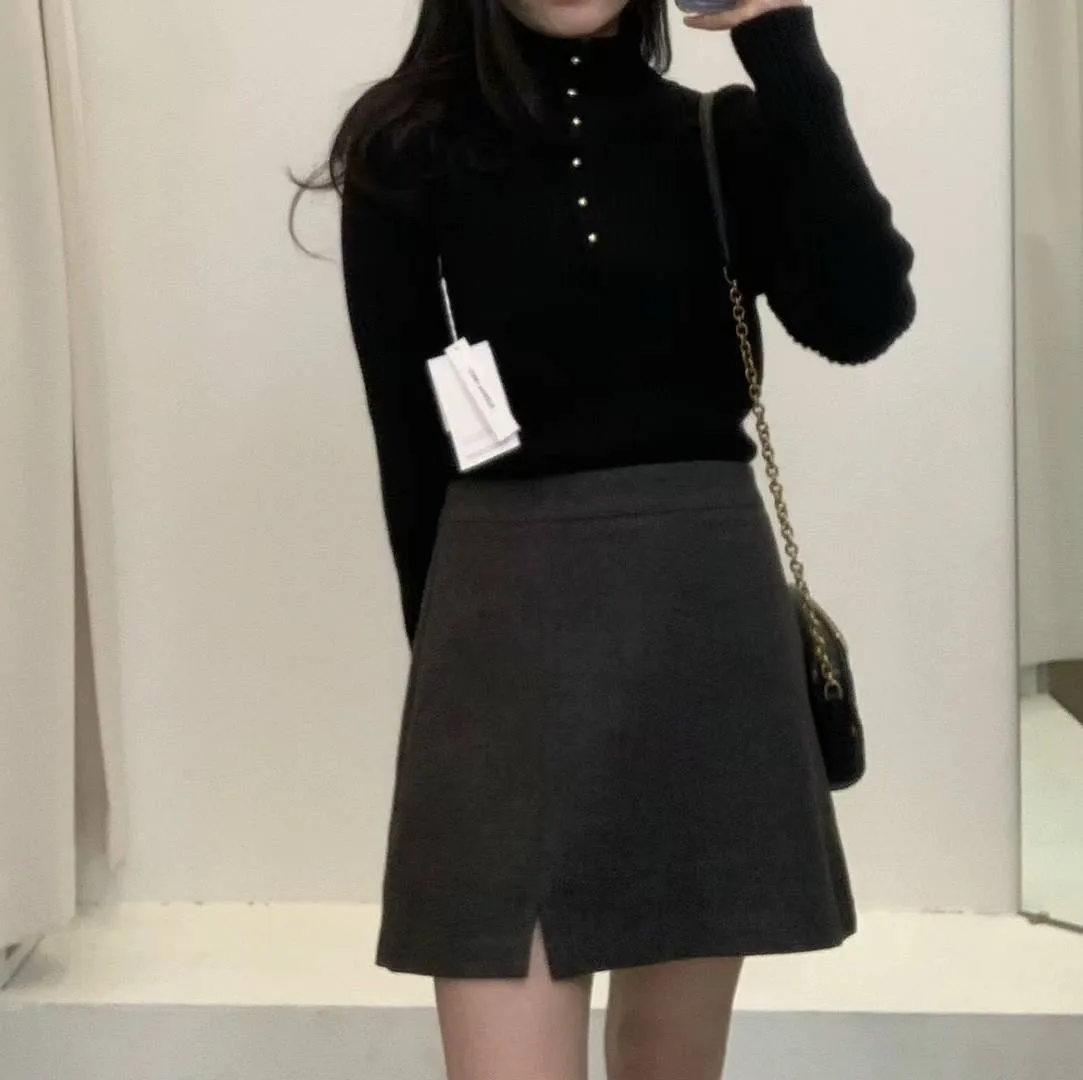LV1136推薦款羊毛Aline小開叉褲裙 灰 奶茶 S M 官網價$929 線上價$899
