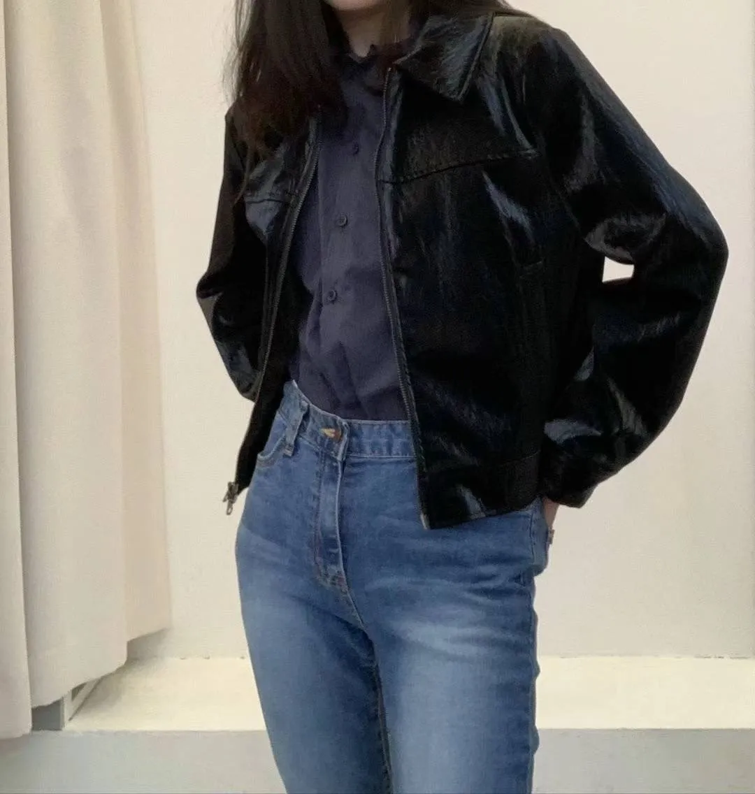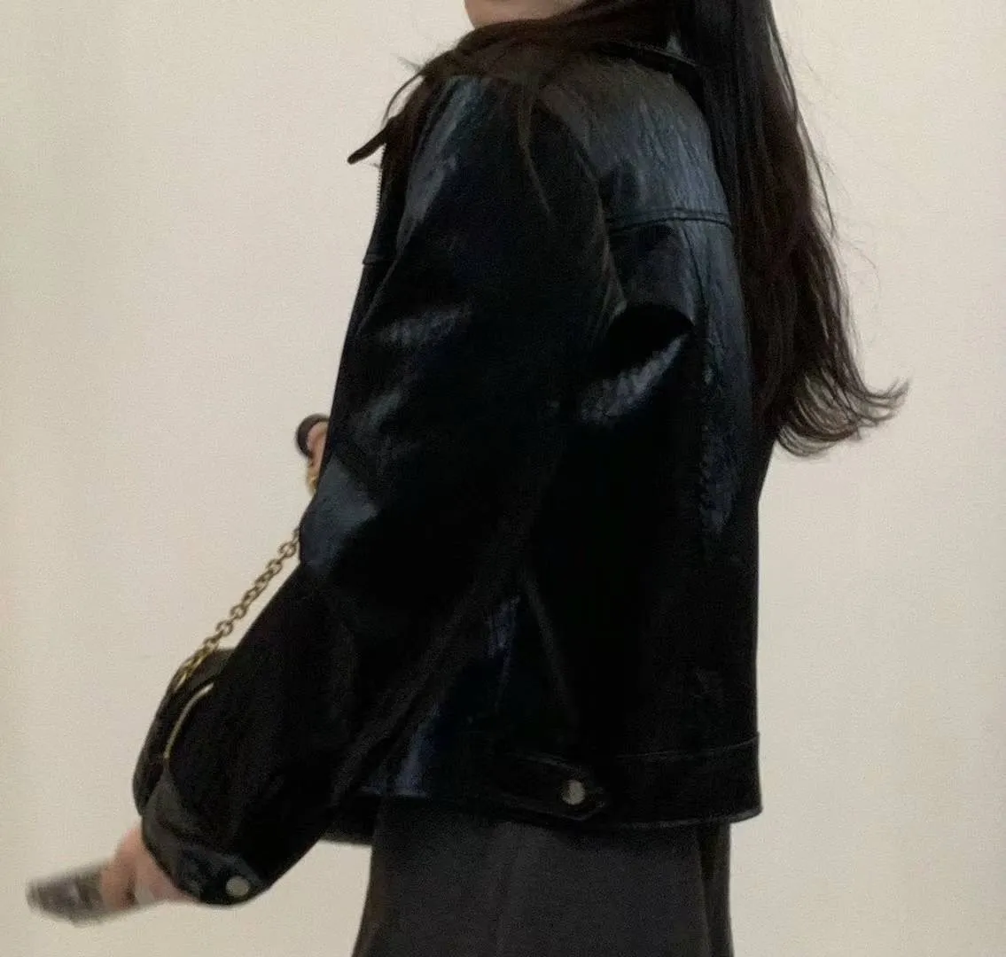 合成皮革+人造絲 古銅拉鍊穿脫 光澤感 無墊肩有內裡有口袋