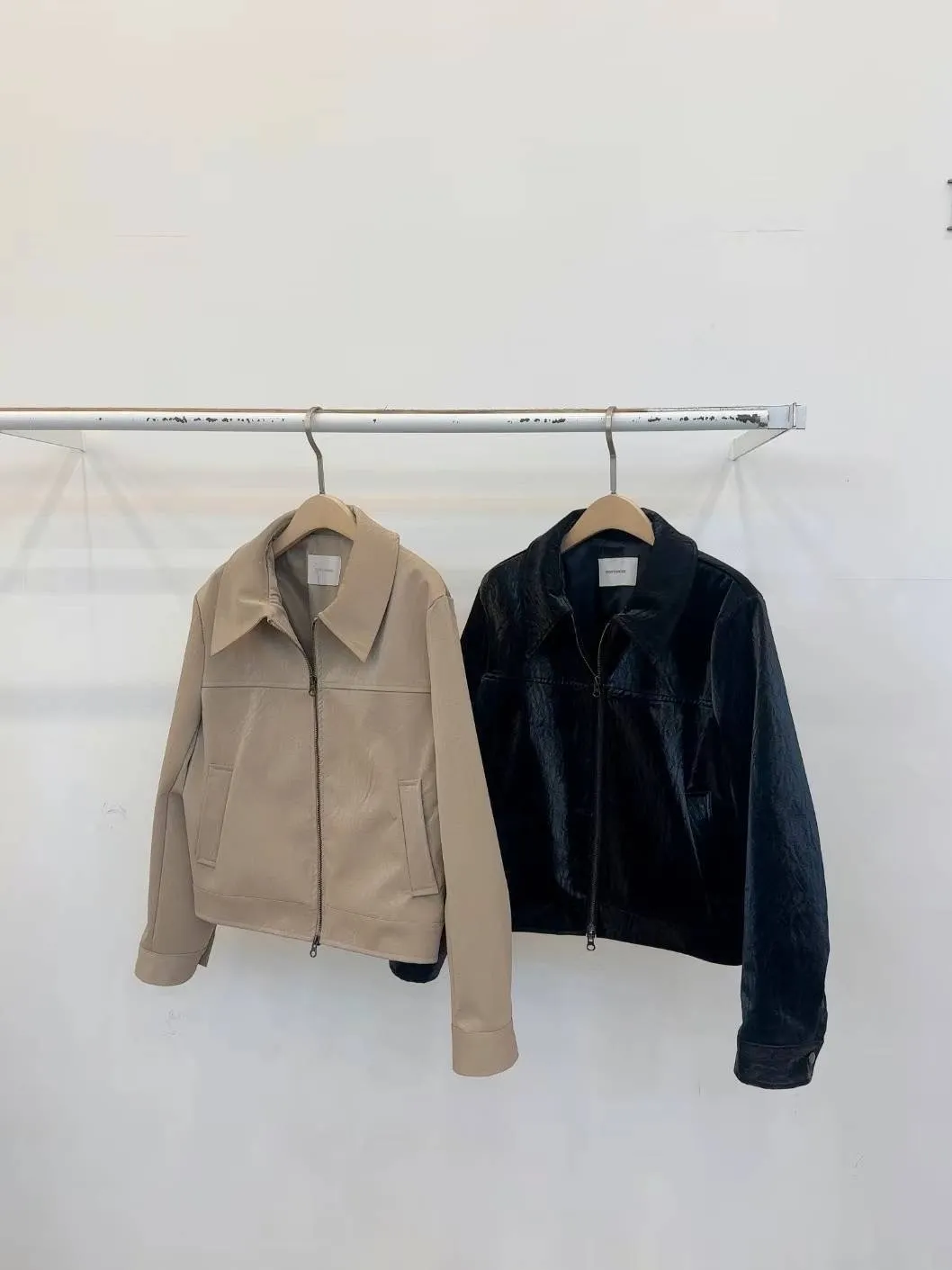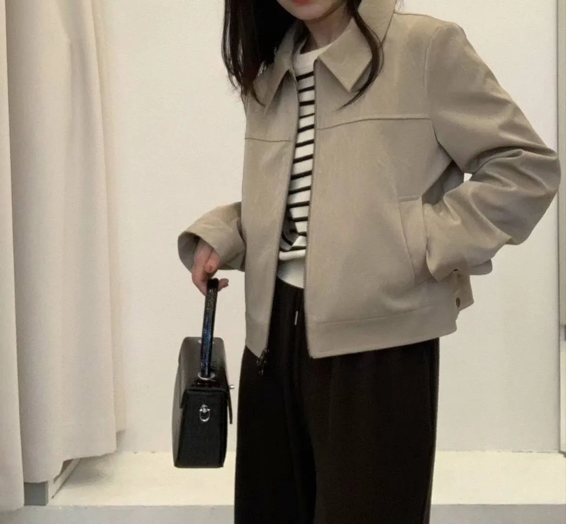 LV1142細緻仿鹿絨皮革外套 黑 奶茶 官網價$1899 線上價$1869