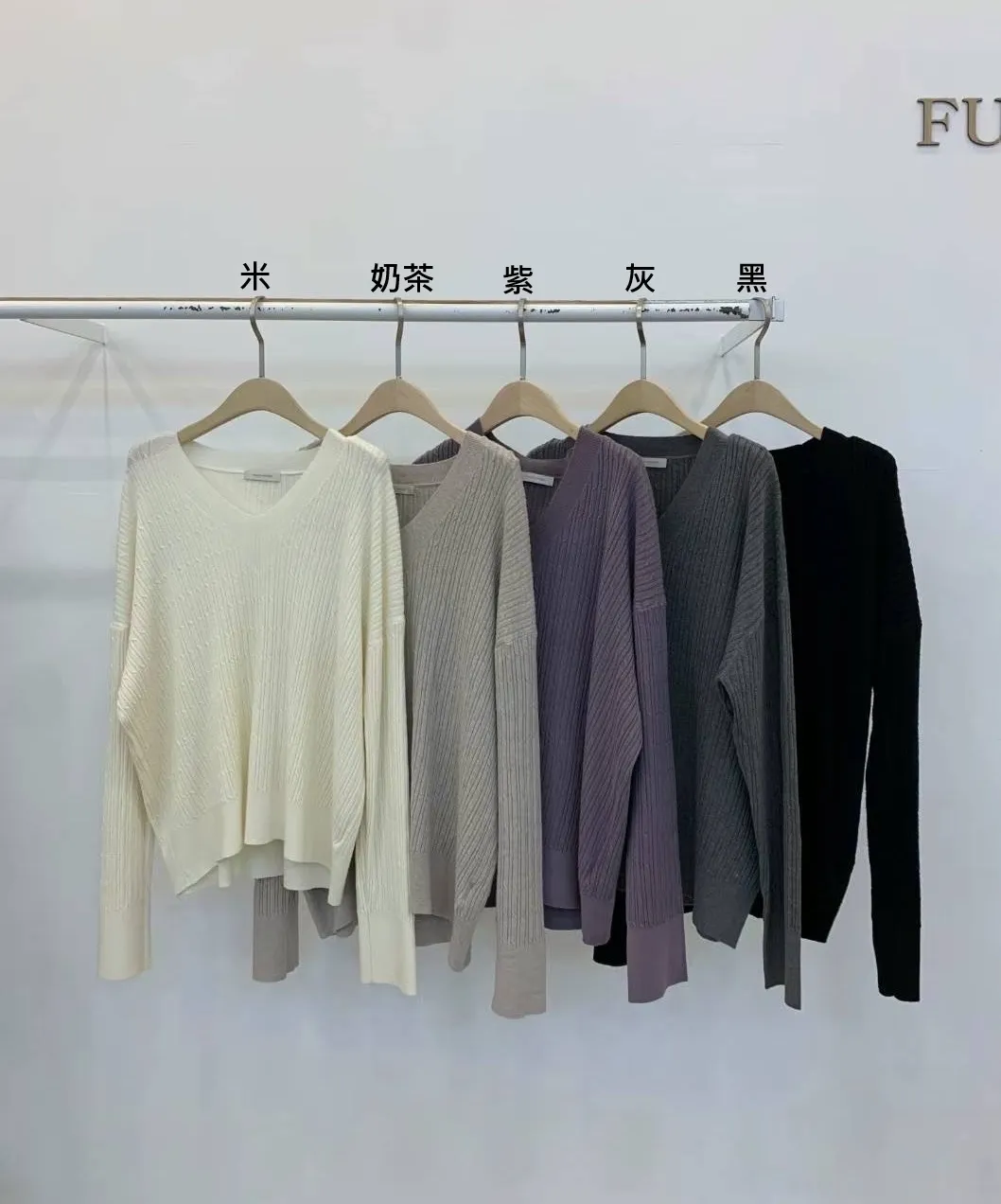 LV1145羊絨V領針織上衣 米 灰 紫 黑 奶茶 官網價$890 線上價$860