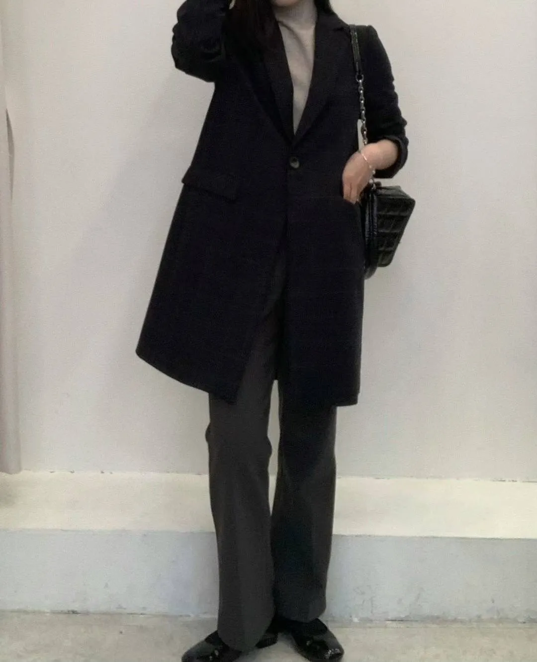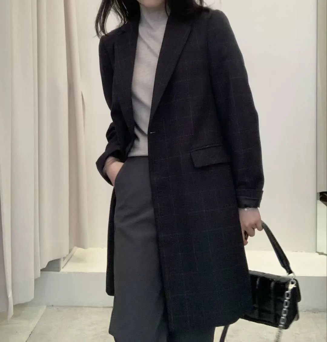 羊毛20%+聚酯 有內裡 長版西裝外套 雙口袋 單釦穿脫 後開叉