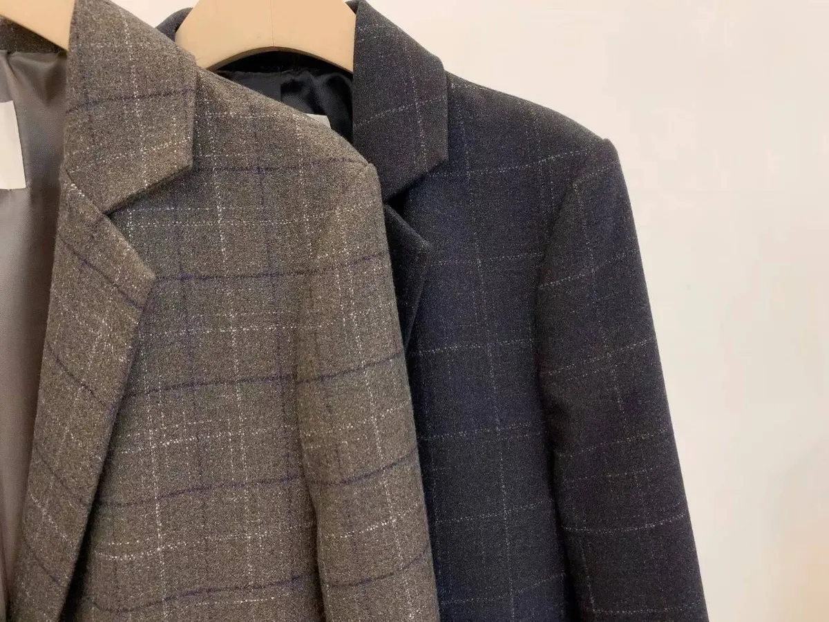LV1148翻領格紋薄款羊毛西裝外套 咖 黑藍 官網價$1890 線上價$1860
