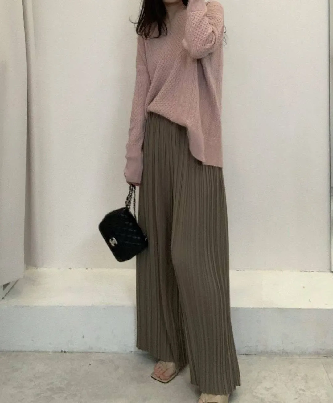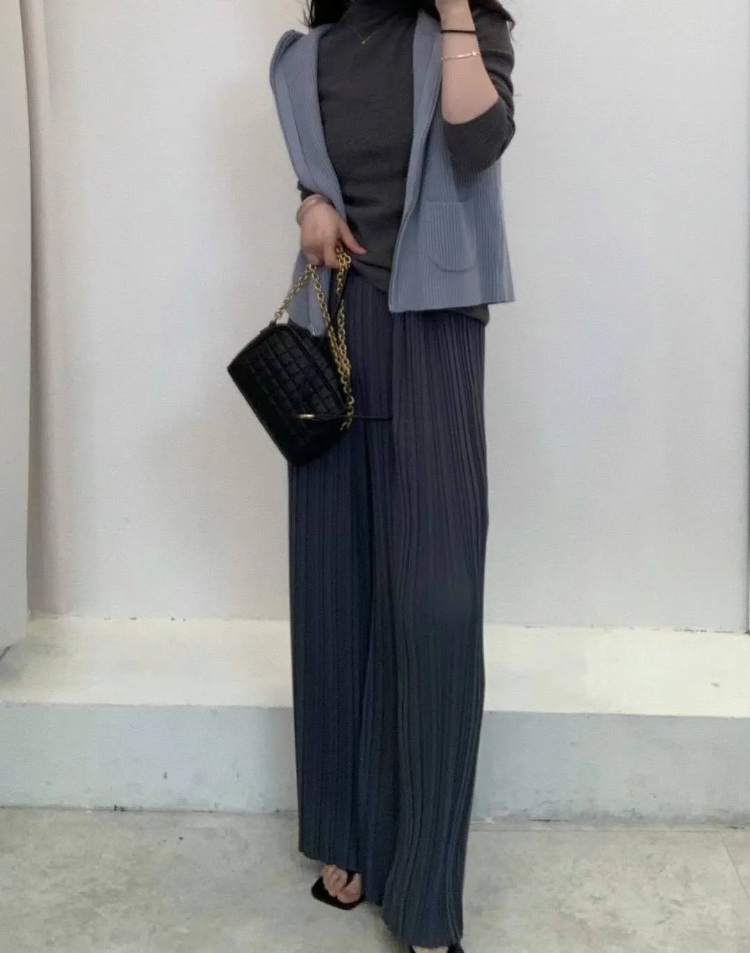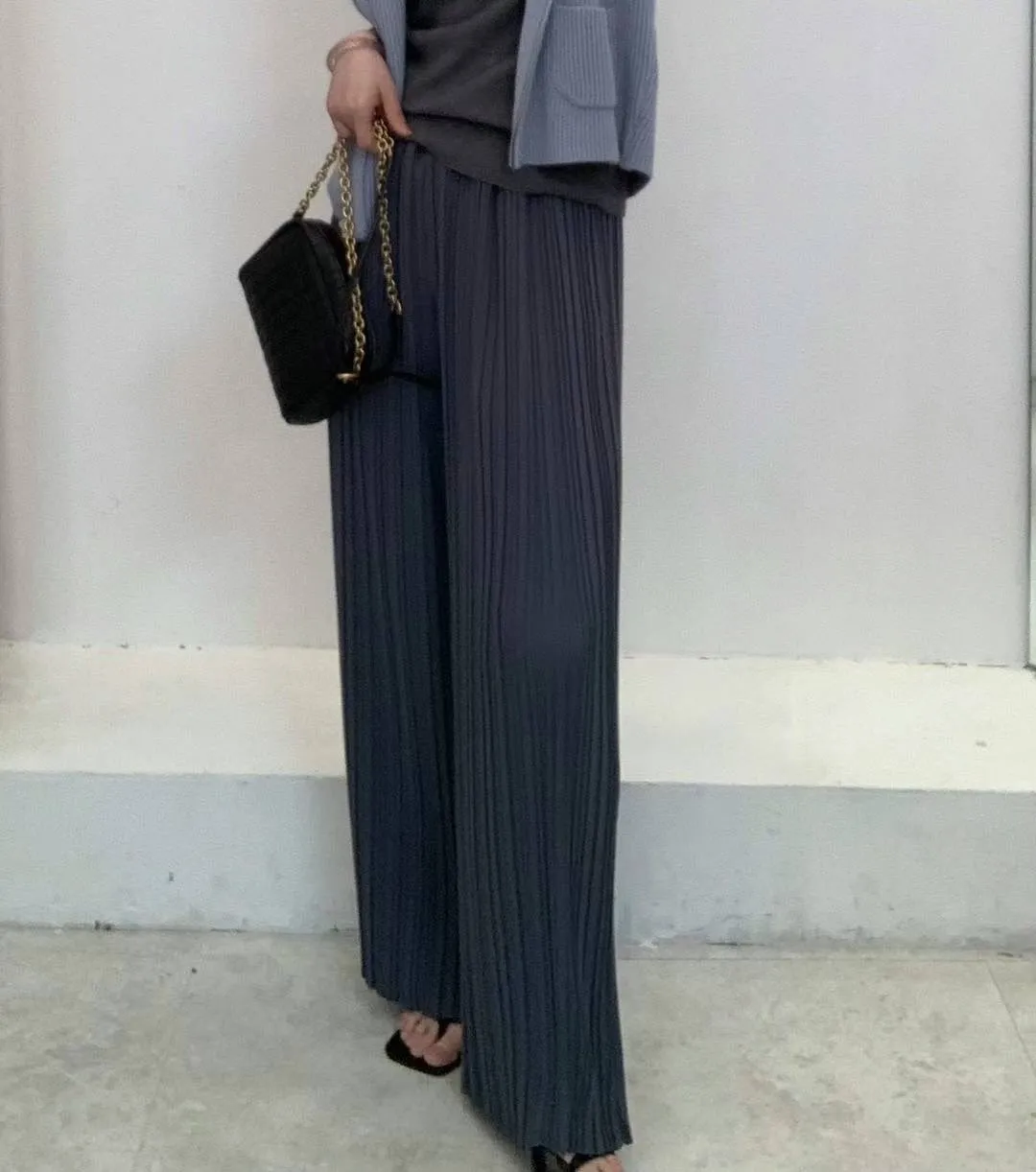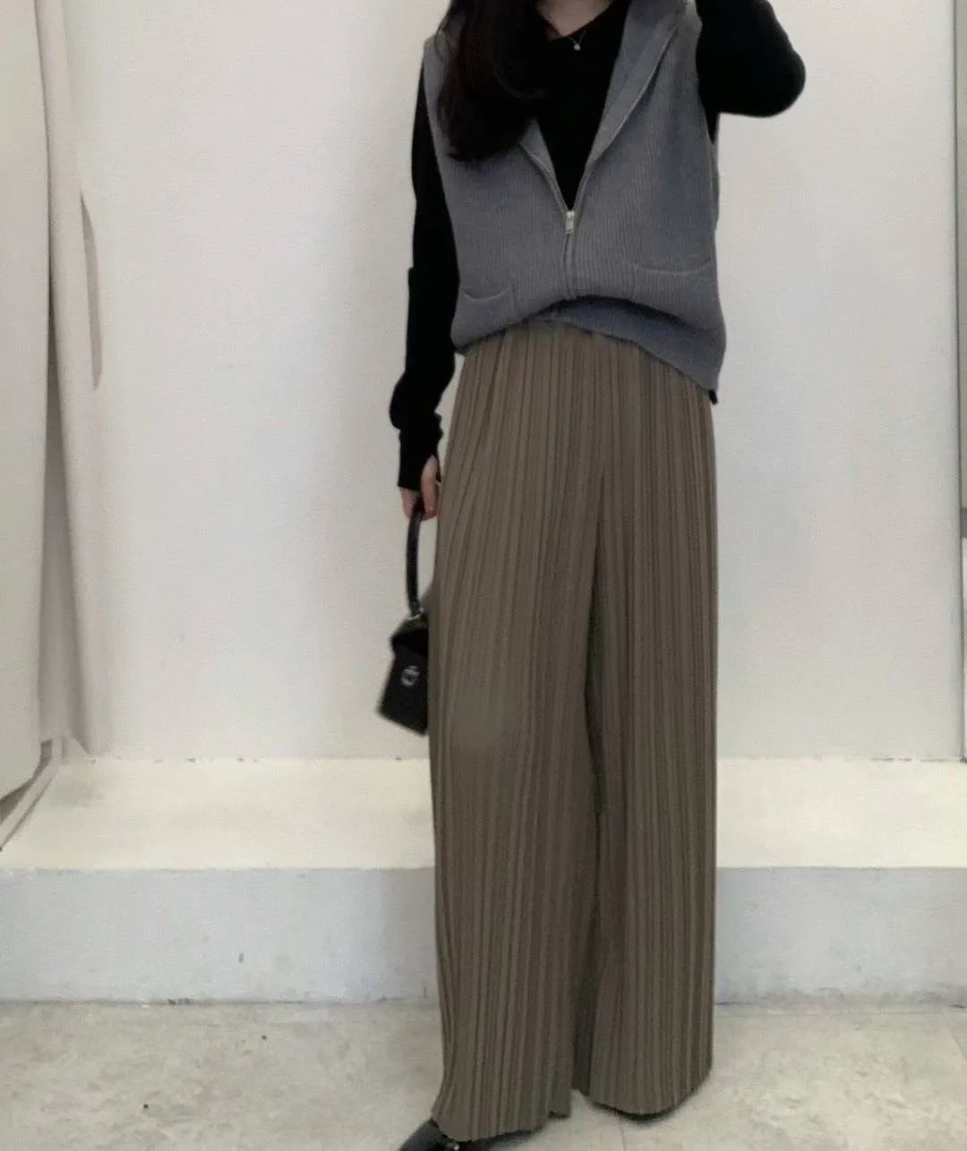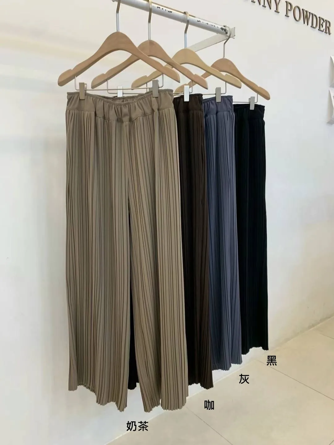 LV1149雪紡細百摺垂墜長褲 灰 咖 黑 奶茶 官網價$1399 線上價$1369