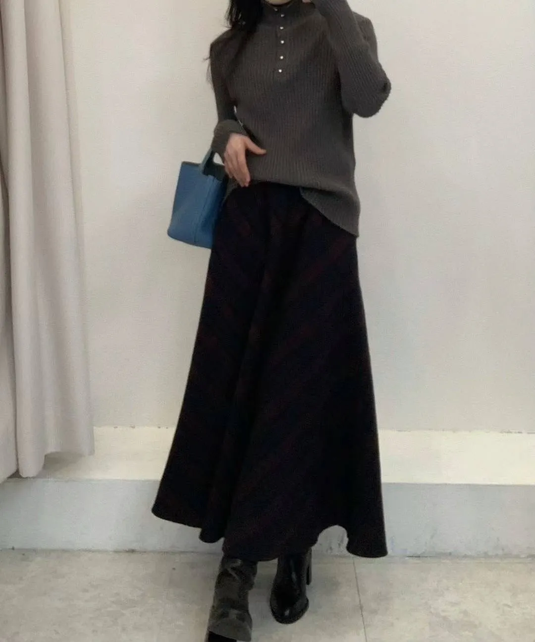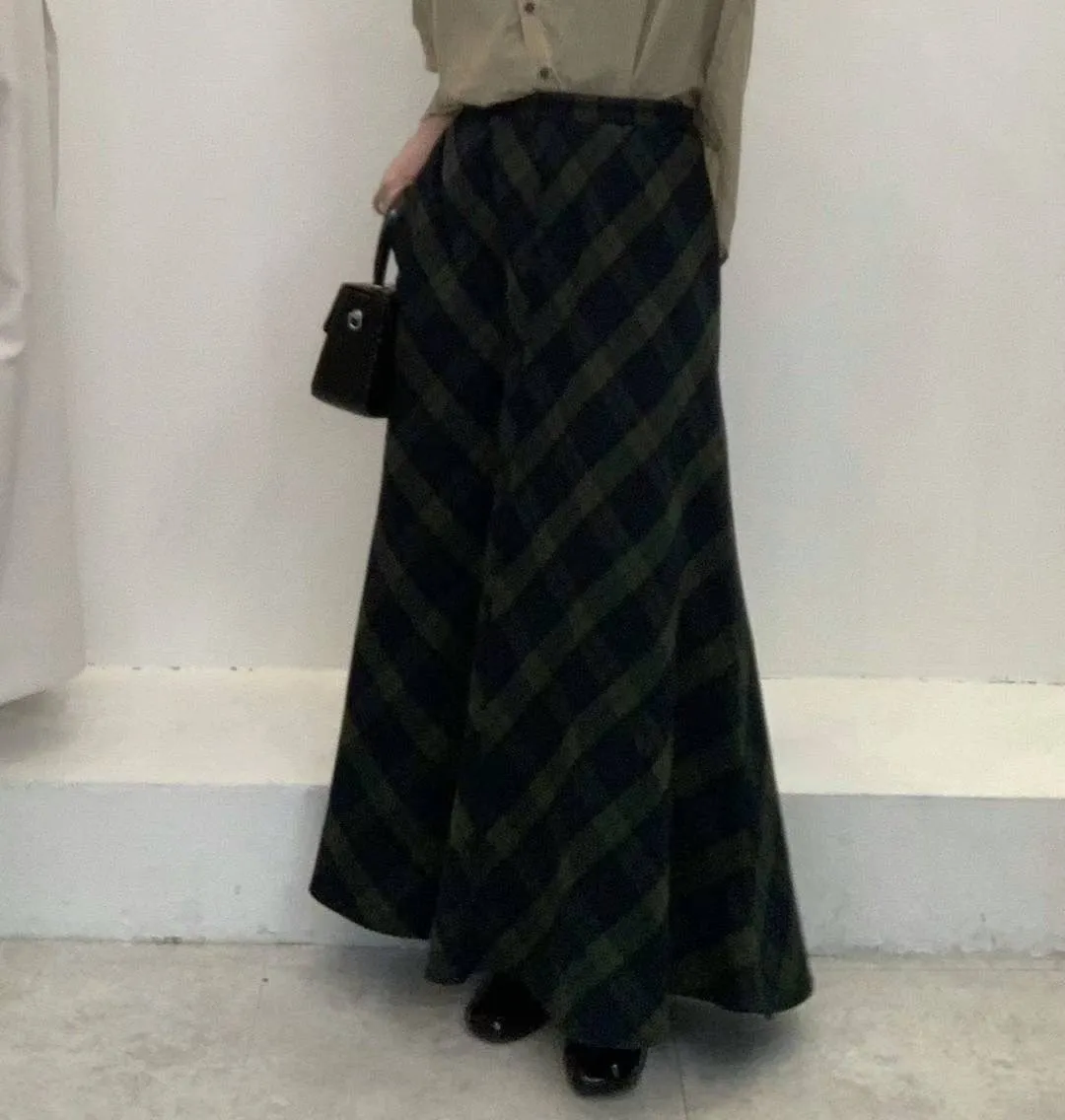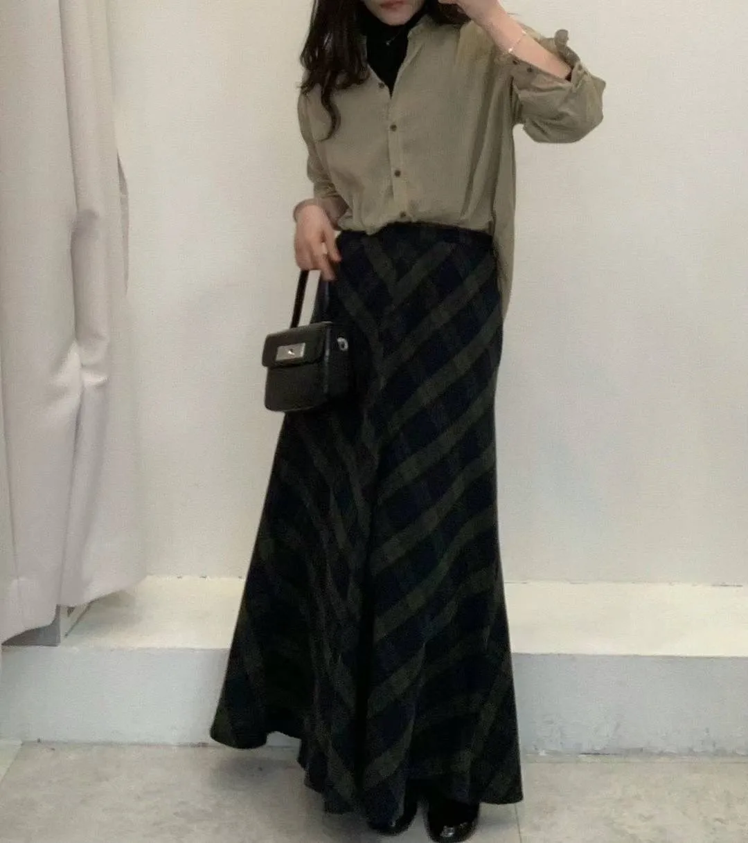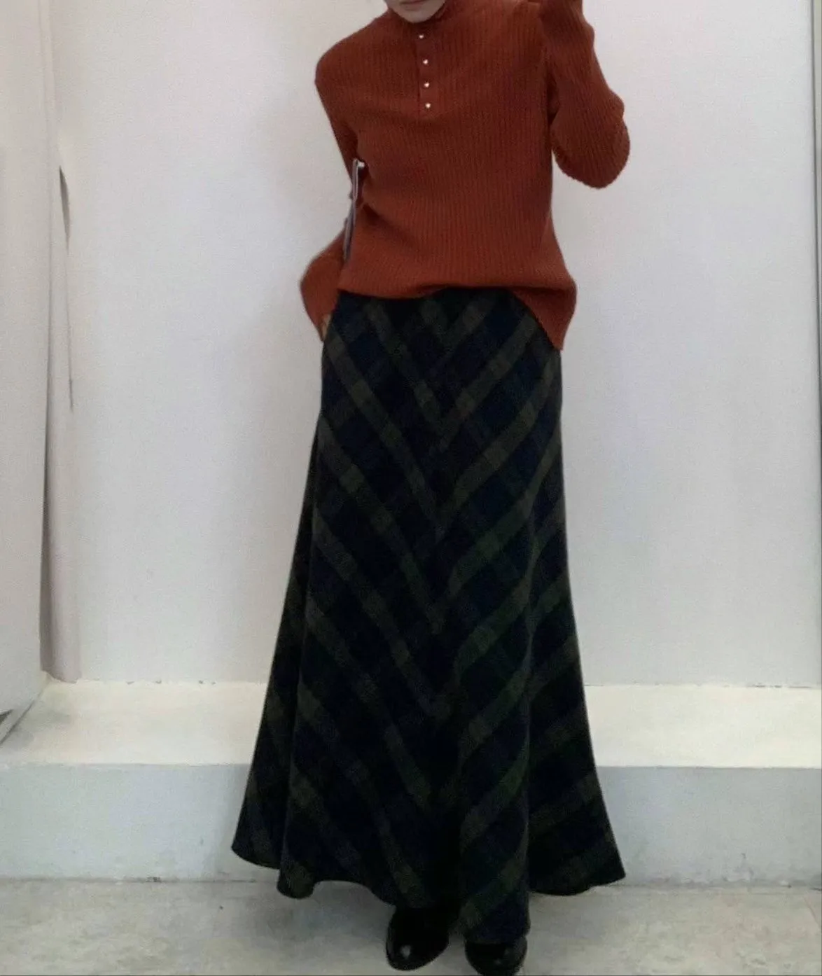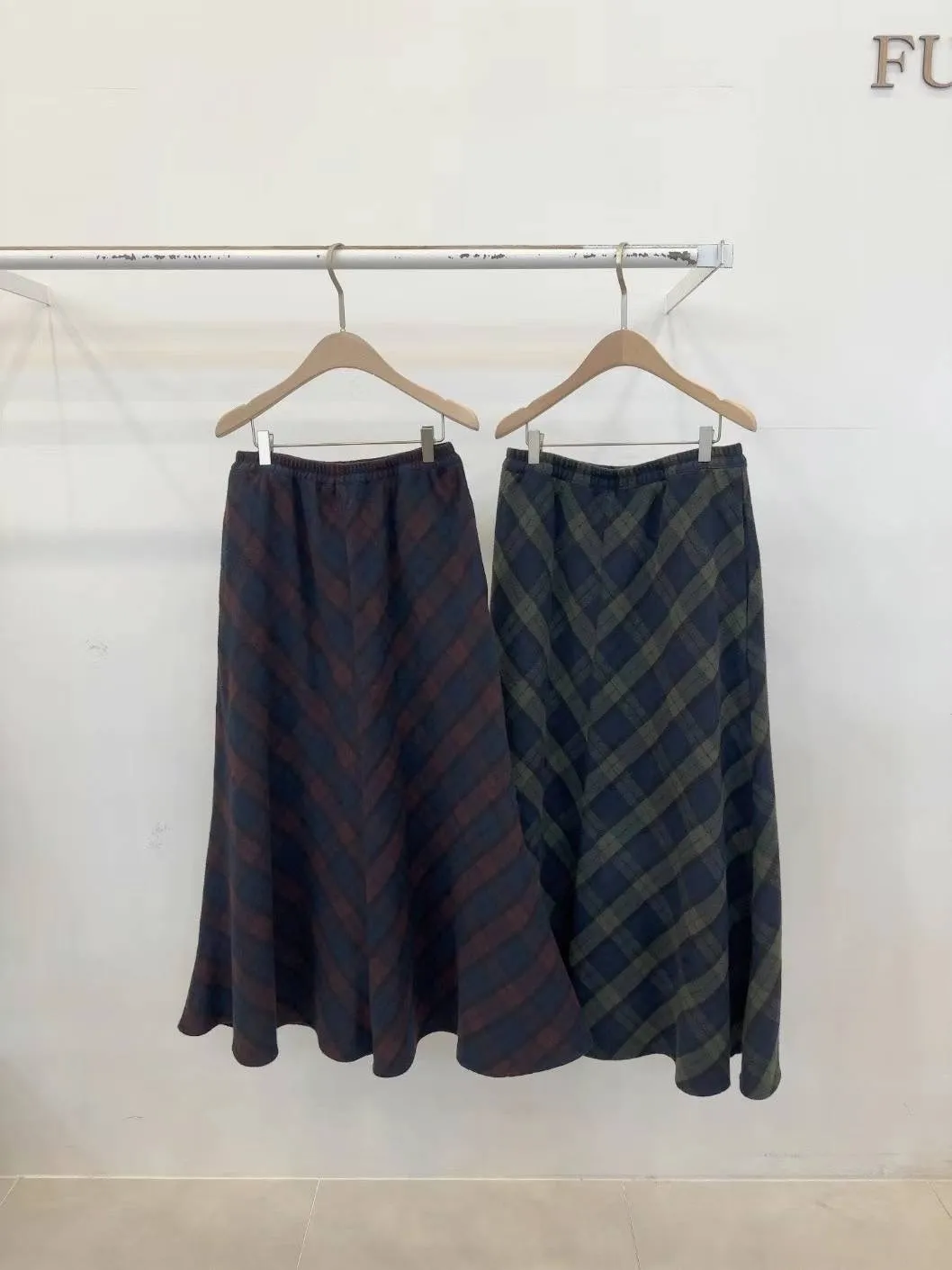 LV1153質感傘擺格紋長裙 綠 咖 官網價$1170 線上價$1140