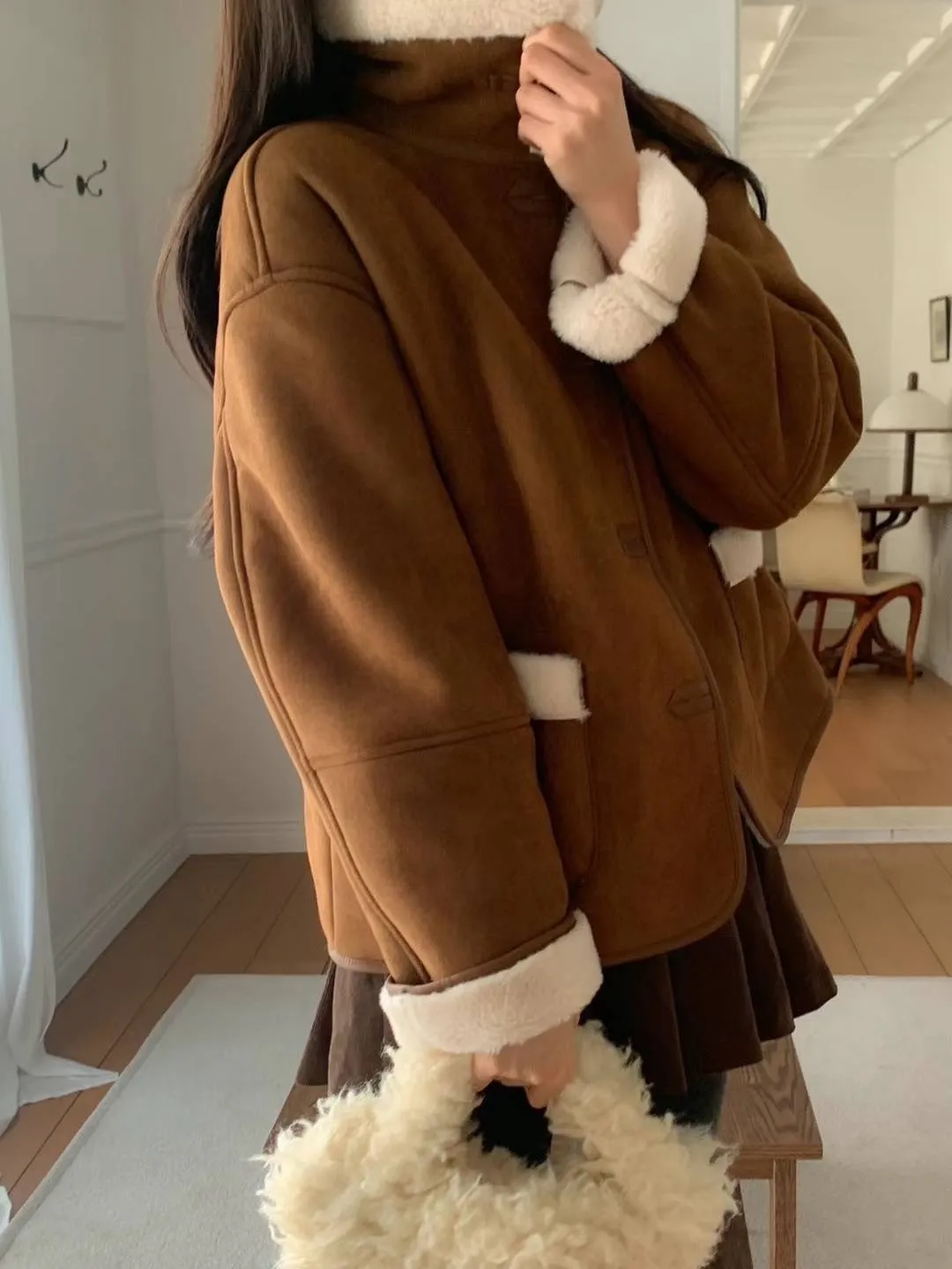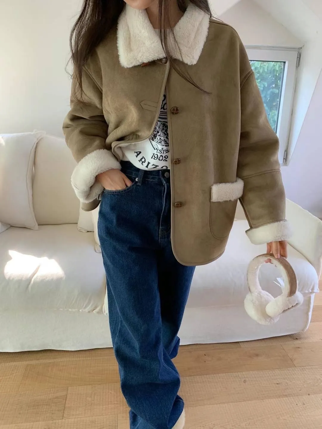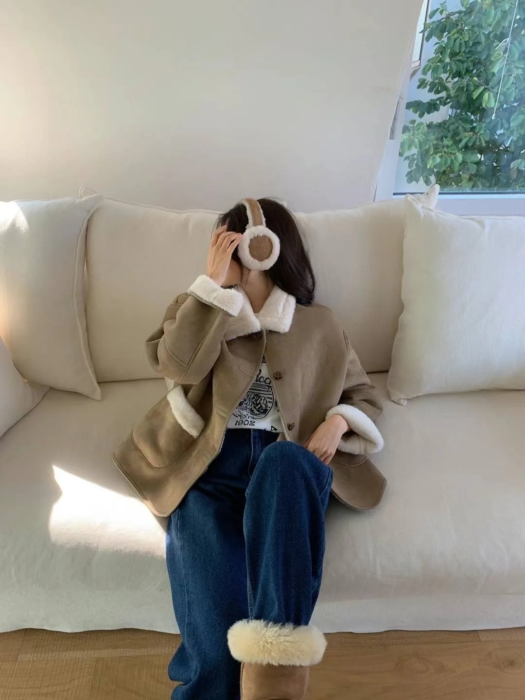 聚酯 一面麂皮一面QQ毛 有口袋 穿到L號