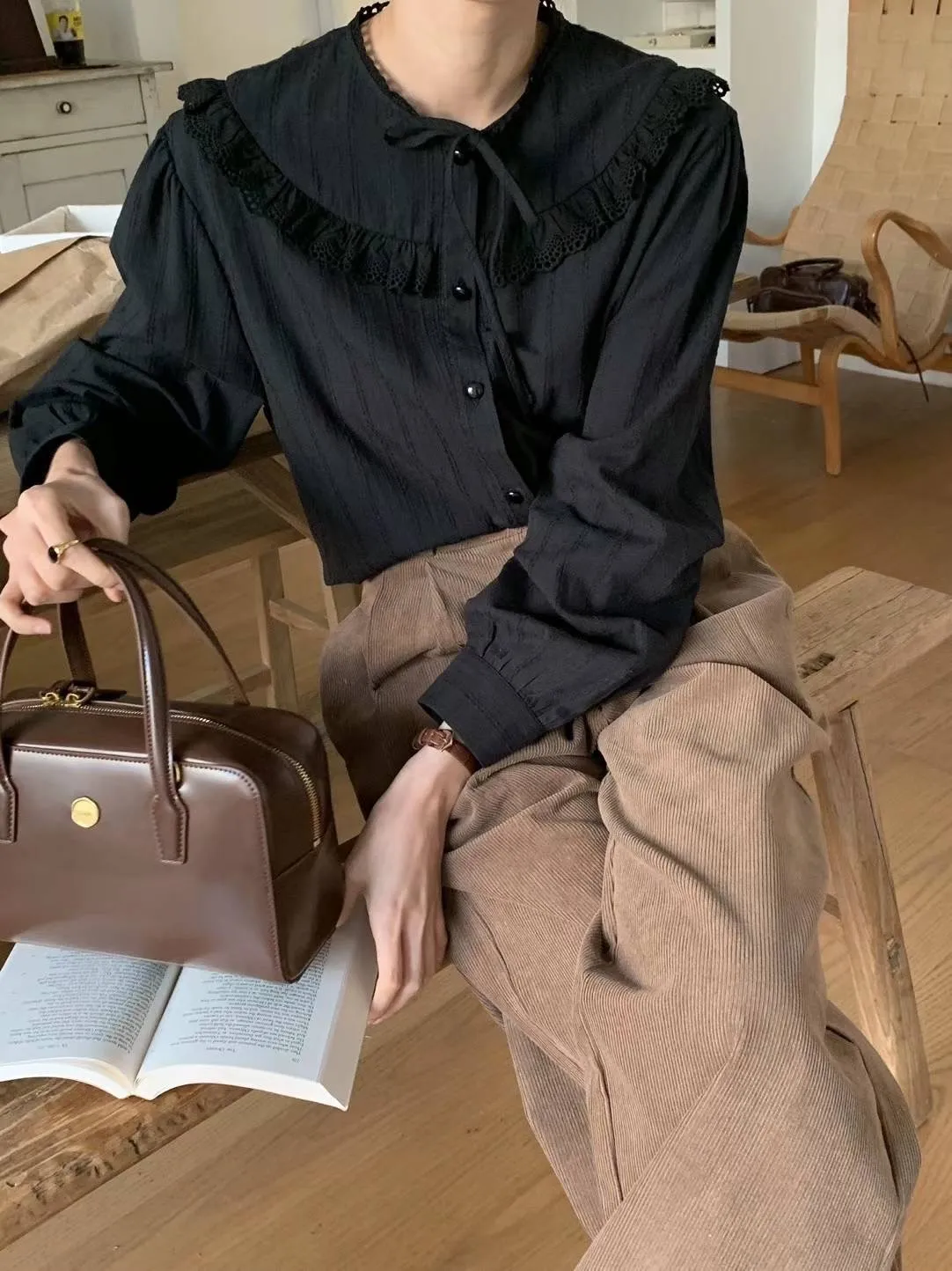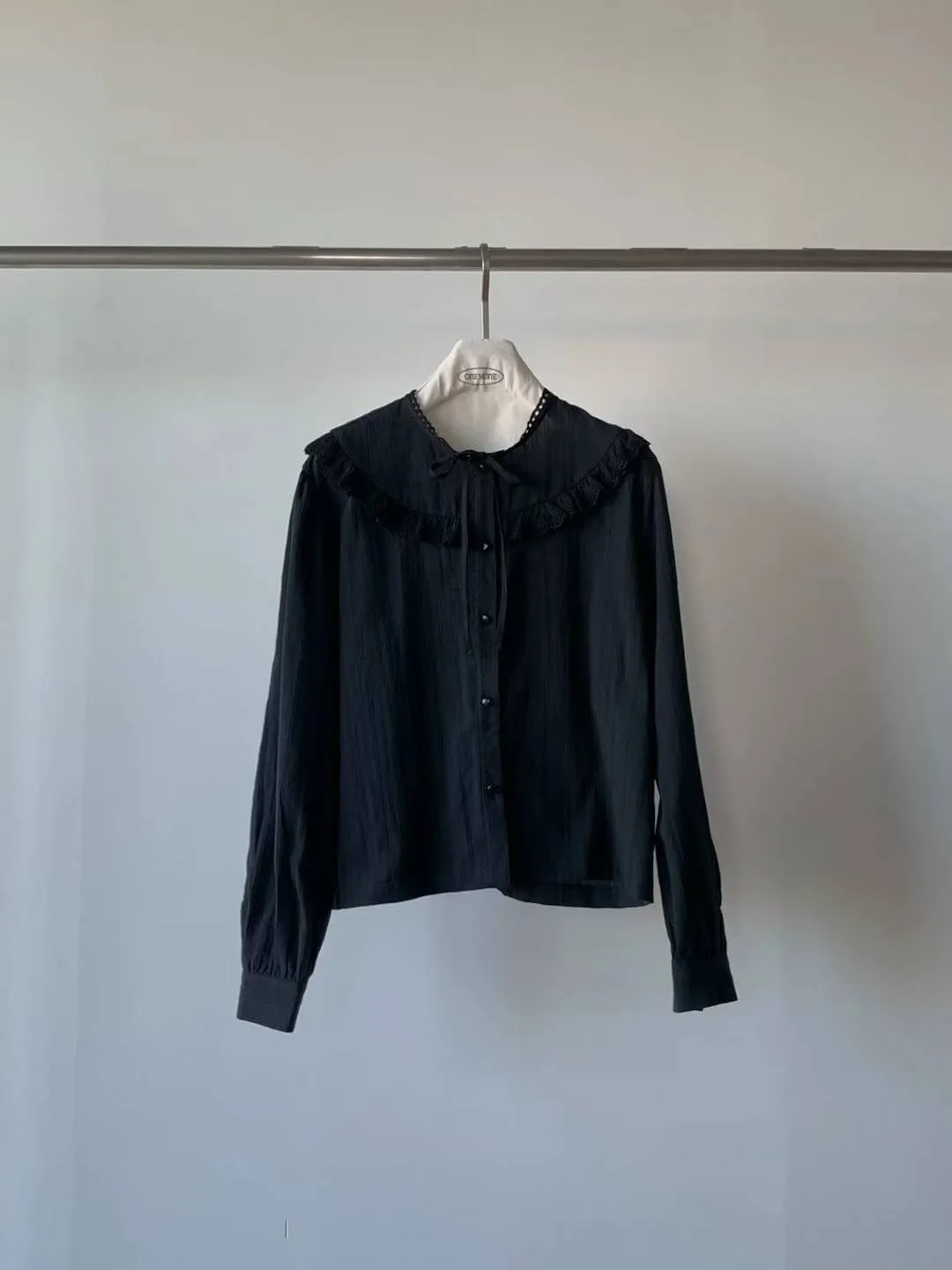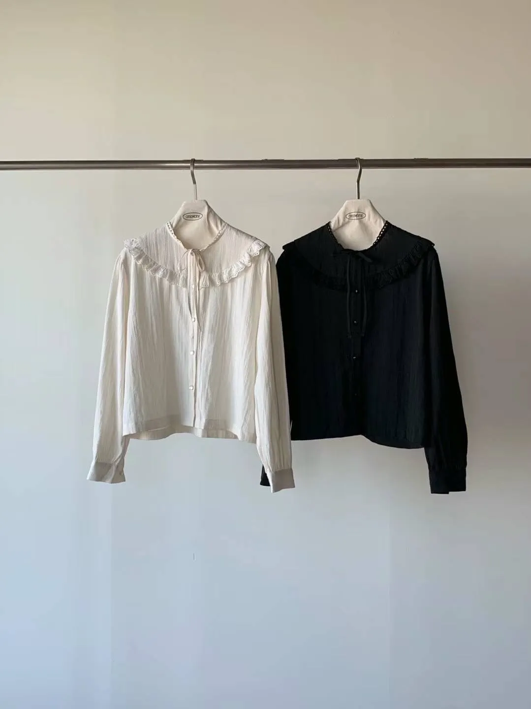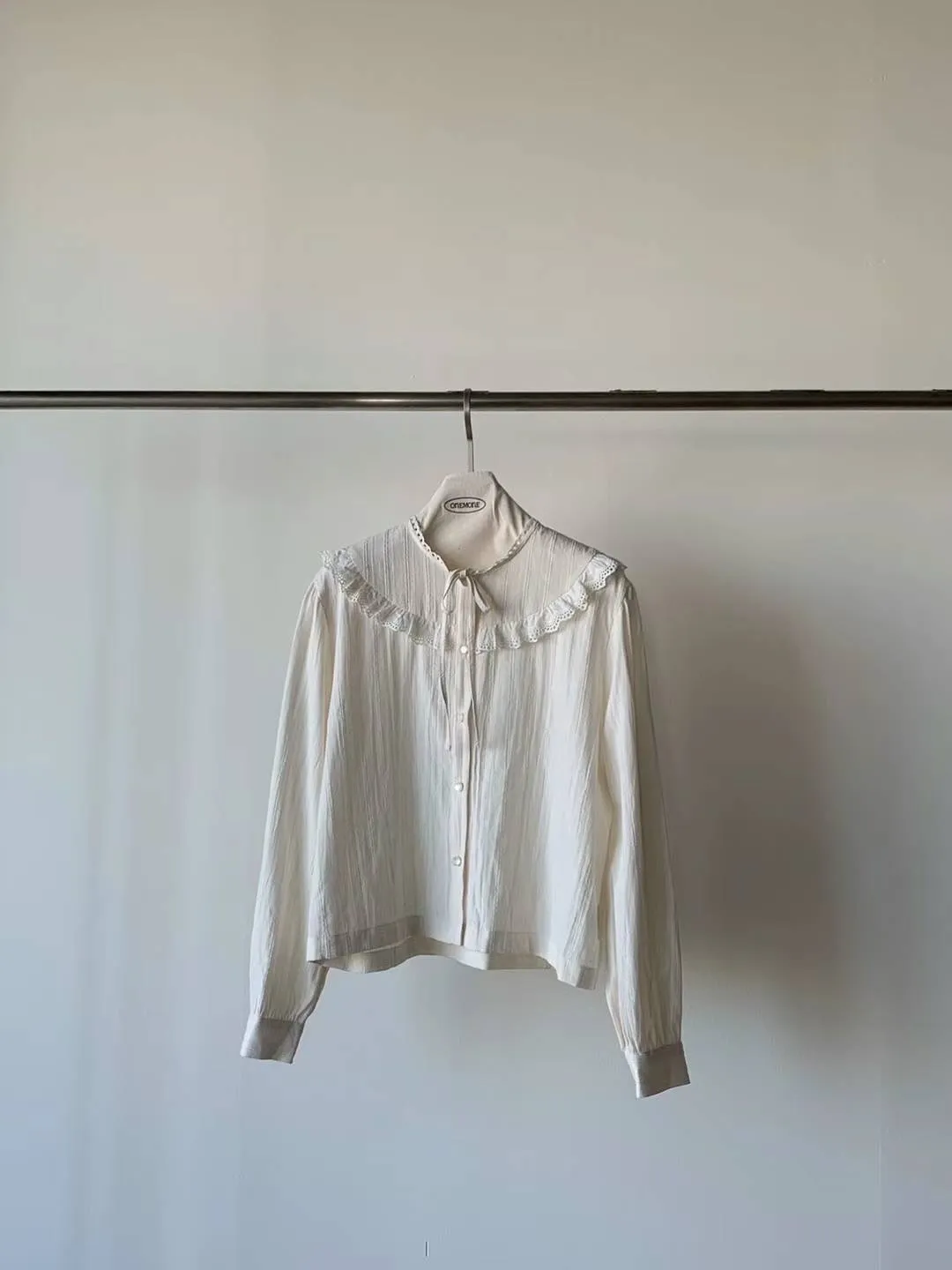 棉,典雅反光釦 袖口有釦 蕾絲翻領滾邊 精緻立體面料 薄款透氣