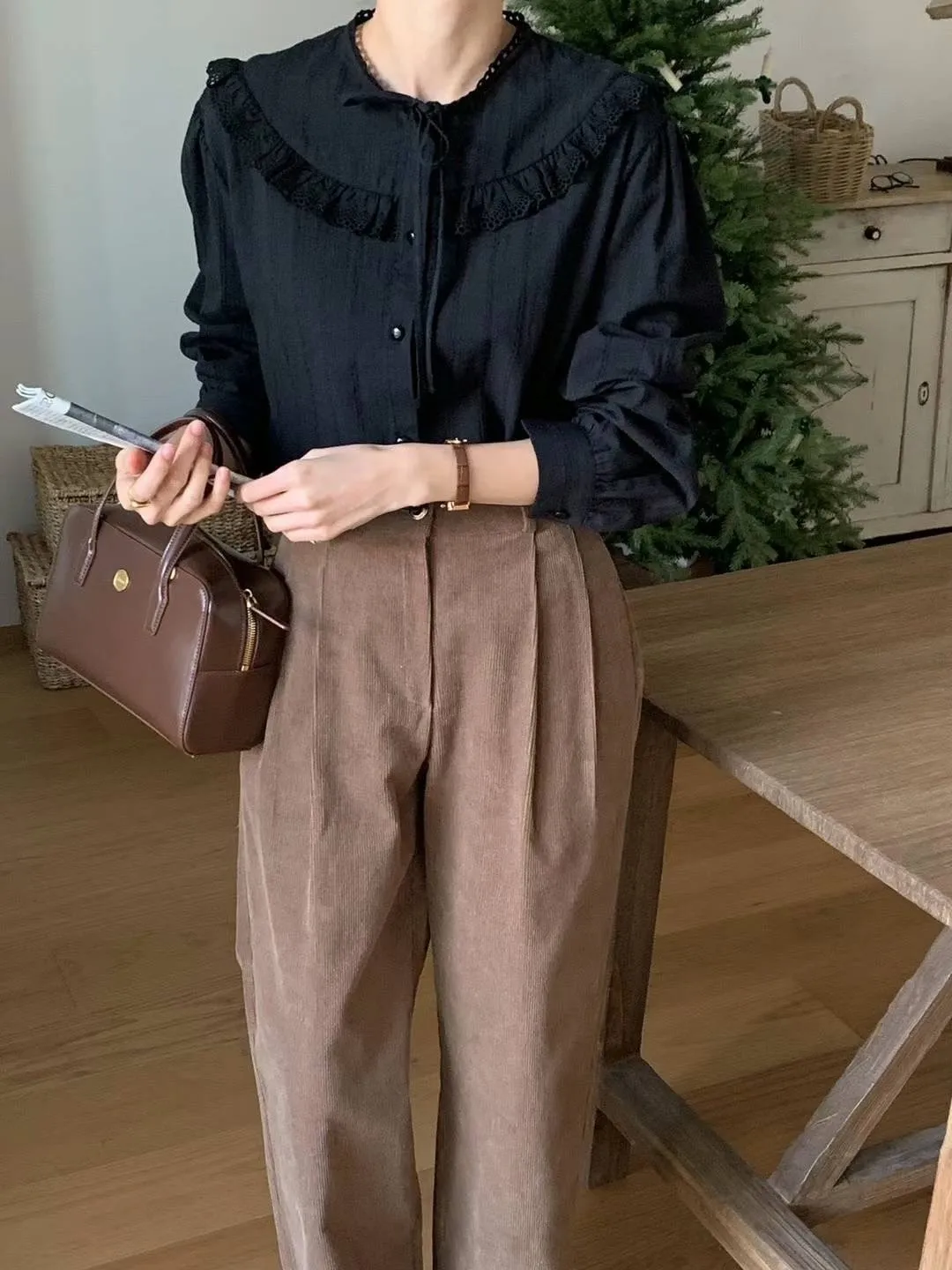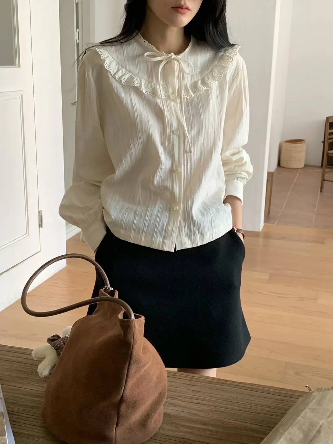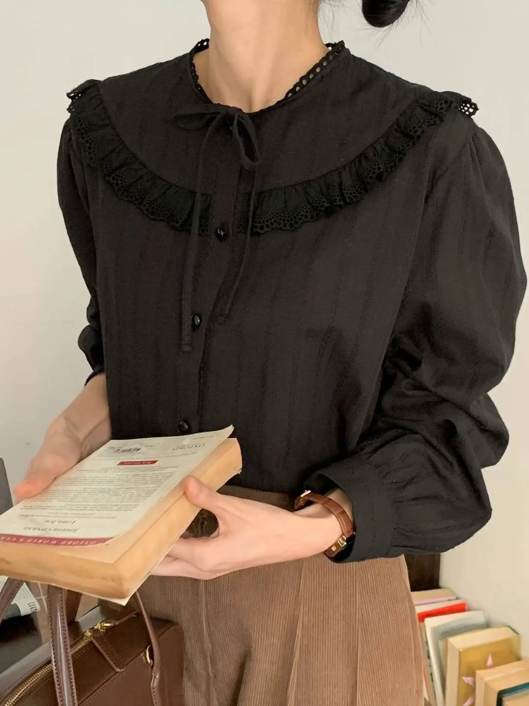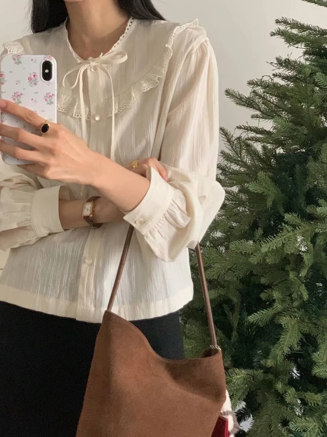 棉,典雅反光釦 袖口有釦 蕾絲翻領滾邊 精緻立體面料 薄款透氣