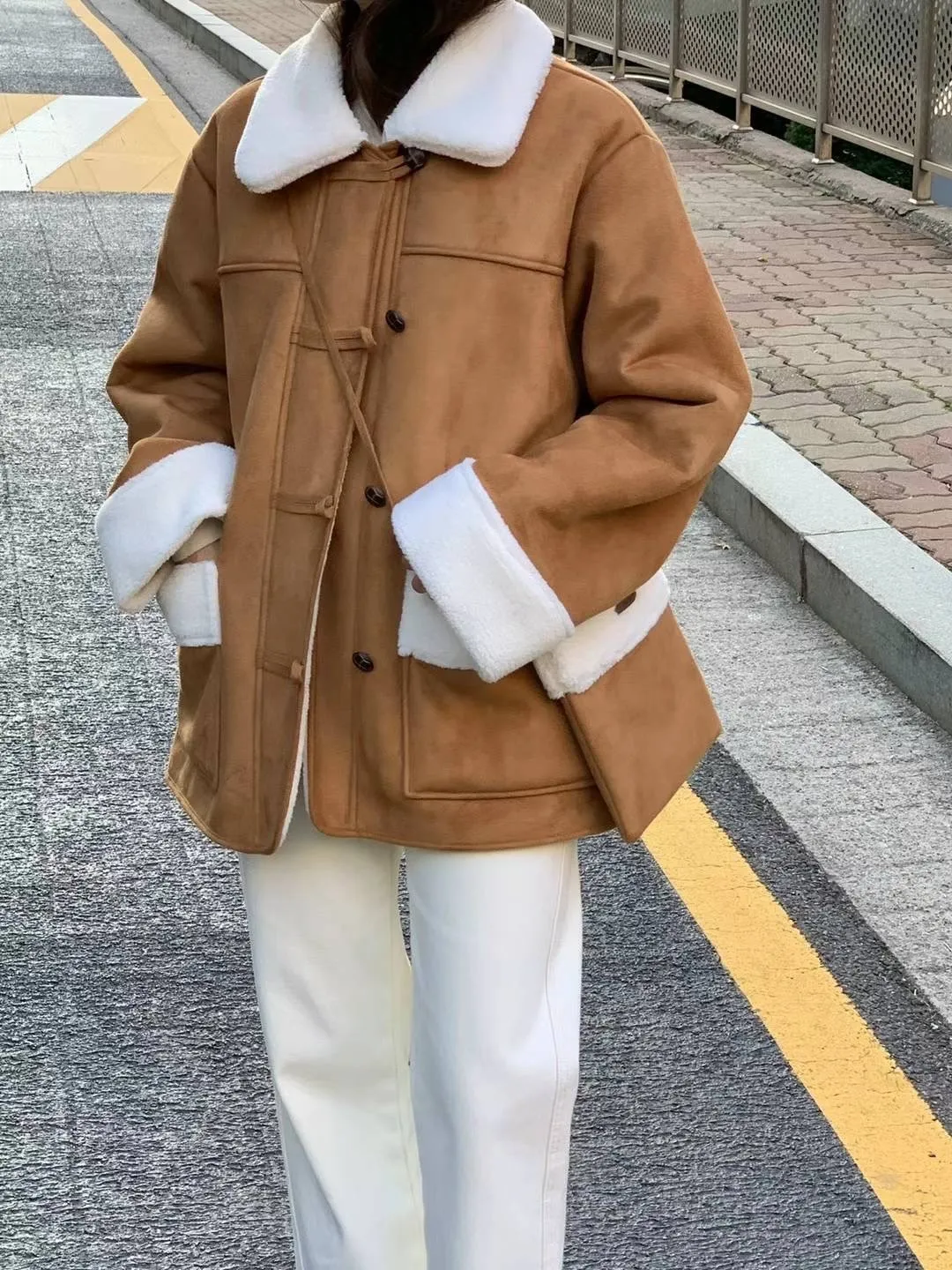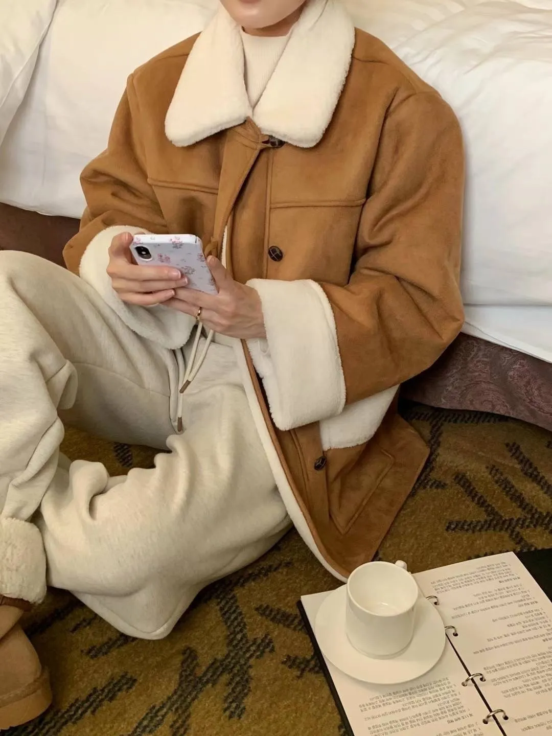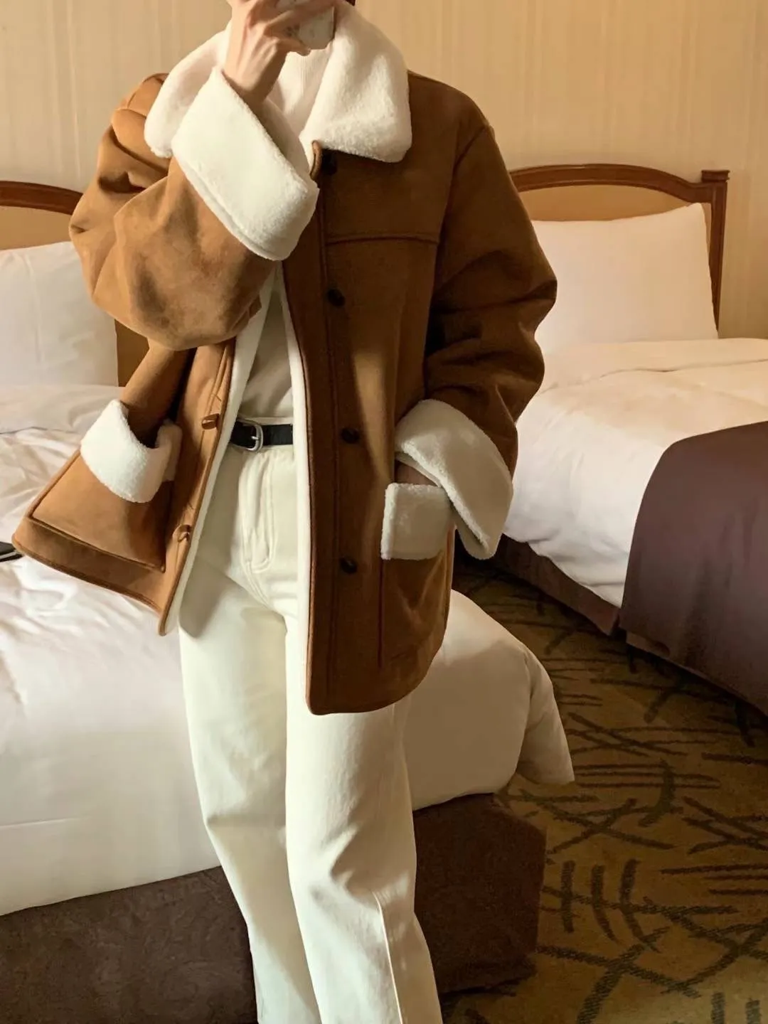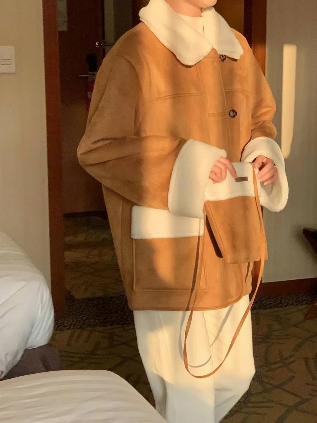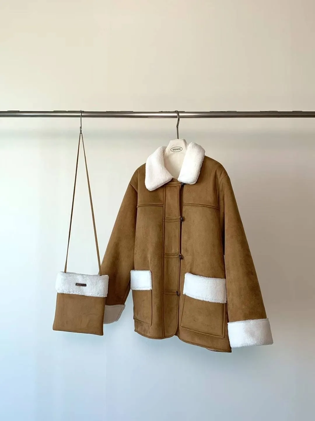 LV123跳色羊羔毛白白麂皮套裝(外套+包包) 官網價$3029 線上價$2999