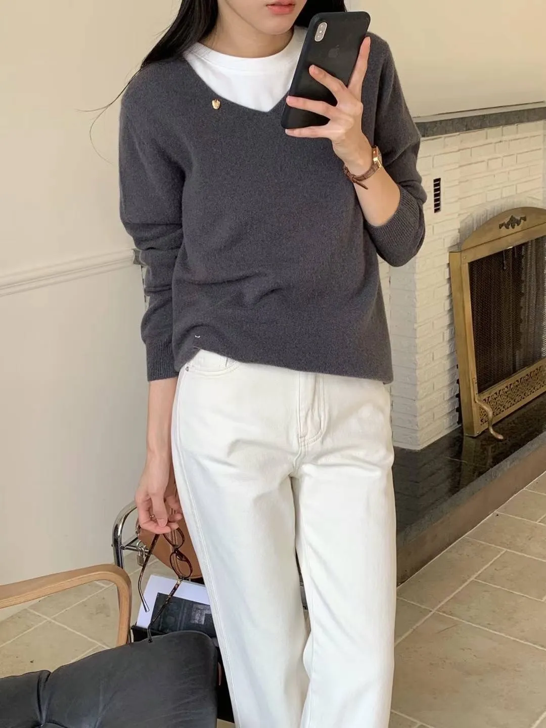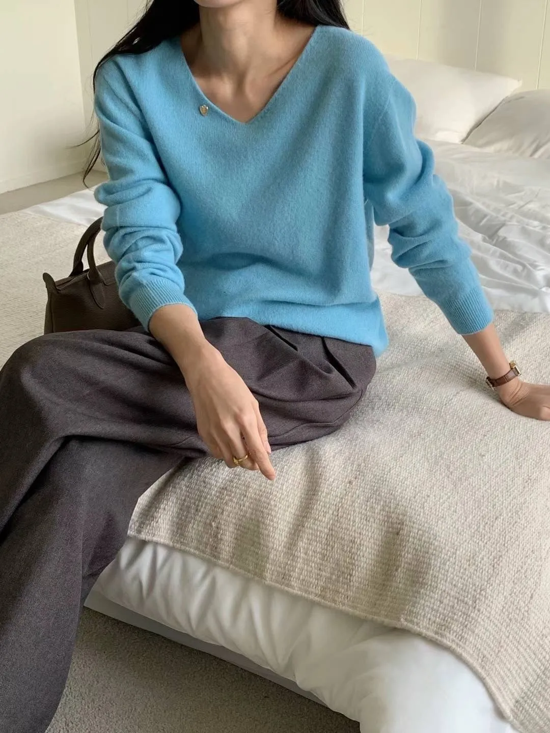 羊毛100%,V領顯瘦 2號斷貨