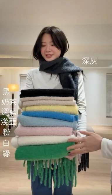 LV1253新款QQ羊毛9色圍巾 白 綠 粉 淺藍 黃 深藍 深灰 奶茶 黑 官網價$820 線上價$780
