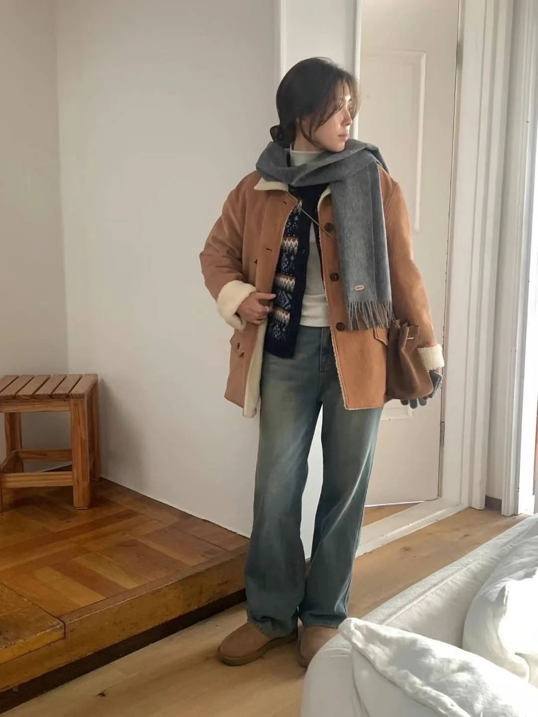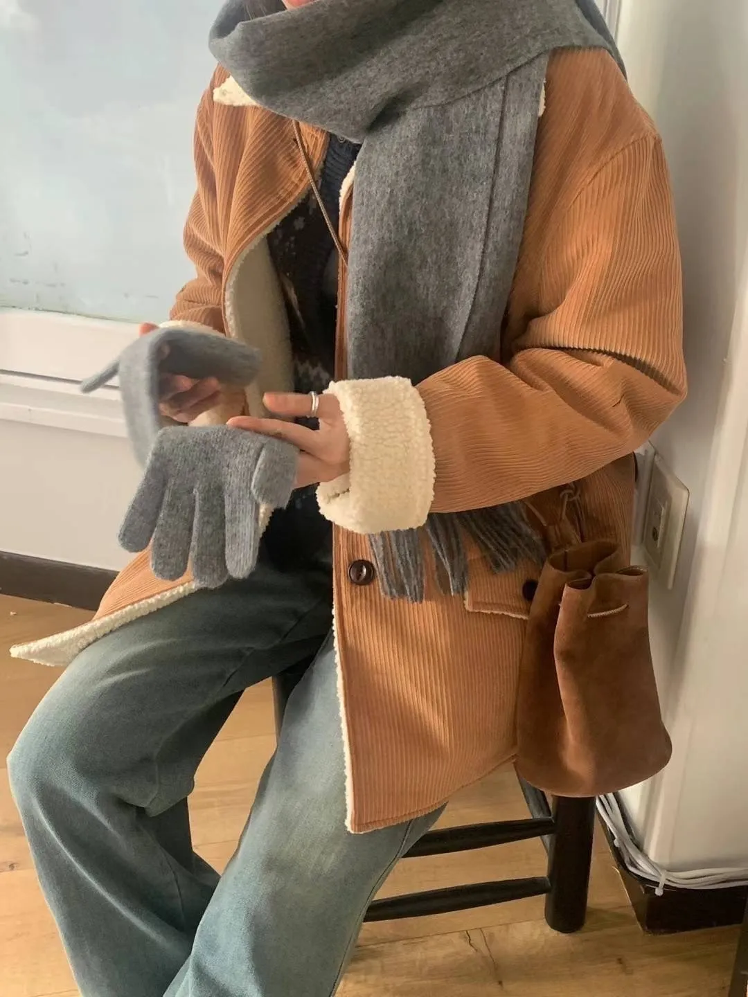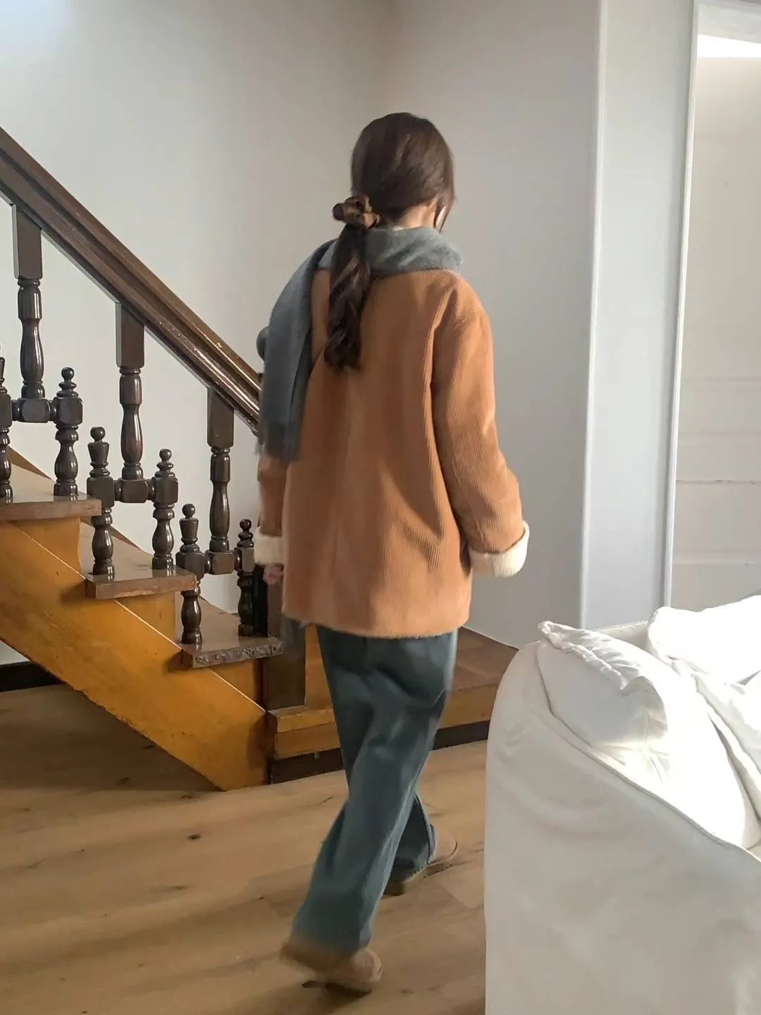 棉+聚酯 一層燈心絨 一層QQ毛 釦子穿脫 兩面穿 有口袋