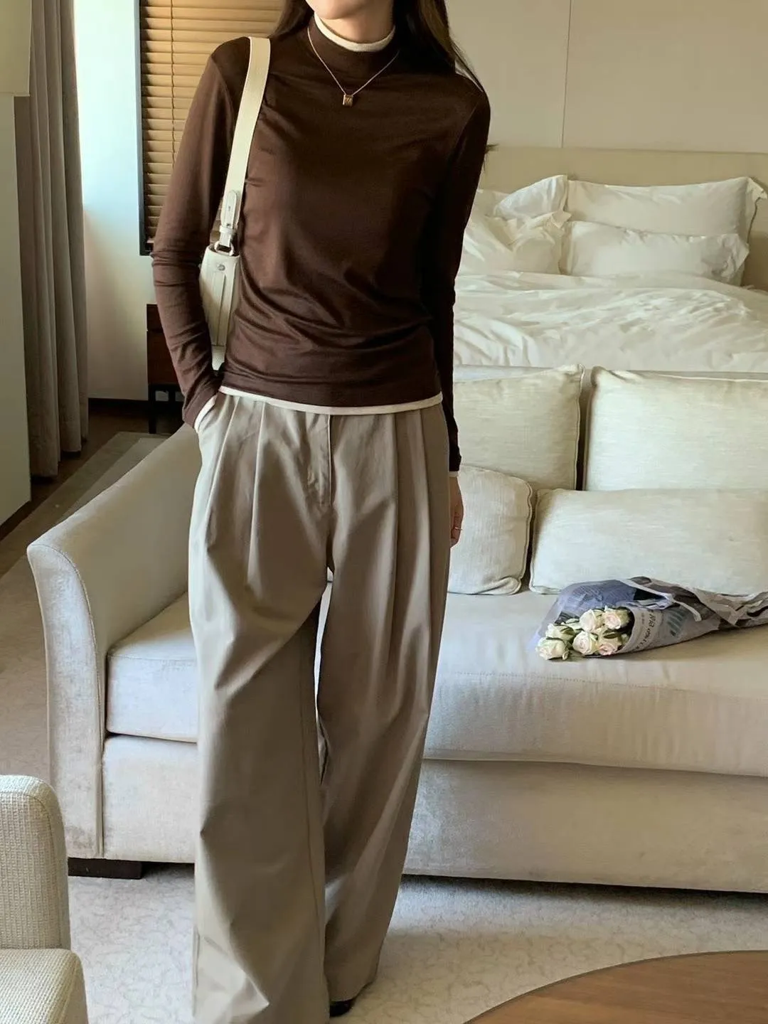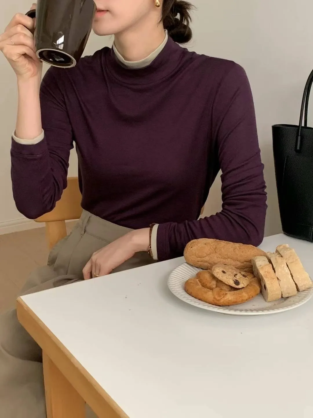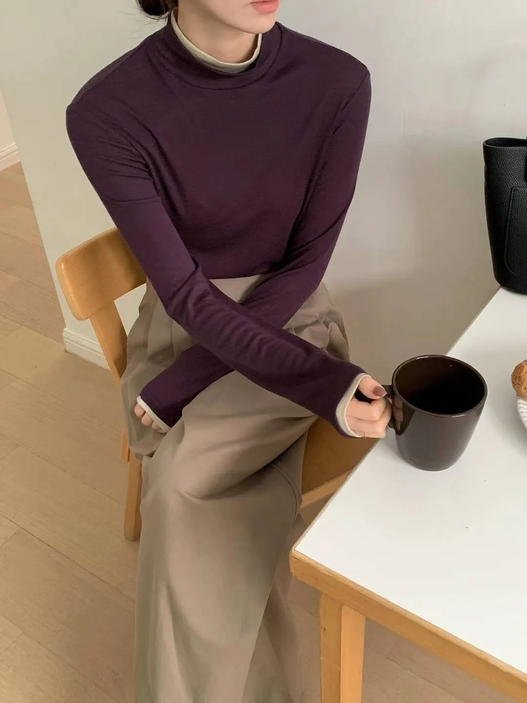 LV132天絲羊毛拼接5色上衣 灰 咖 紫 淺藍 深藍 官網價$680 線上價$650