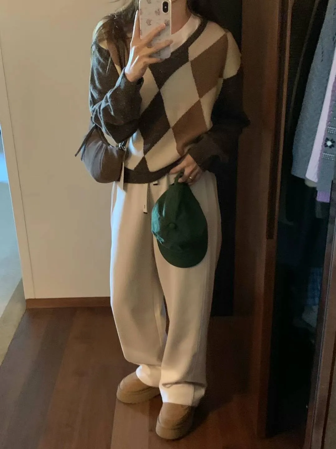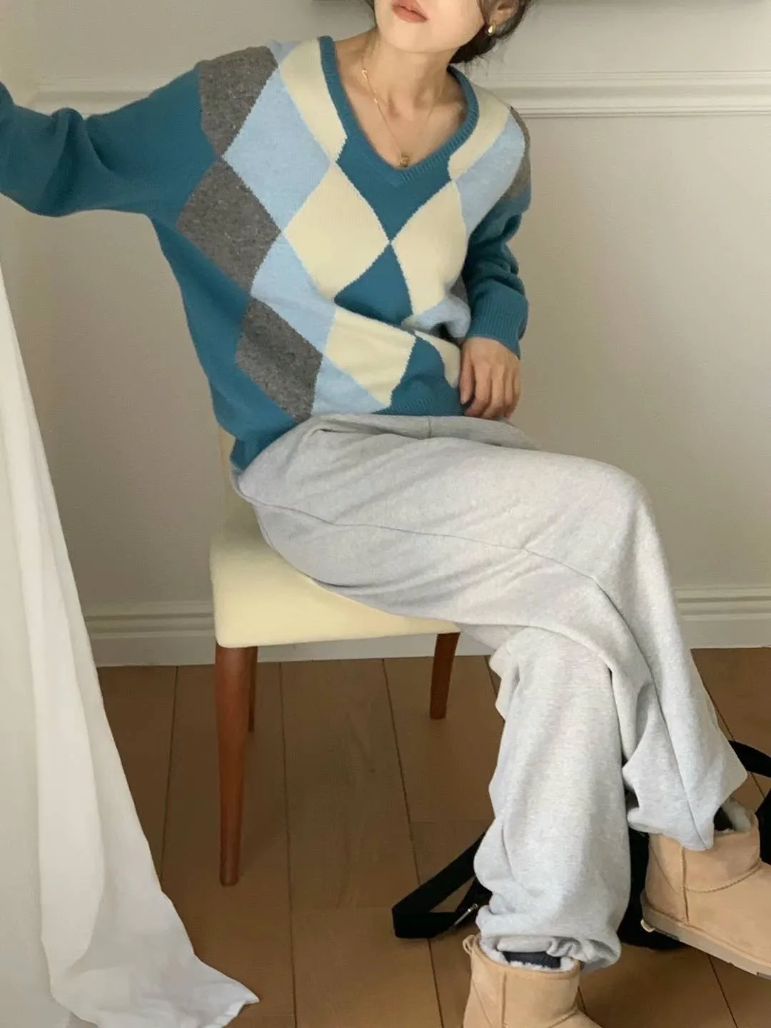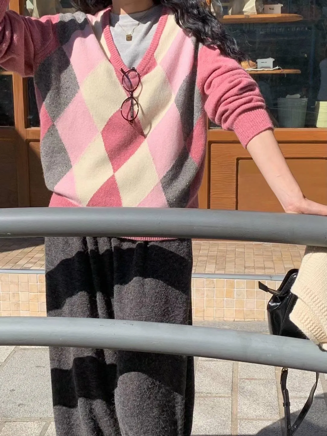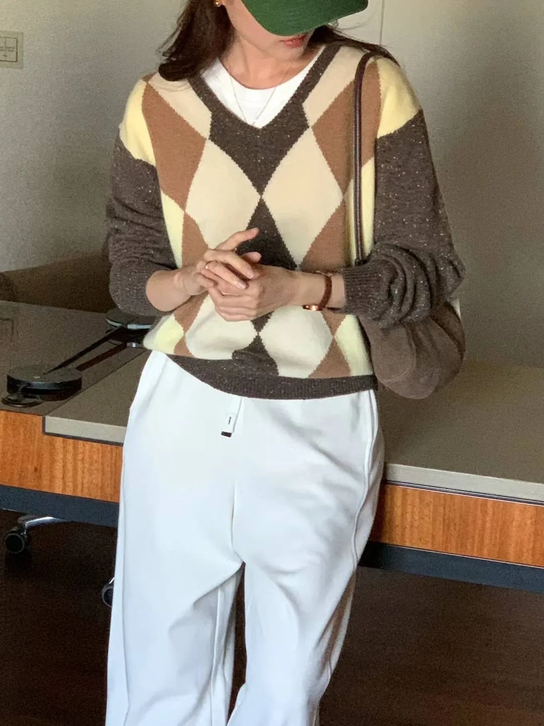 LV133特價格紋V領鬆弛感上衣 藍 咖 黑 粉 原價$1400 特價$1180
