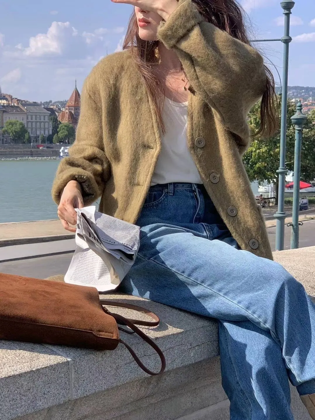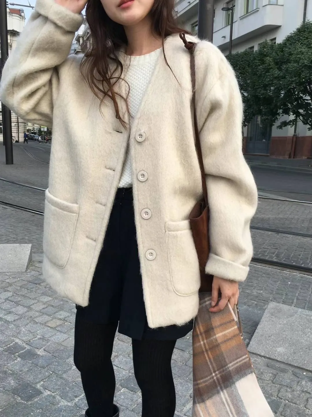 LV140雙口袋毛毛外套 米 灰 綠 官網價$2750 線上價$2720