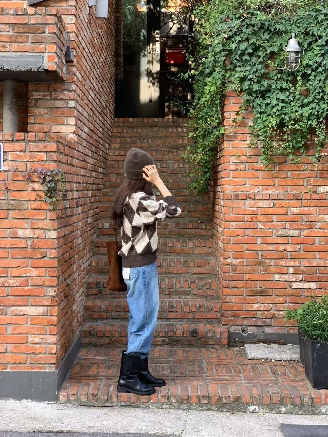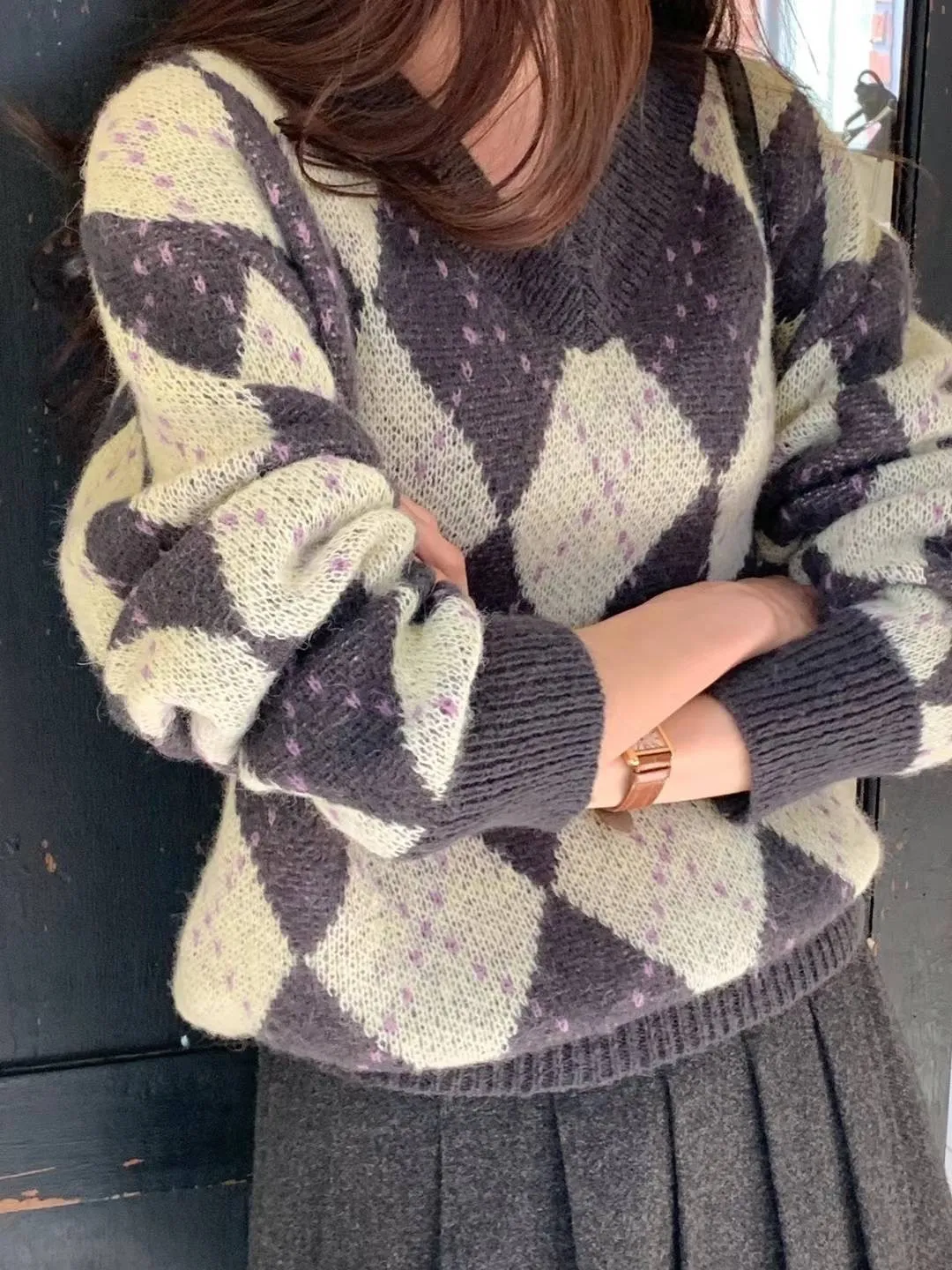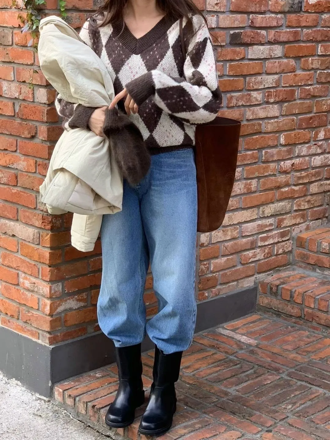 LV145菱形格紋V領毛衣 灰 咖 官網價$1190 線上價$1160