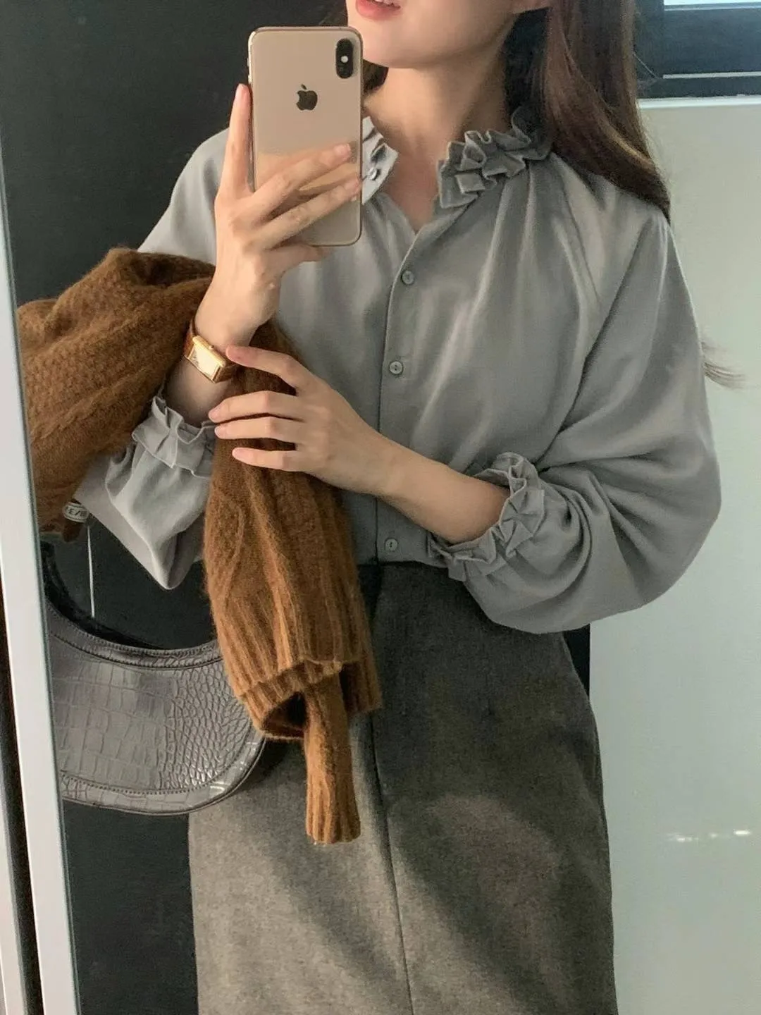 LV147氣質荷葉宮廷襯衫 米 灰 奶茶 官網價$1130 線上價$1100