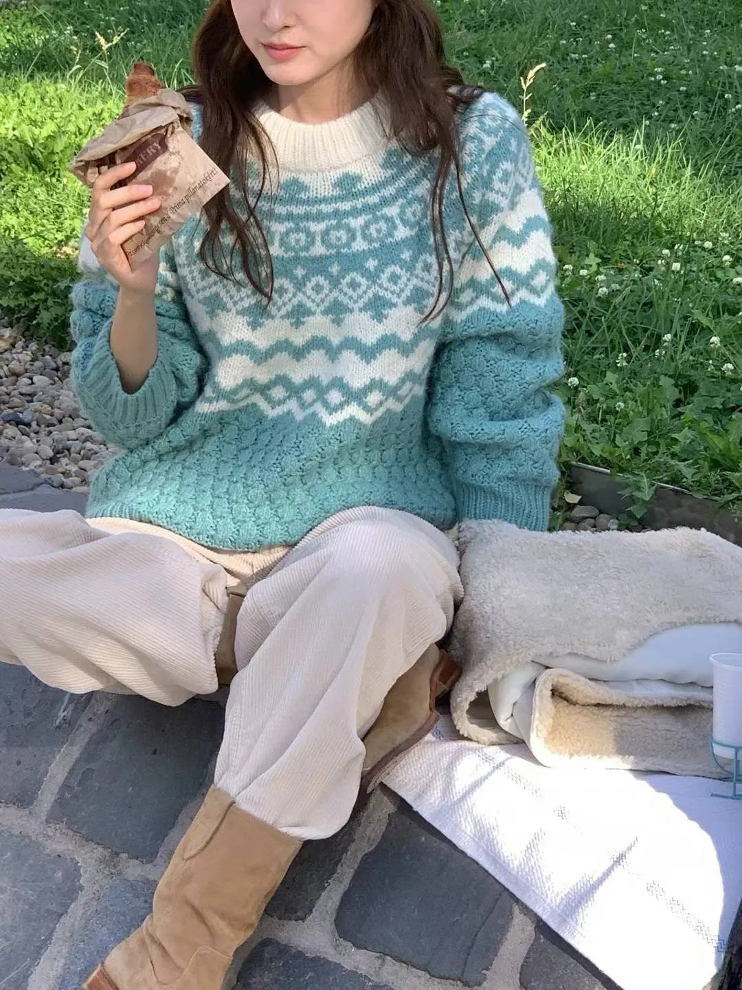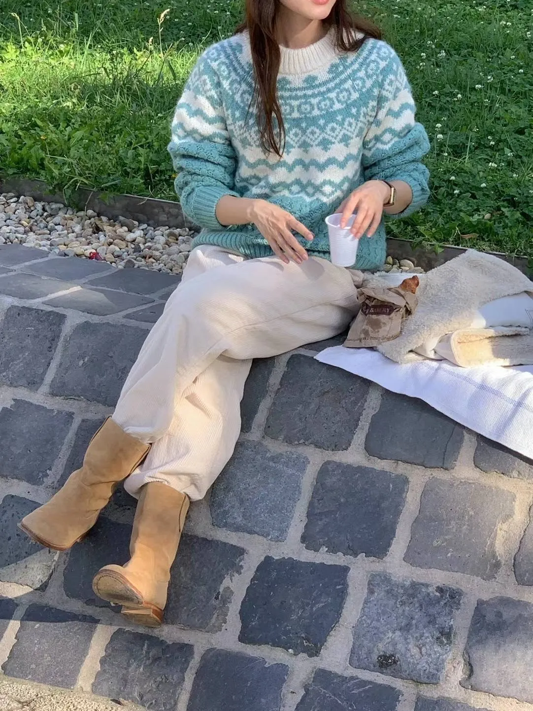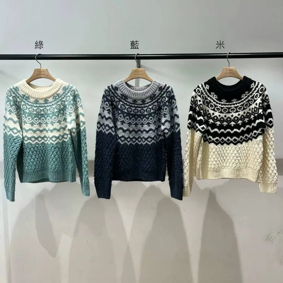 LV148經典歐風印花針織上衣 米 綠 藍 官網價$1390 線上價$1380