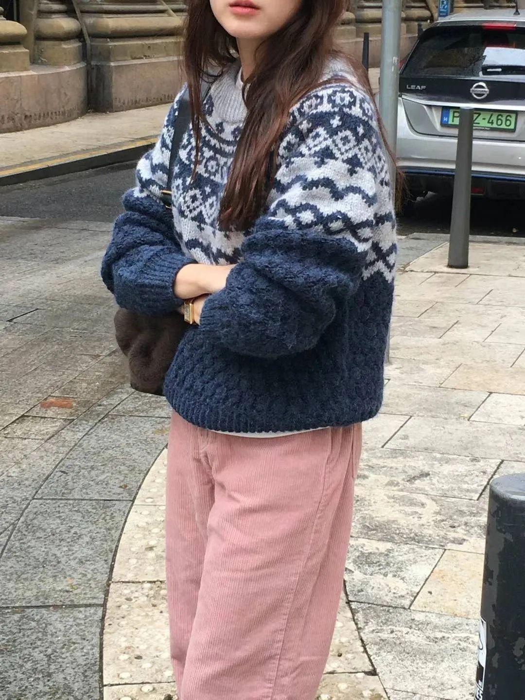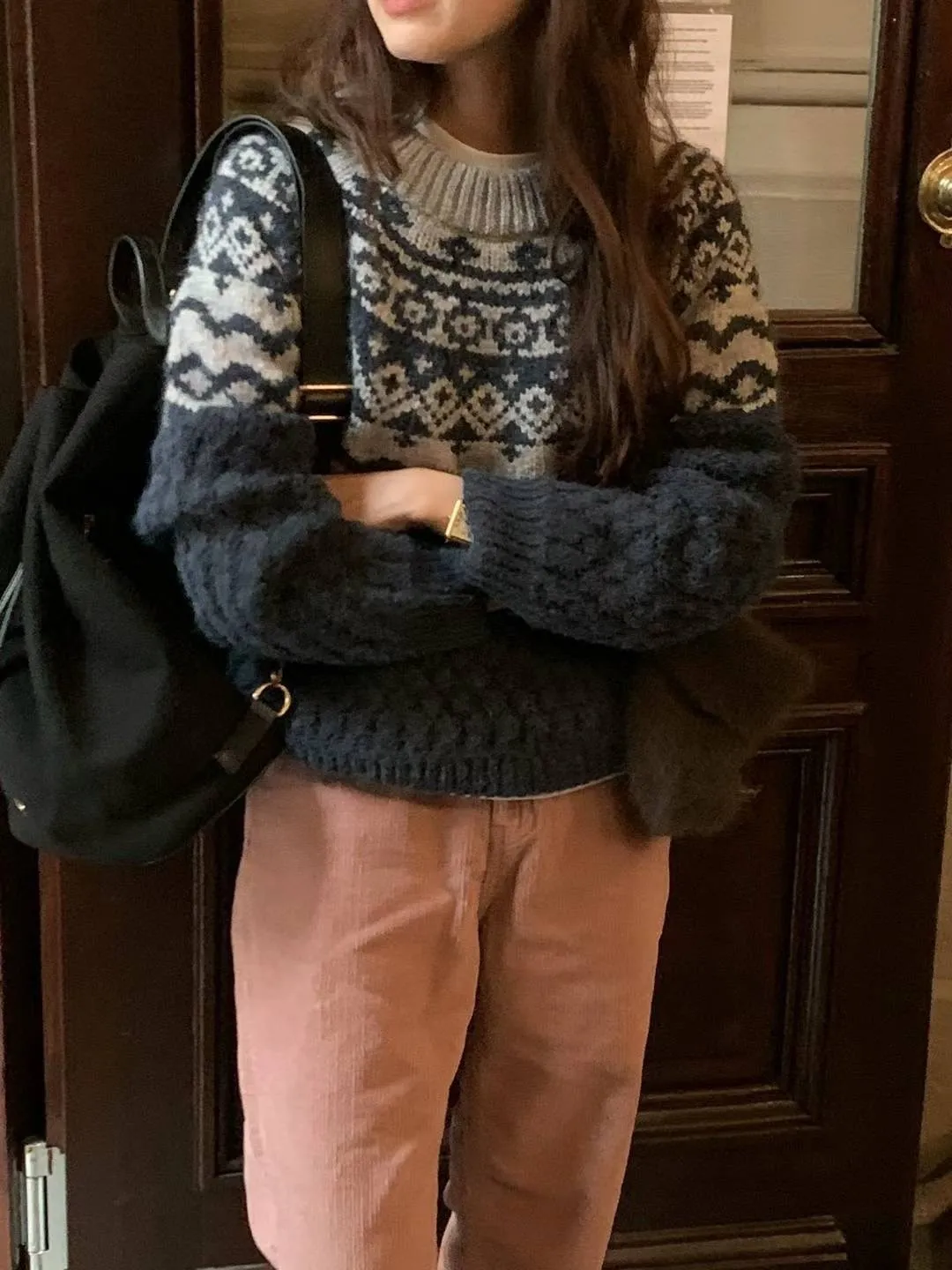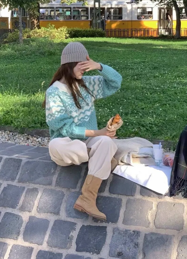 LV148經典歐風印花針織上衣 米 綠 藍 官網價$1390 線上價$1380