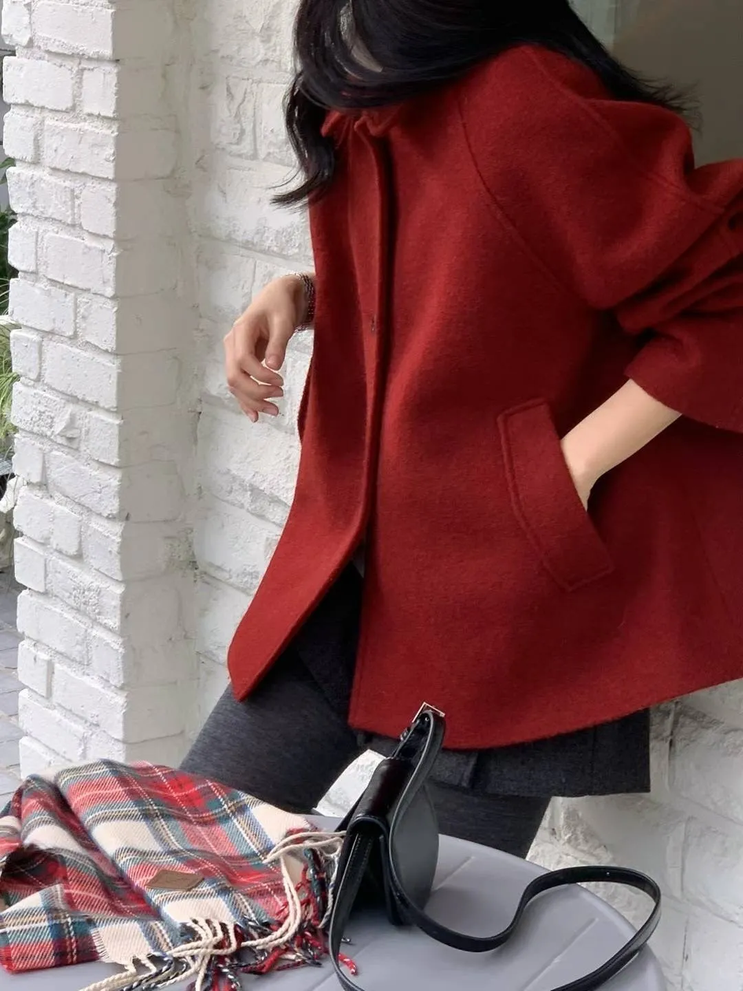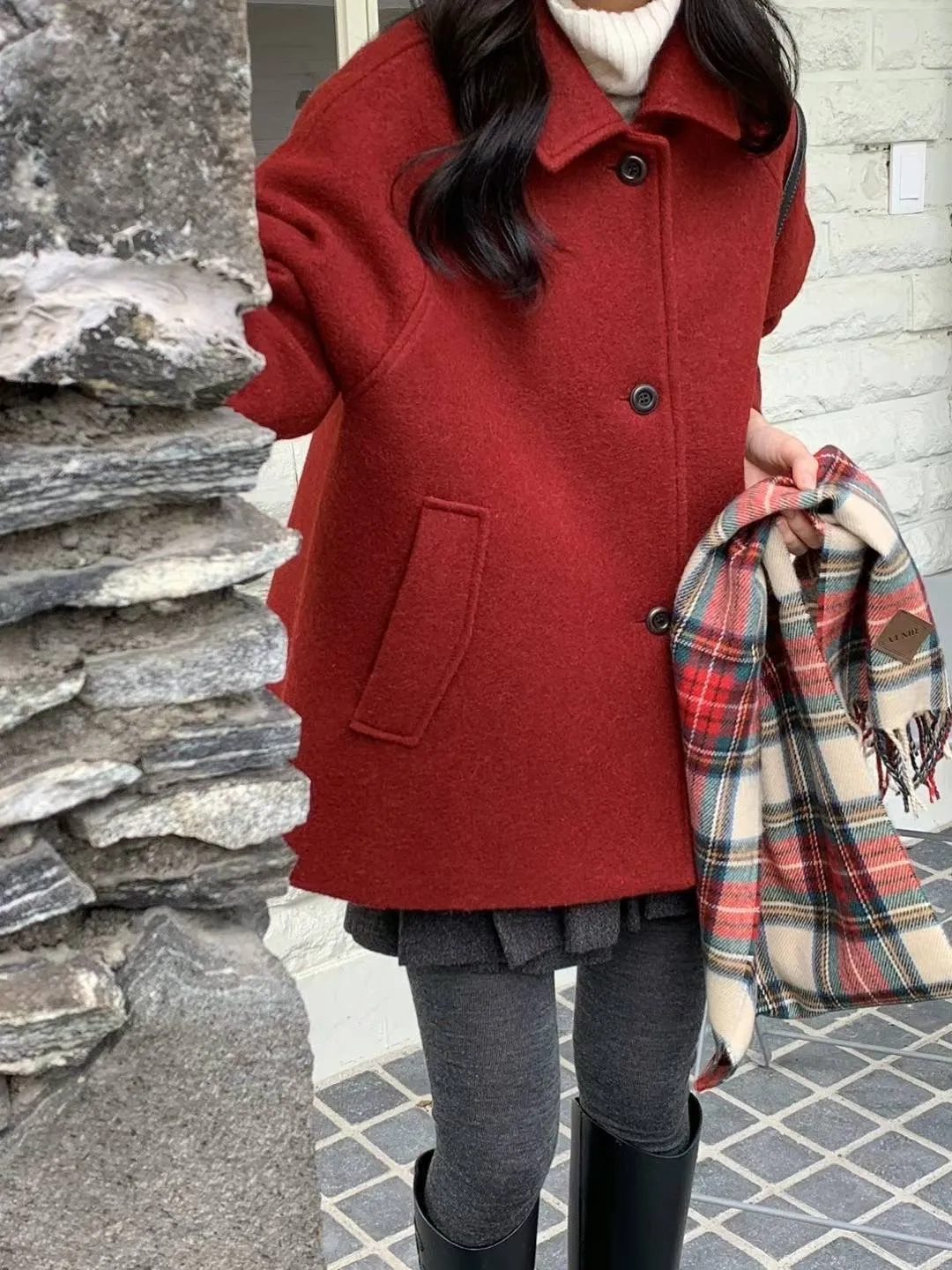 LV156斗篷羊毛外套 紅 奶茶 官網價$3390 線上價$3360