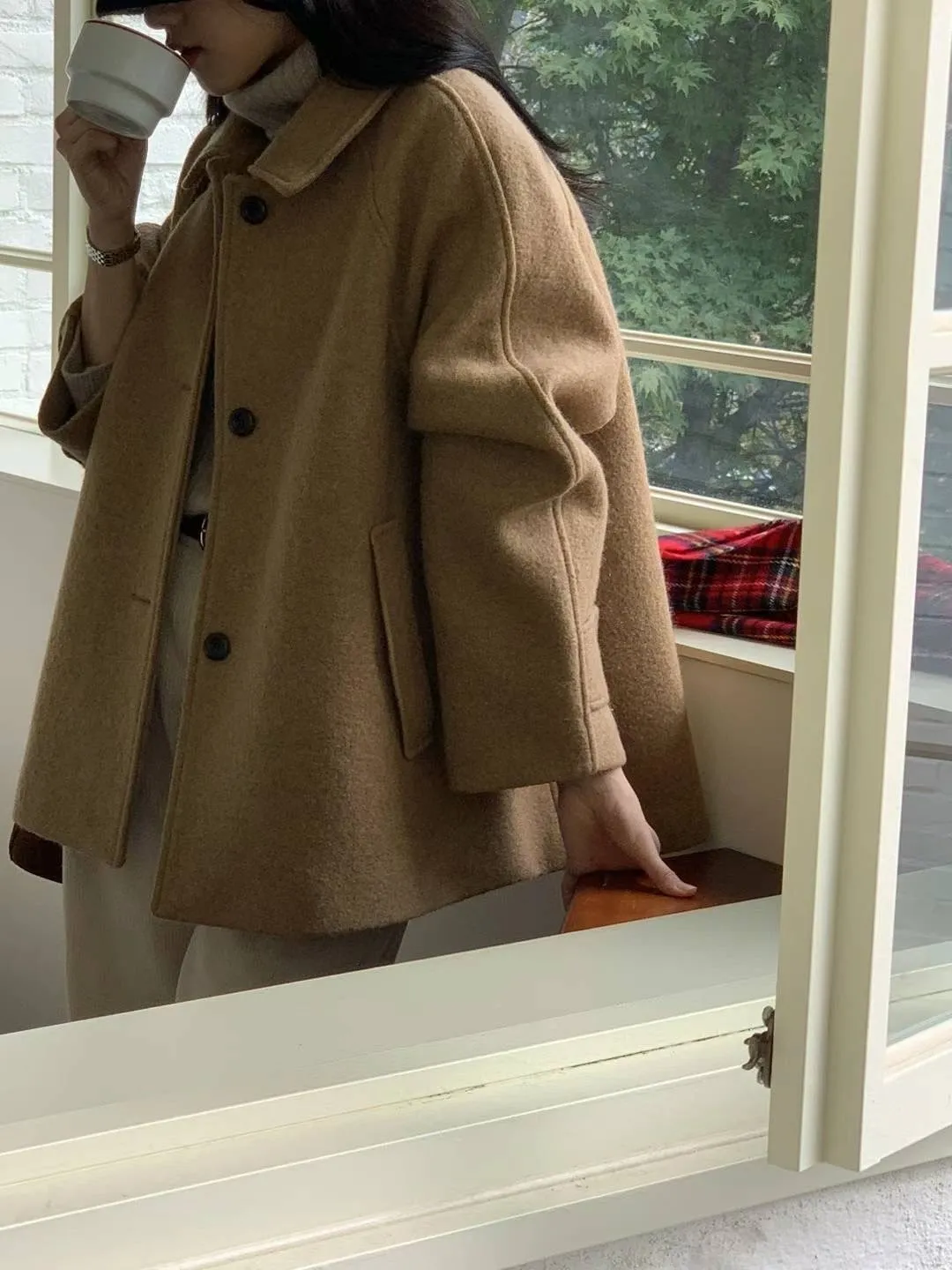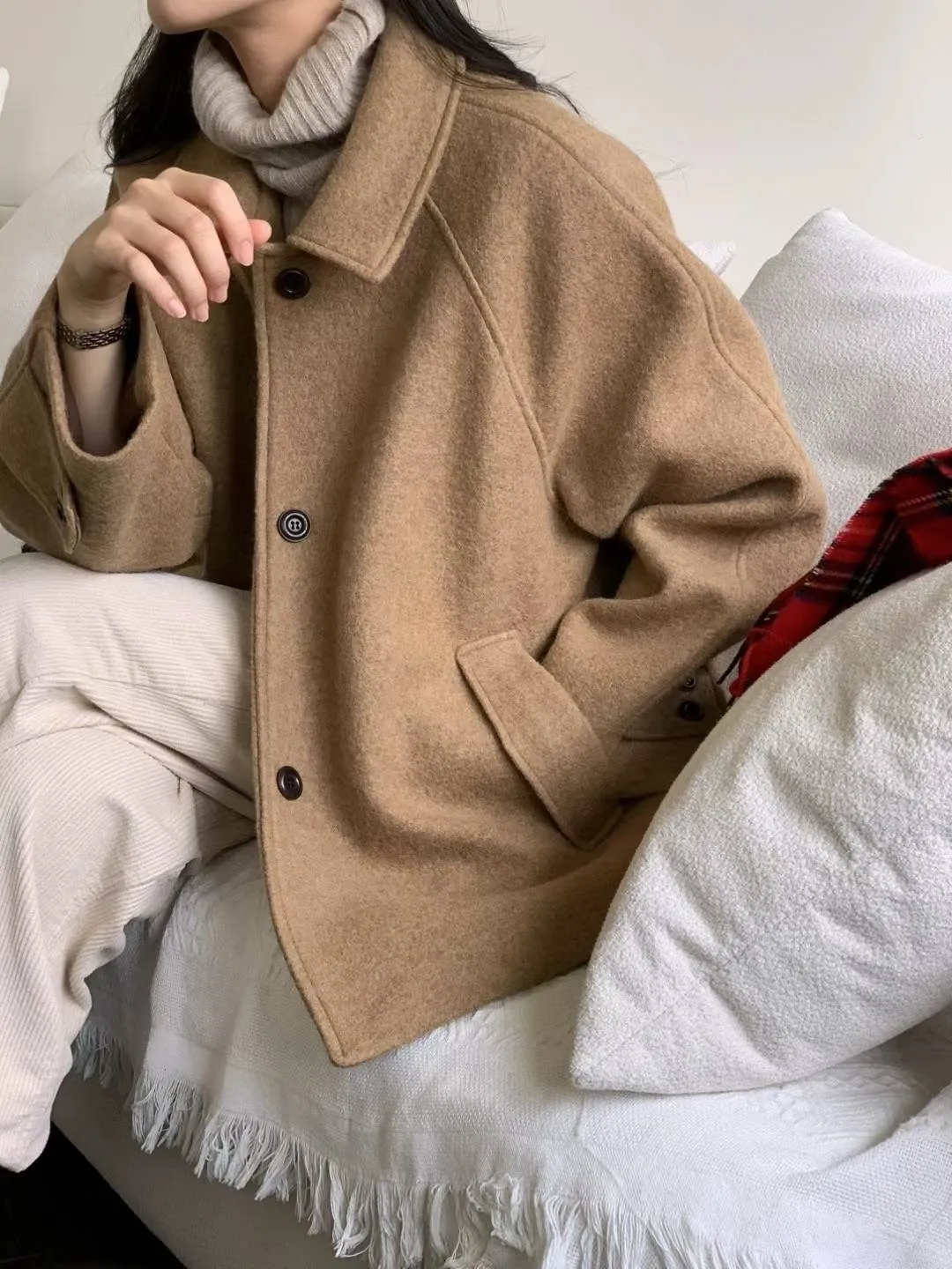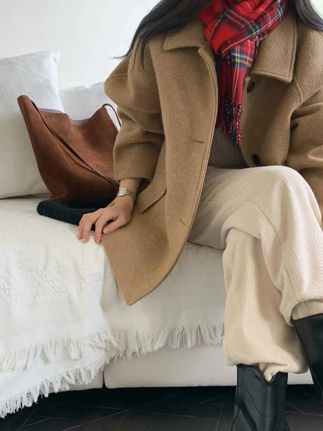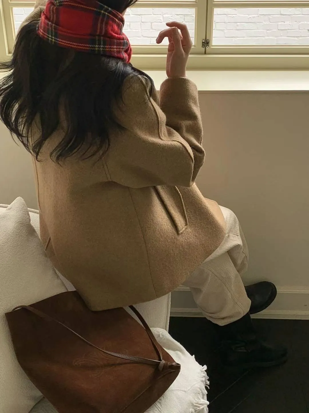 羊駝10%+羊毛70% 有口袋 內裡微微鋪棉