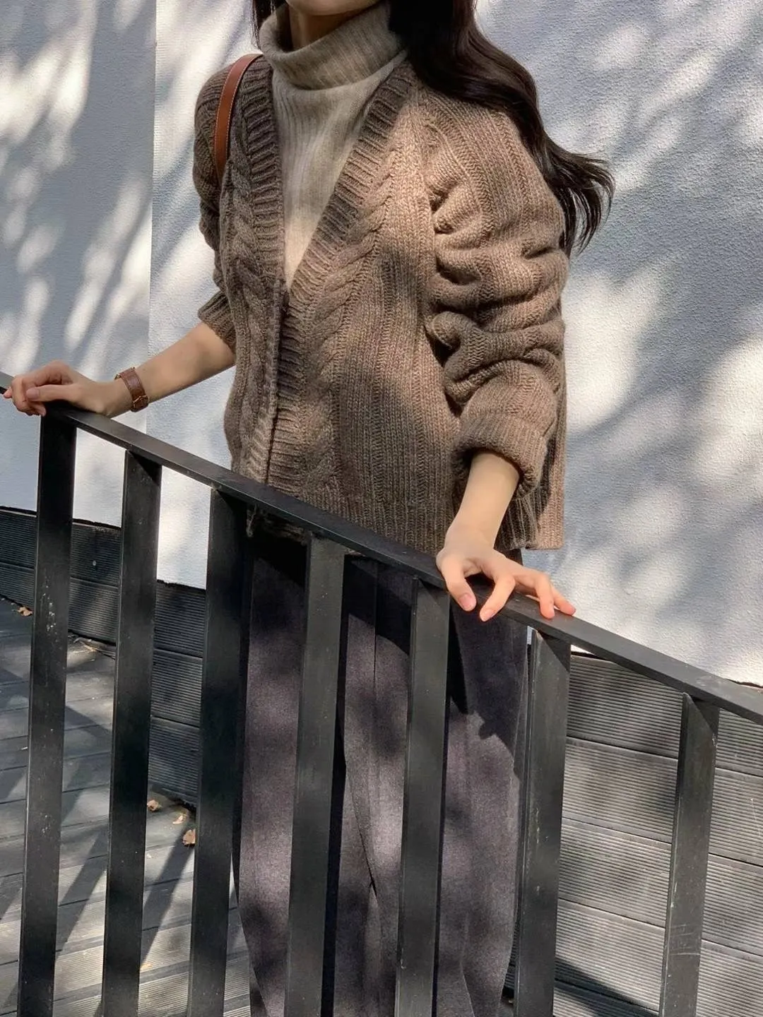 馬海毛40%+羊毛30%+羊駝30% 釦與不釦都很好看