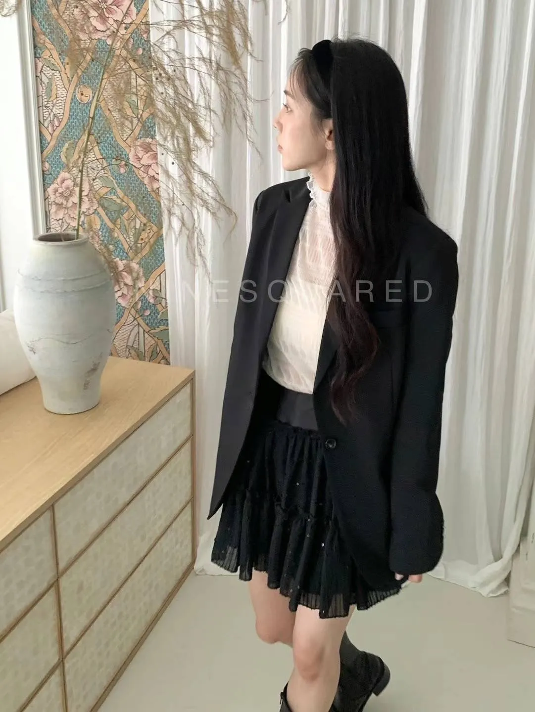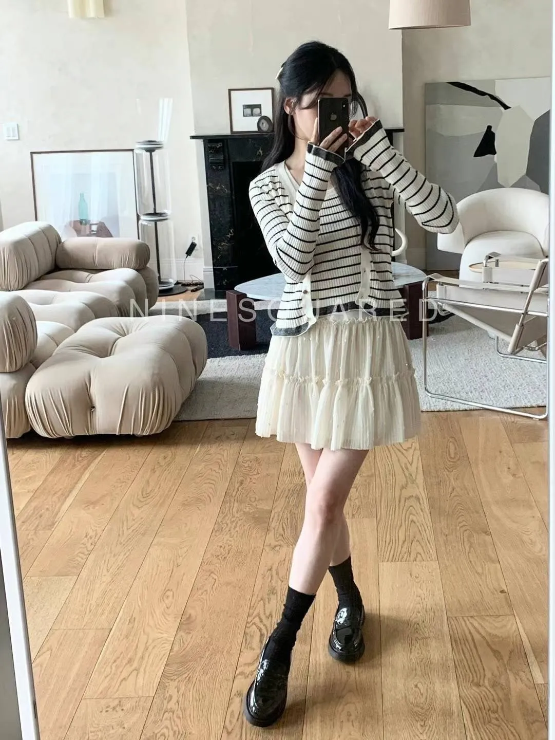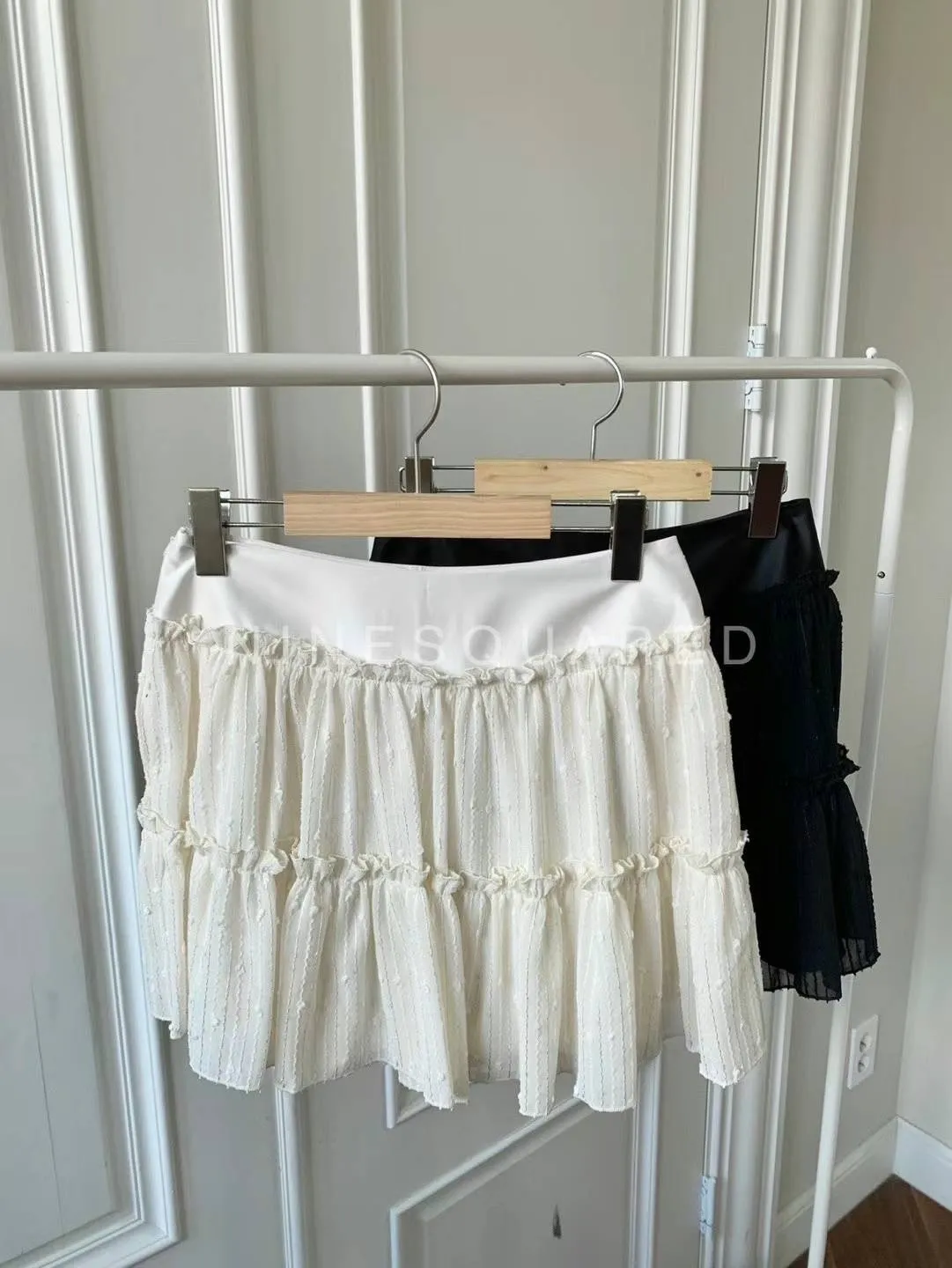 LV175低奢緞面雪紡網紗蛋糕裙 米 黑 S M 官網價$880 線上價$850