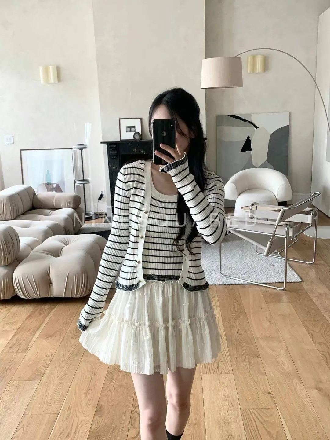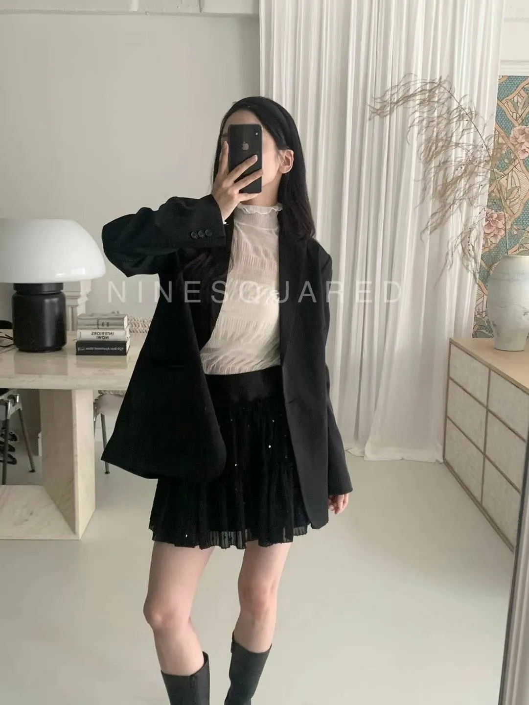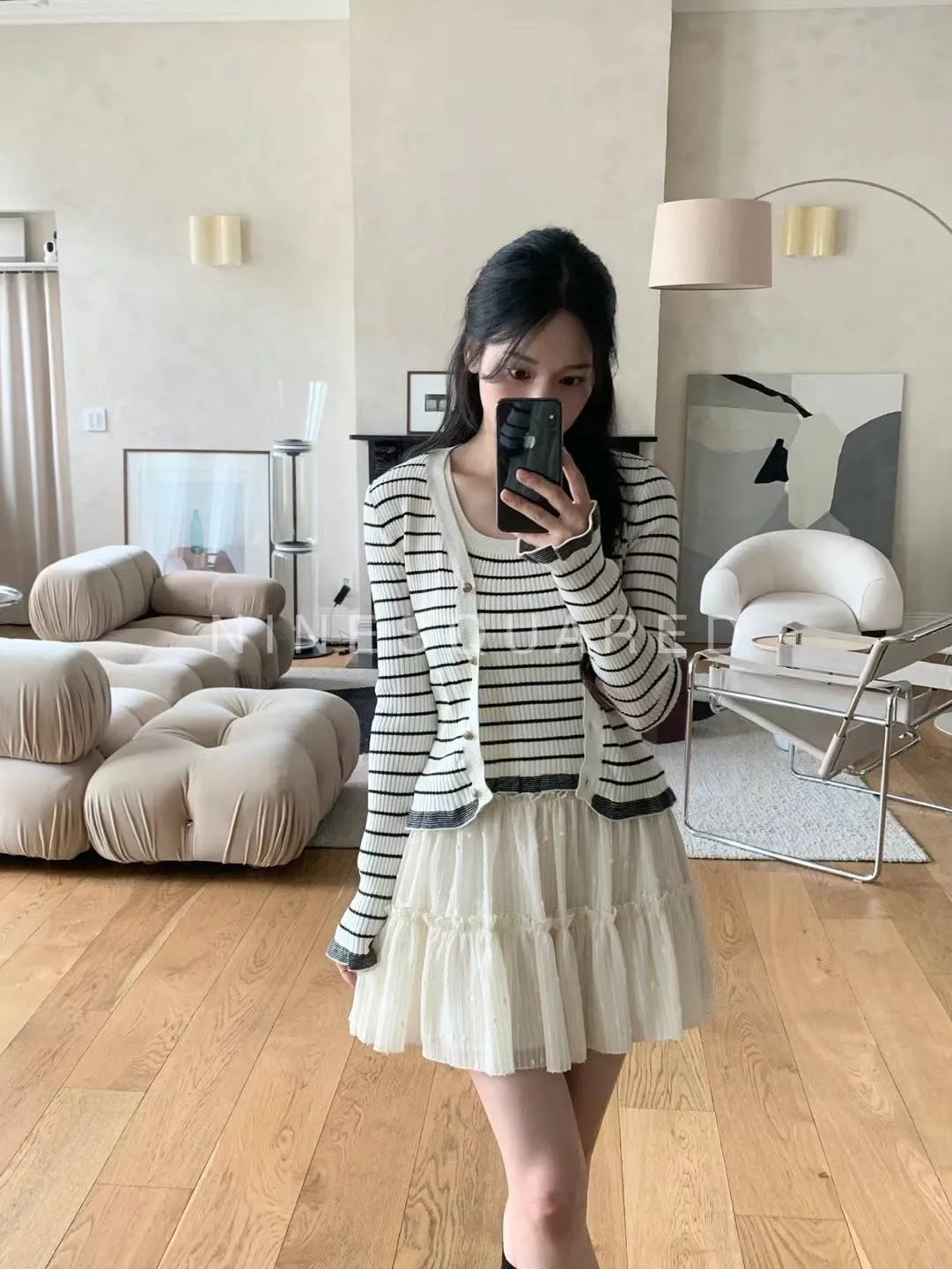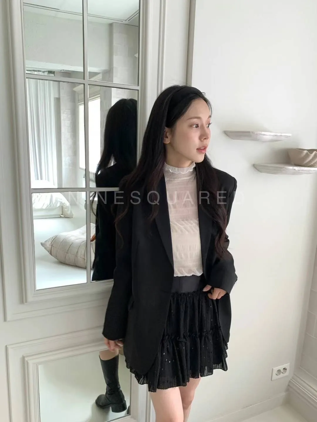 LV175低奢緞面雪紡網紗蛋糕裙 米 黑 S M 官網價$880 線上價$850