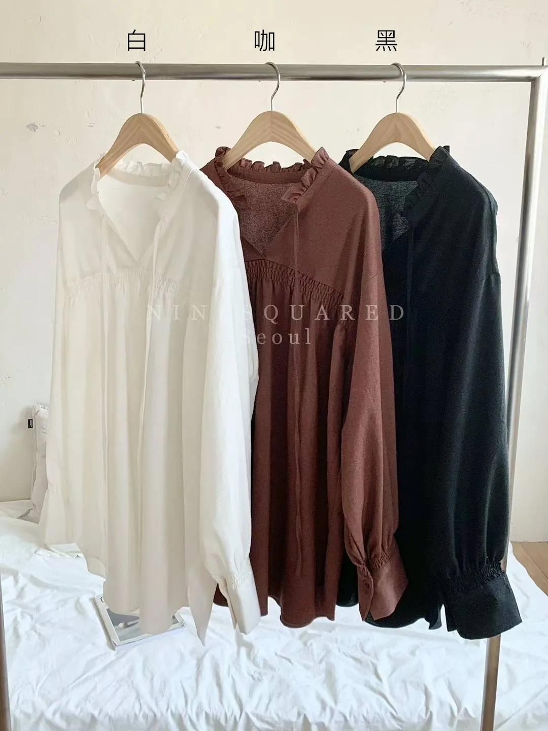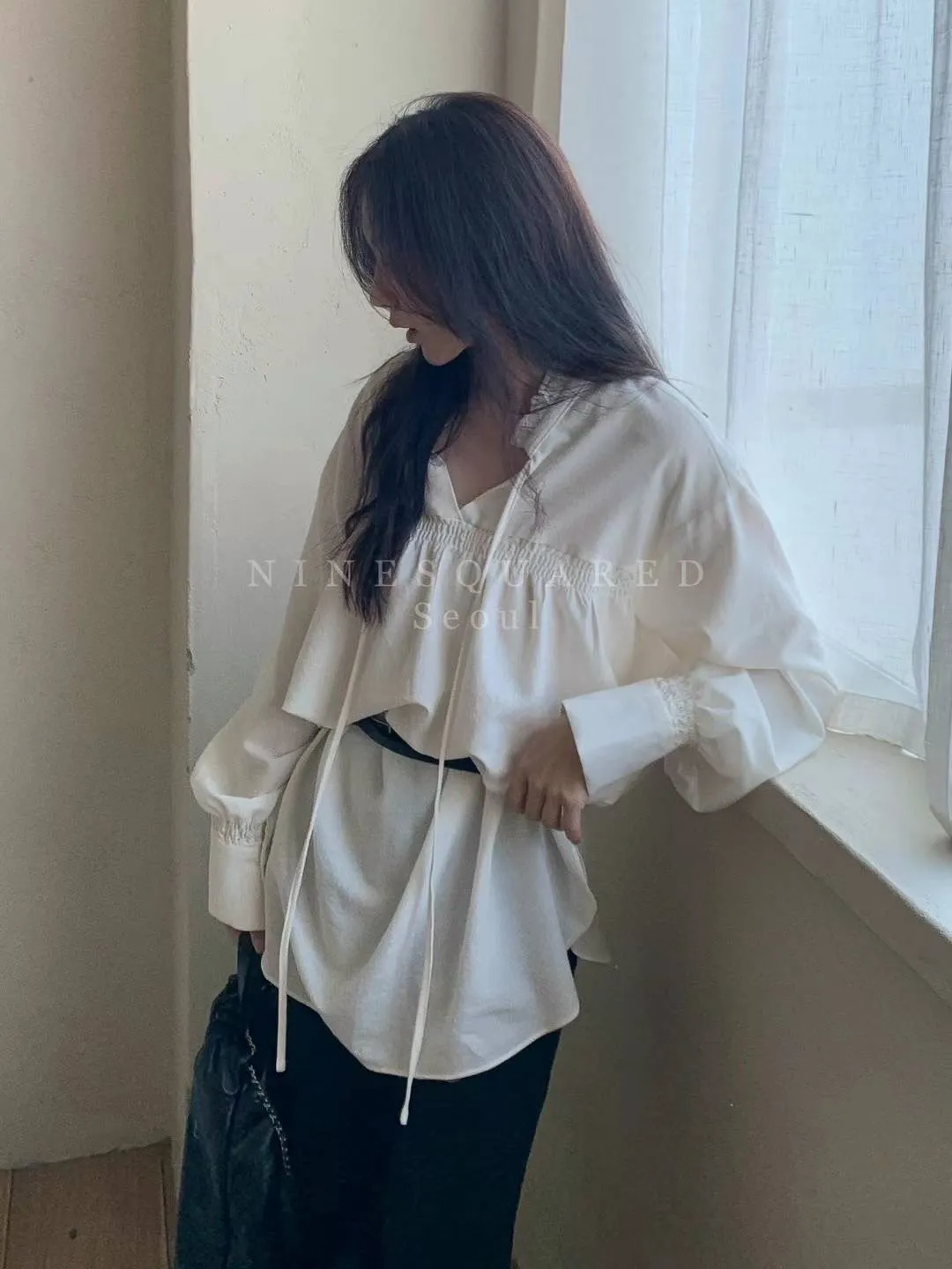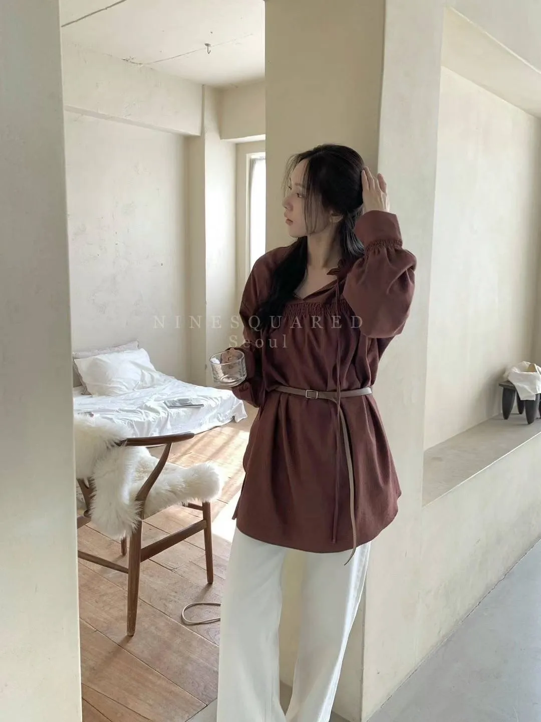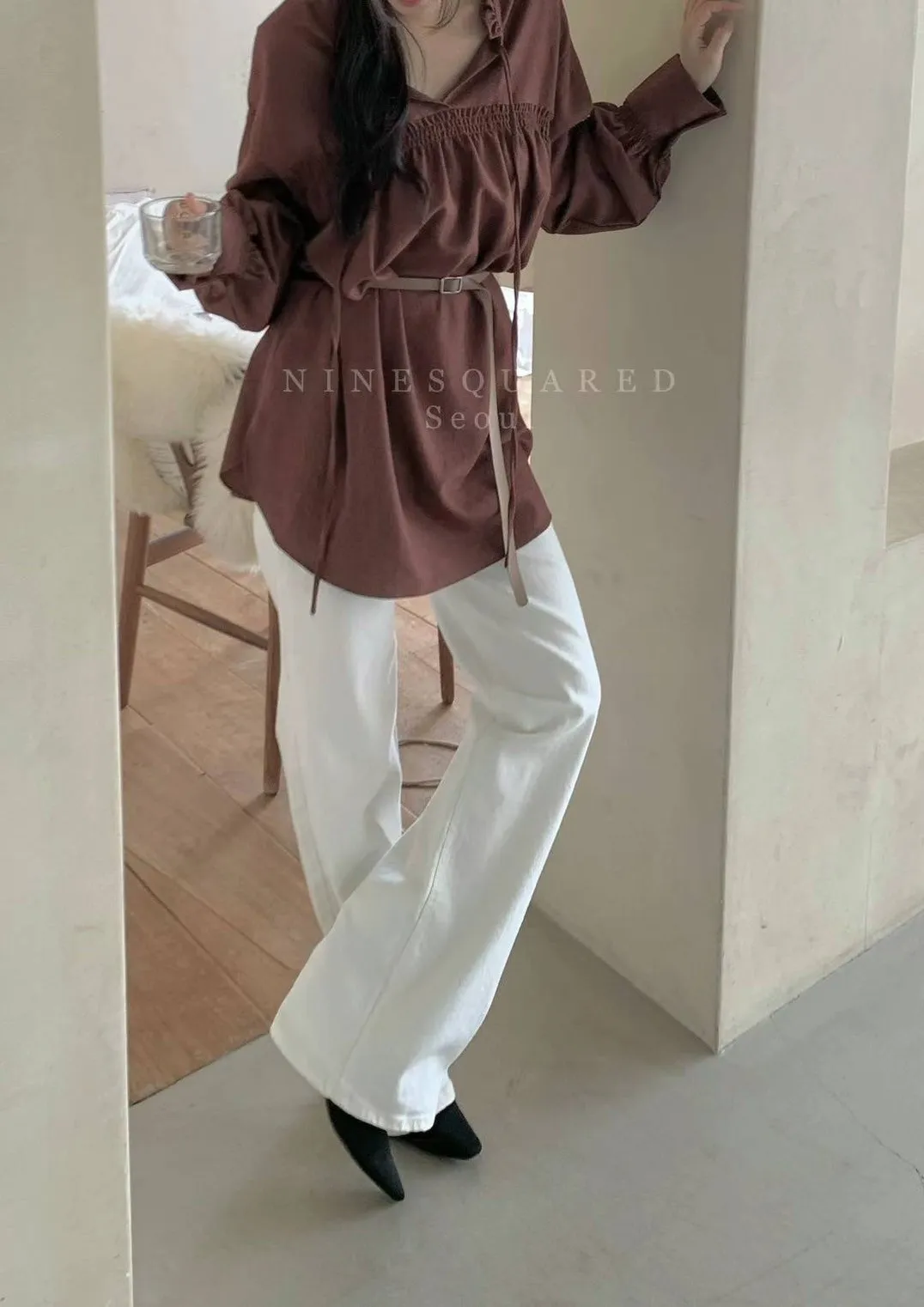 LV179荷葉領愜意鬆弛感胸綁帶上衣 白 咖 黑 官網價$1250 線上價$1220