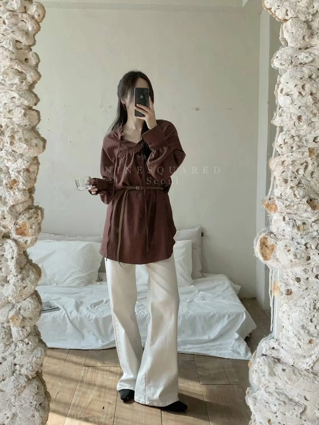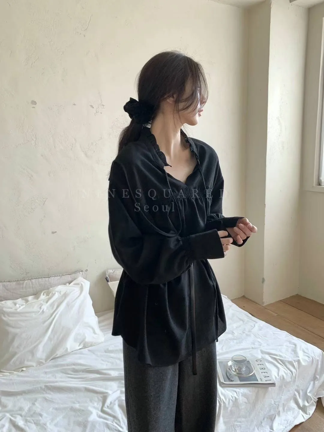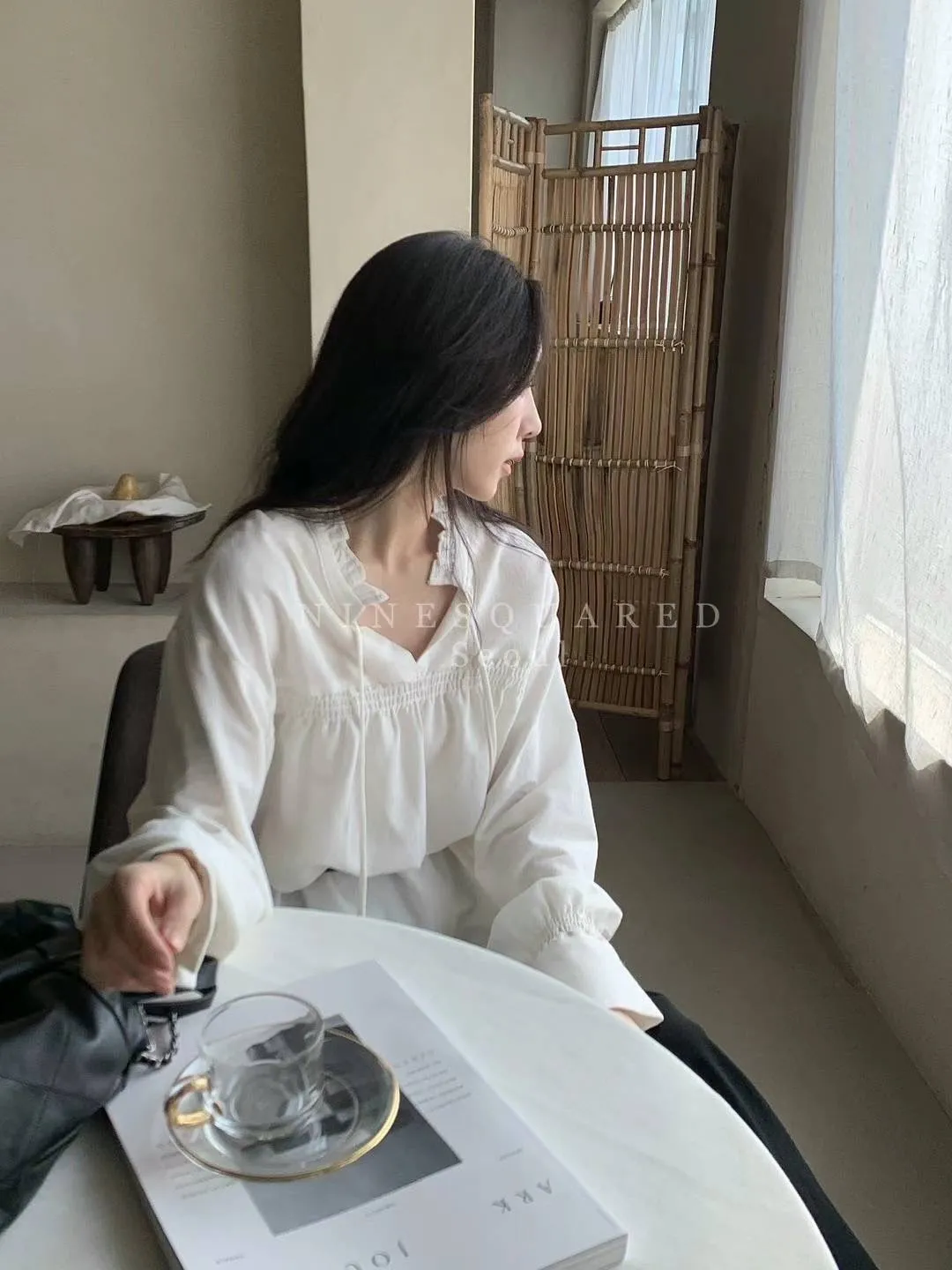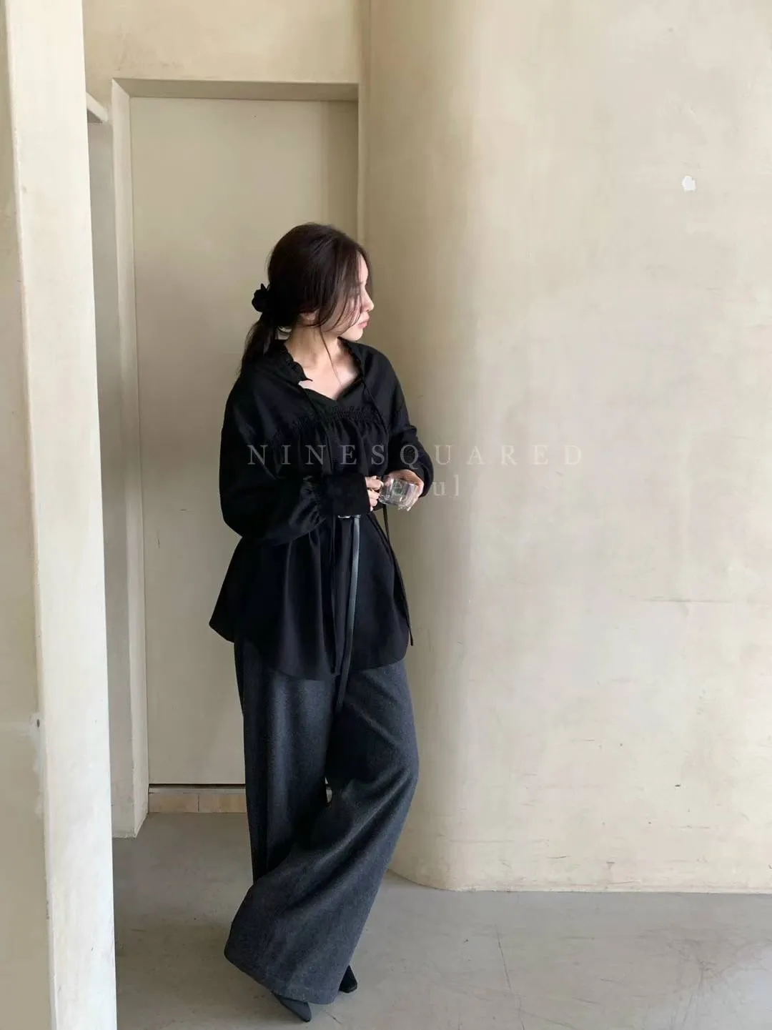 LV179荷葉領愜意鬆弛感胸綁帶上衣 白 咖 黑 官網價$1250 線上價$1220